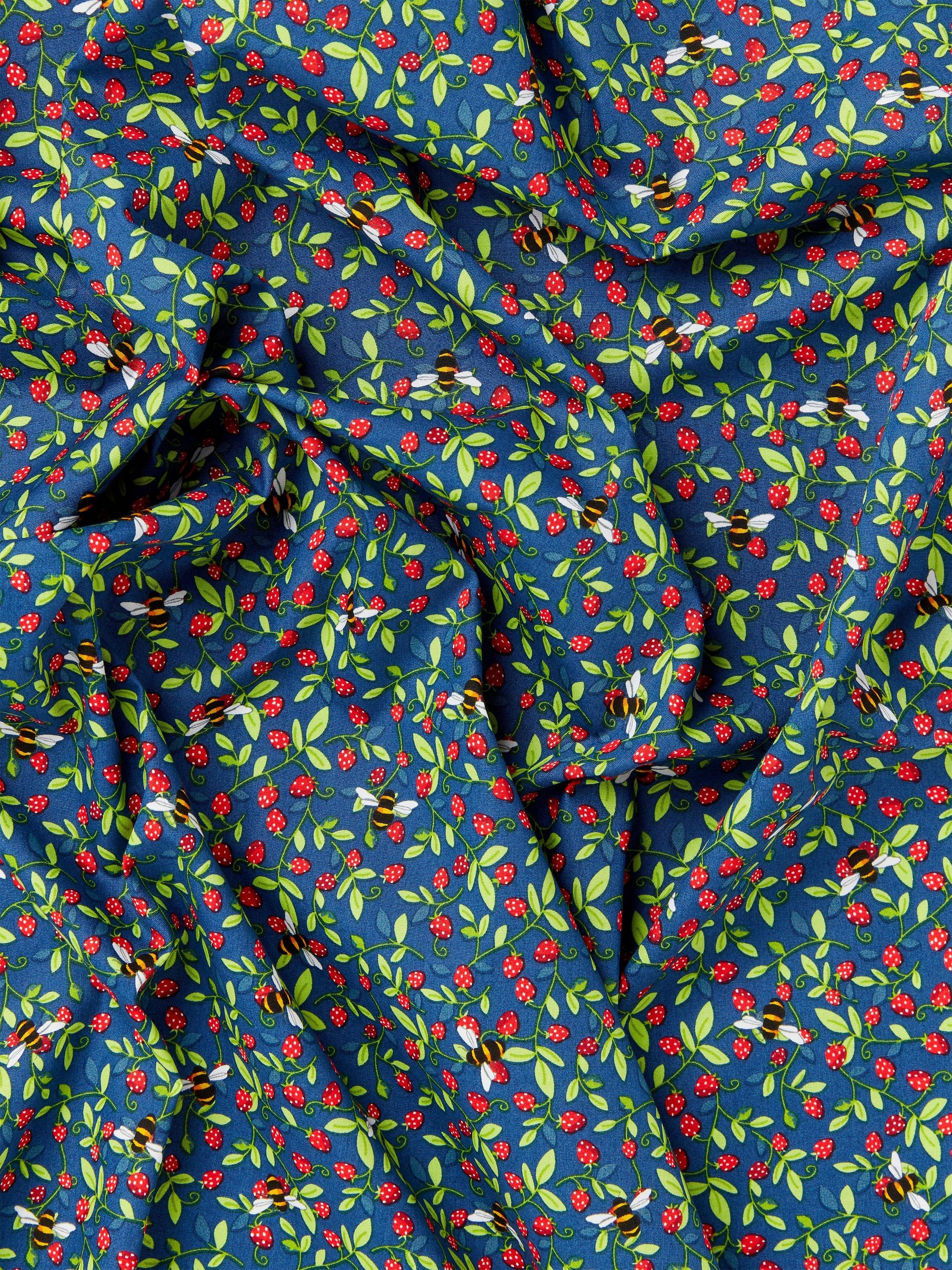 Oddies TextilesBees and Strawberries Print Fabric, Navy