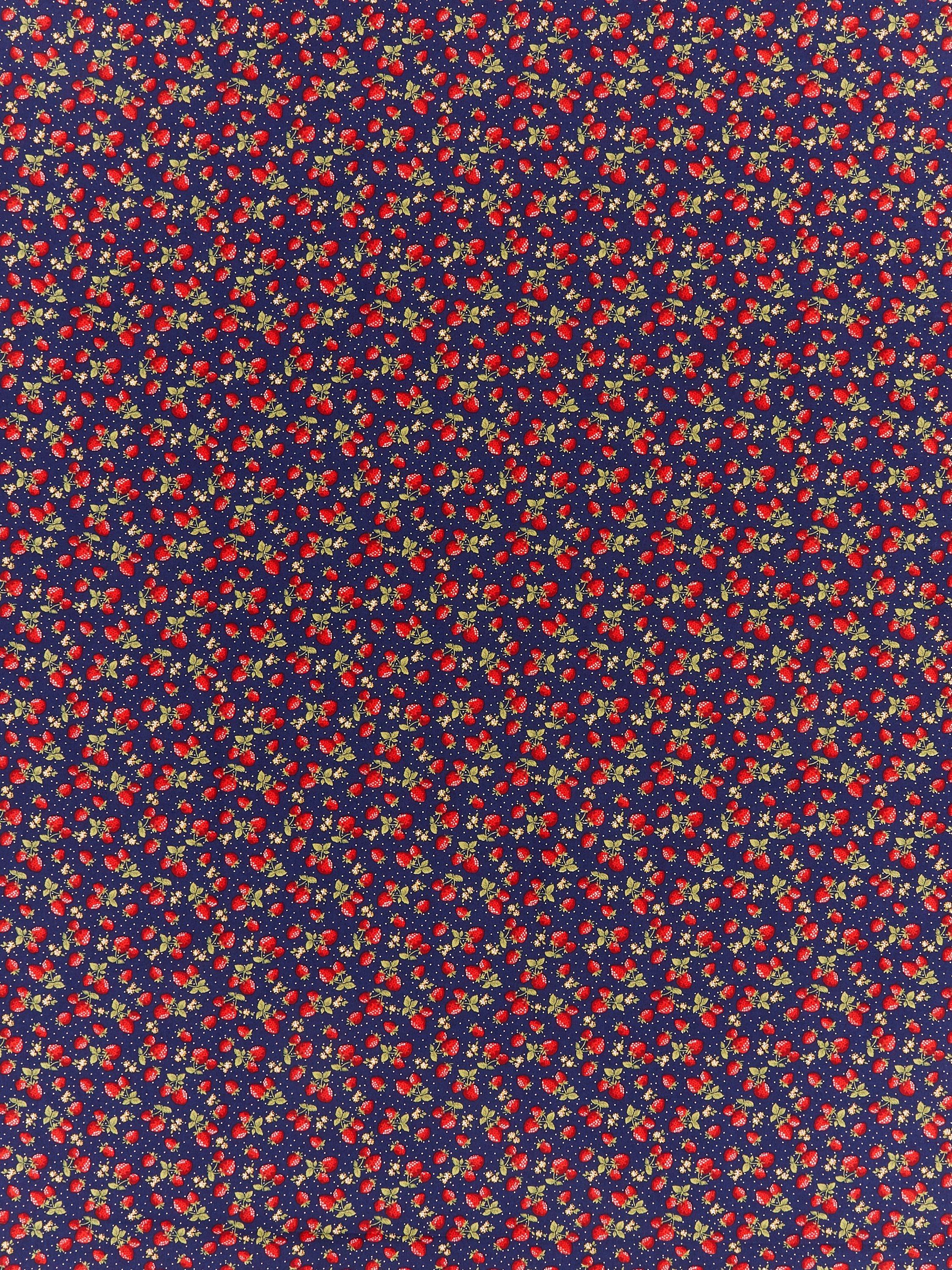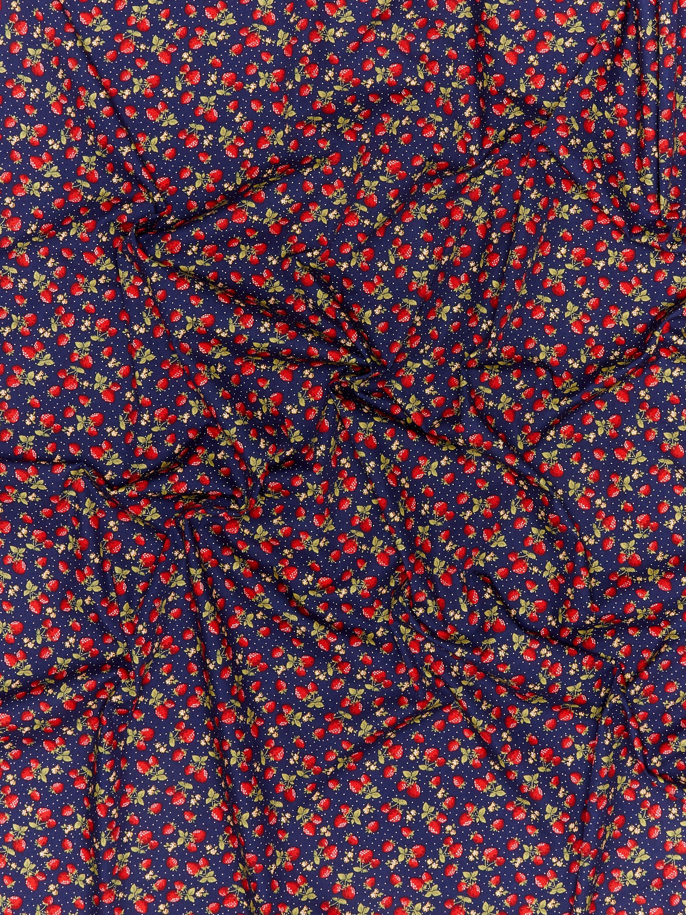 Oddies TextilesStrawberry Print Fabric, Navy