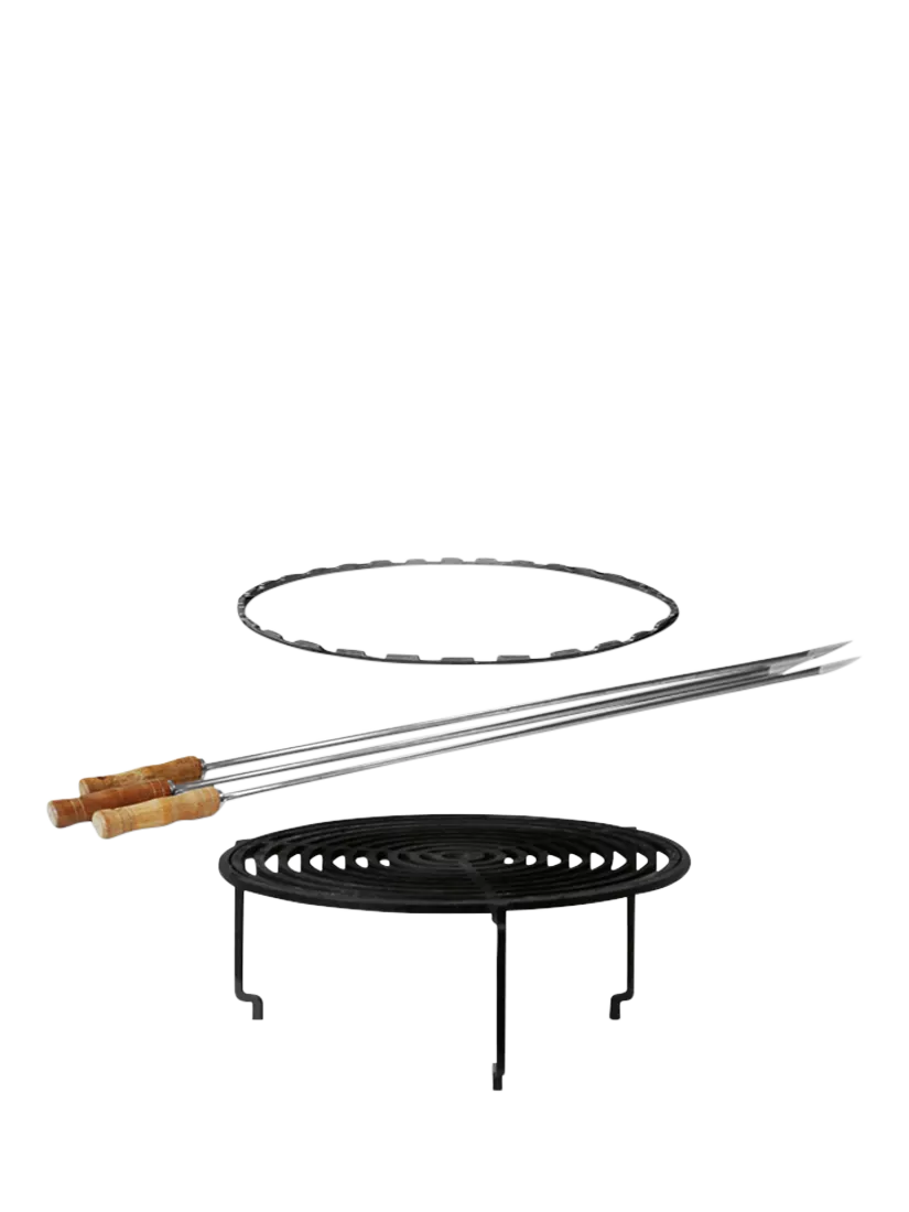 For even more versatility, the OFYR 100 Grill Accessories Set makes the most of your OFYR 100 Cooking Unit, sold separately. This set includes a Grill Round 100, a Horizontal Skewers Ring 100, and three skewers with wooden handles for easy rotation.