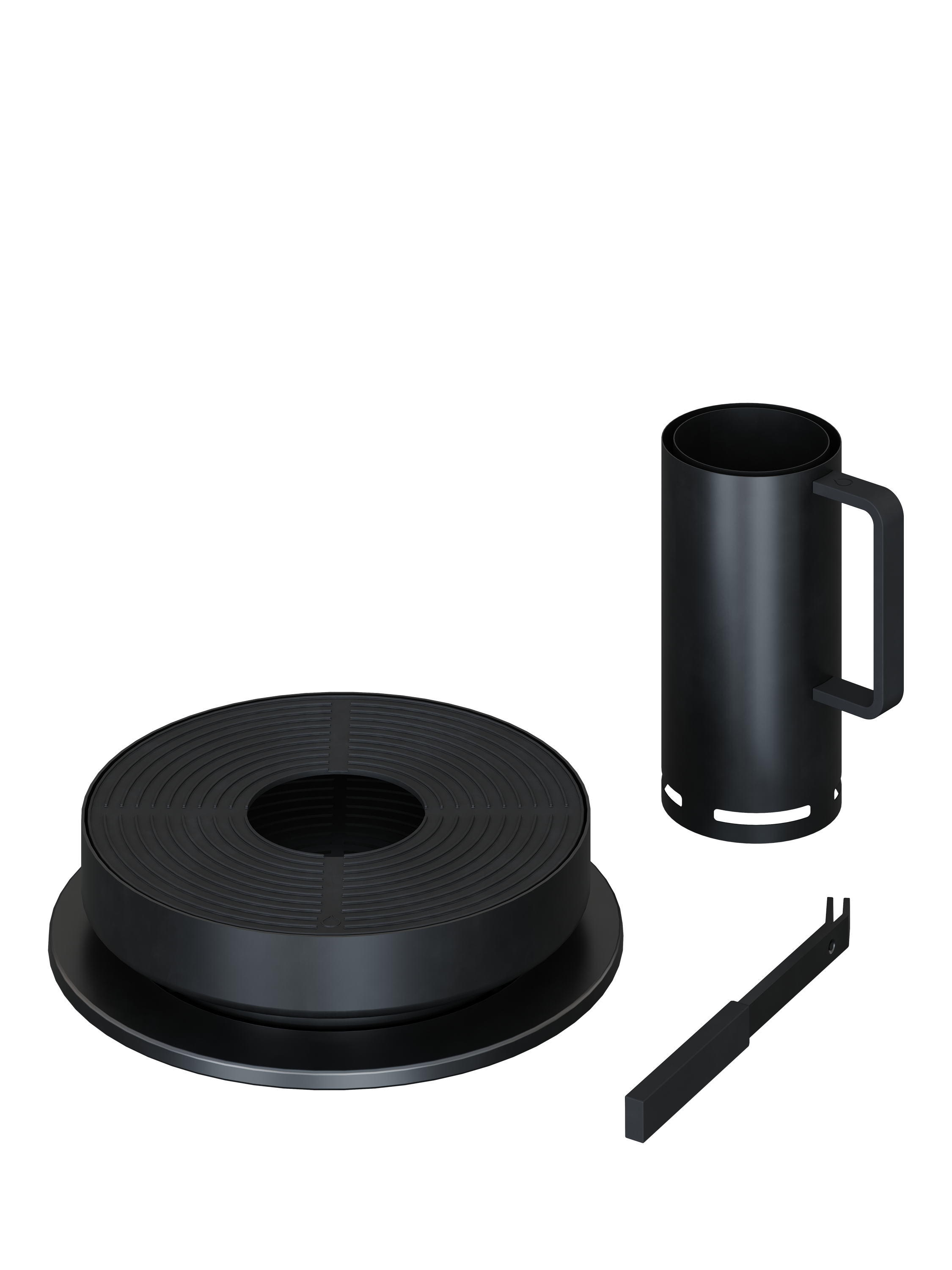 It's made out of black-coated steel, which gives it that iconic OFYR look. The cooking plate of the table grill is double-sided, with a flat side and a grill-patterned side. Great for trying out different cooking techniques. With the supplied tongs, you can turn the plate from a flat side to the side with the grill pattern.