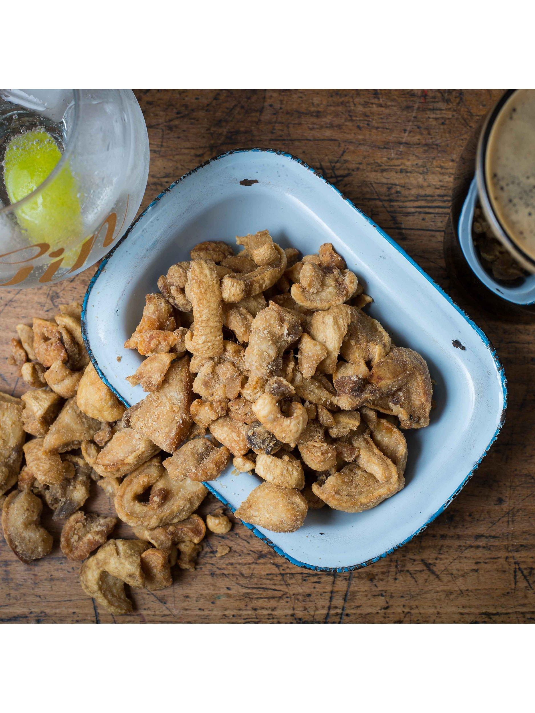 - Pork Rind, Salt, Flavour Enhancer E621, E635, Paprika, Cayenne, Cumin, Coriander, Tomato Powder, Acidity Regulator E262, Dextrose, Hydrolysed Vegetable Protein, Onion & Garlic Powder, Natural Flavour, Paprika Extract, Spice Extract.