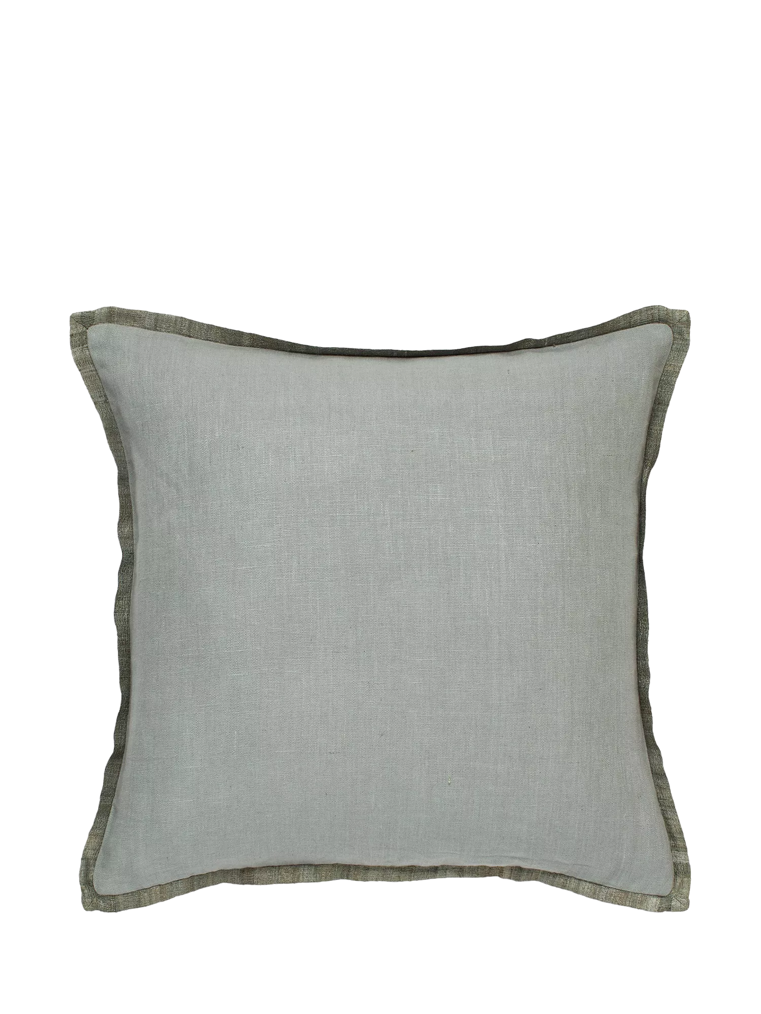 The Archibald cushion makes for the perfect addition to a cushion collection. Its plain linen base is handwoven and dyed a muted sage green hue and finished with a silk flange for extra interest.