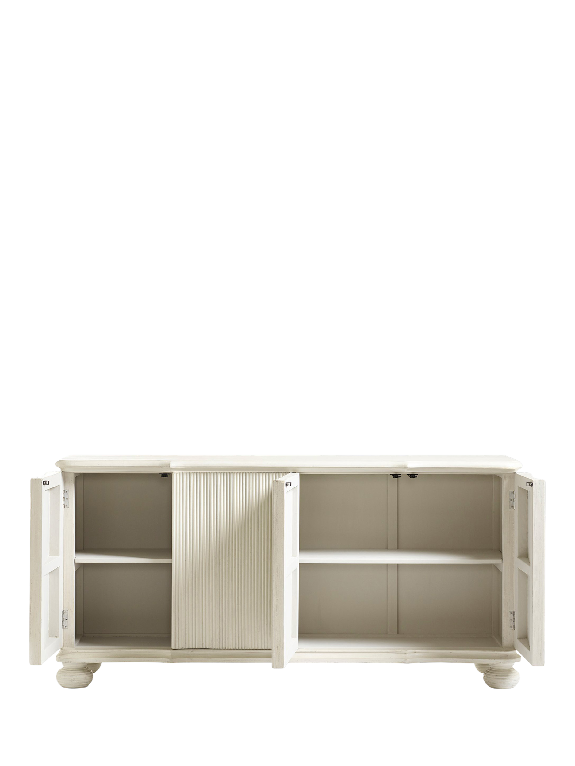 OKA's Ingrid Sideboard is both simple and elegant. It boasts an extremely spacious surface and removable interior shelving that is hidden by push-to-open reeded cupboard doors.