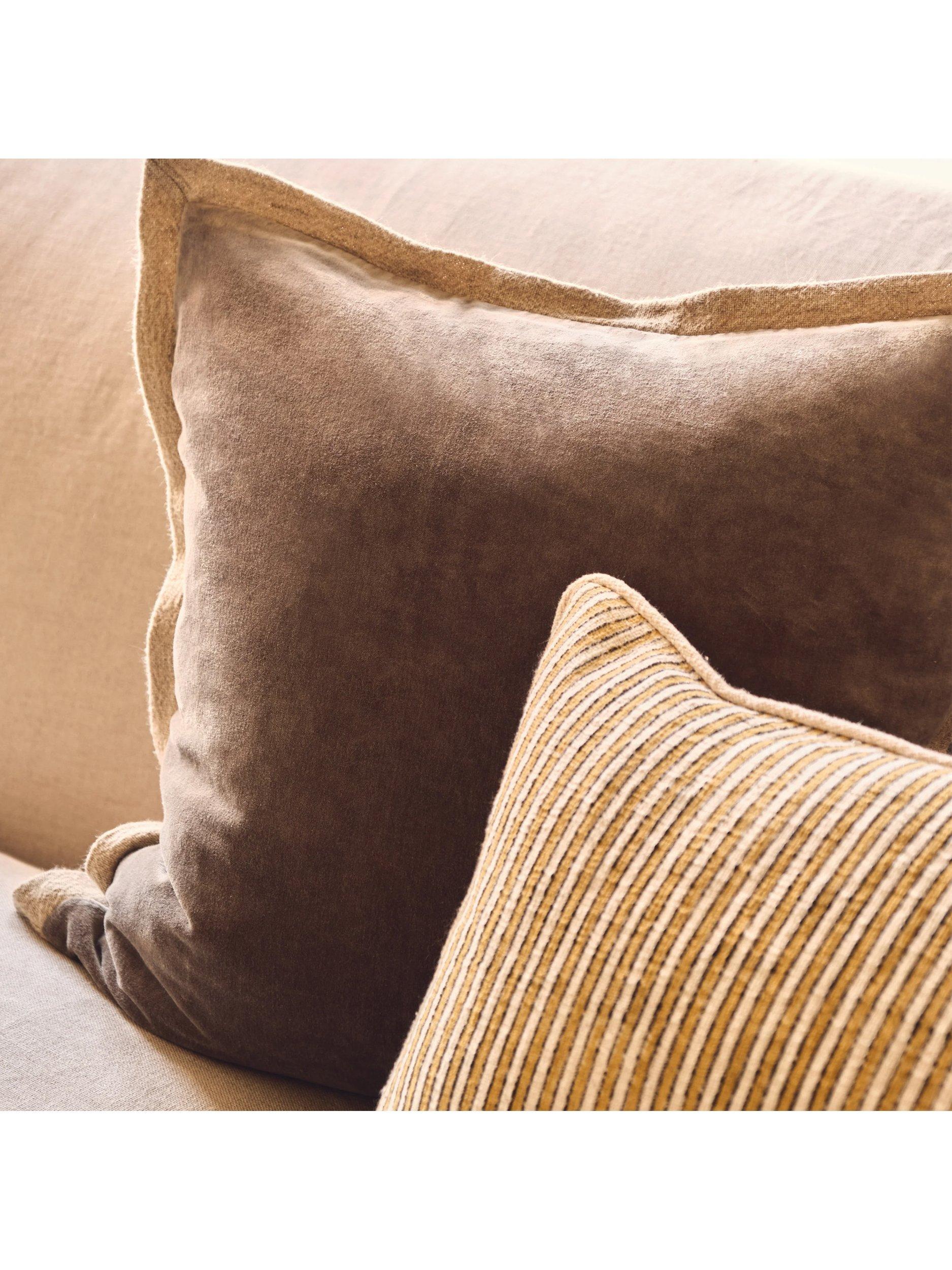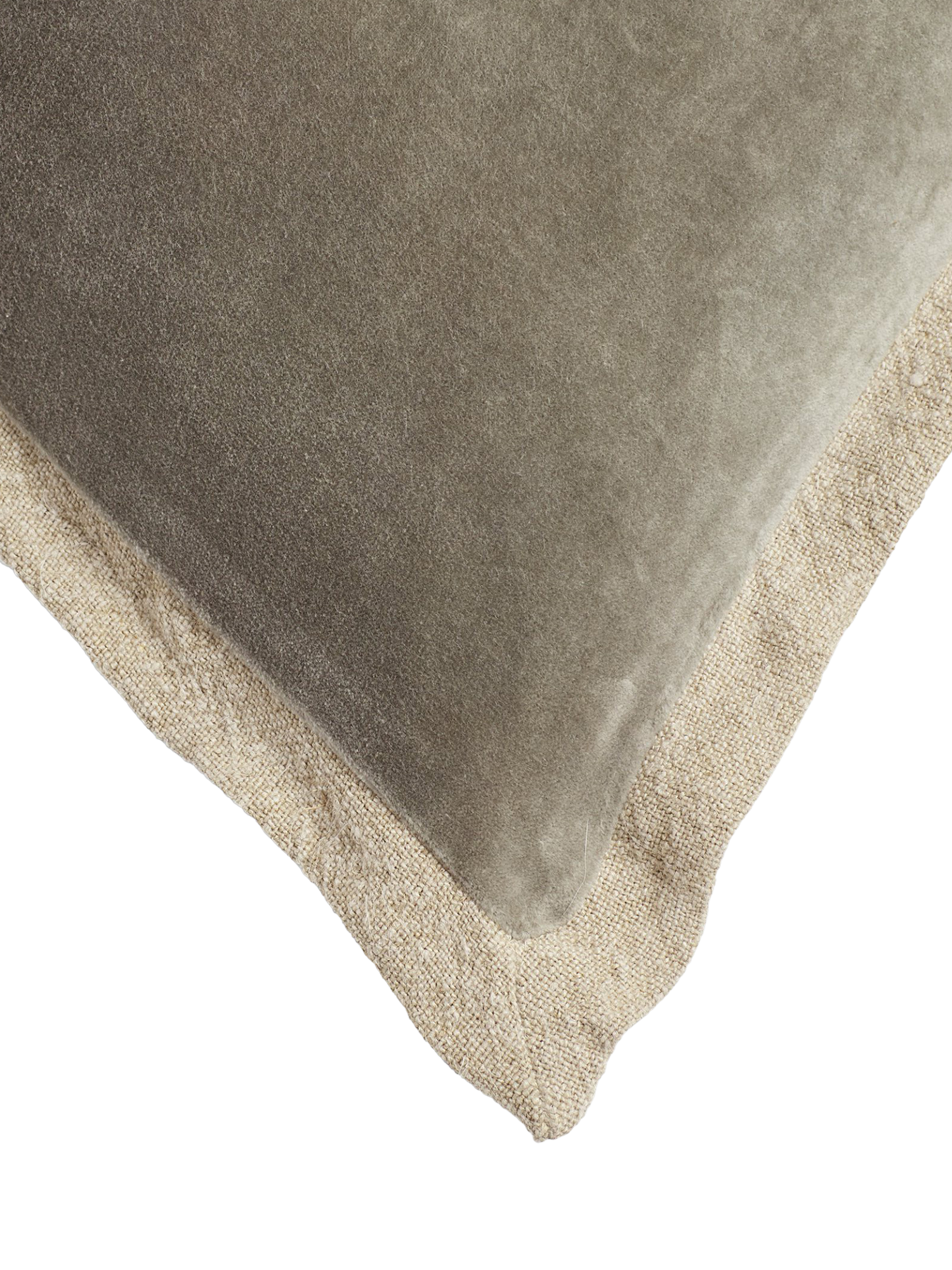 The Isla cushion features the best of both worlds; its surface is crafted from velvet and stitched with a heavy linen flange on all four sides for extra sophistication.