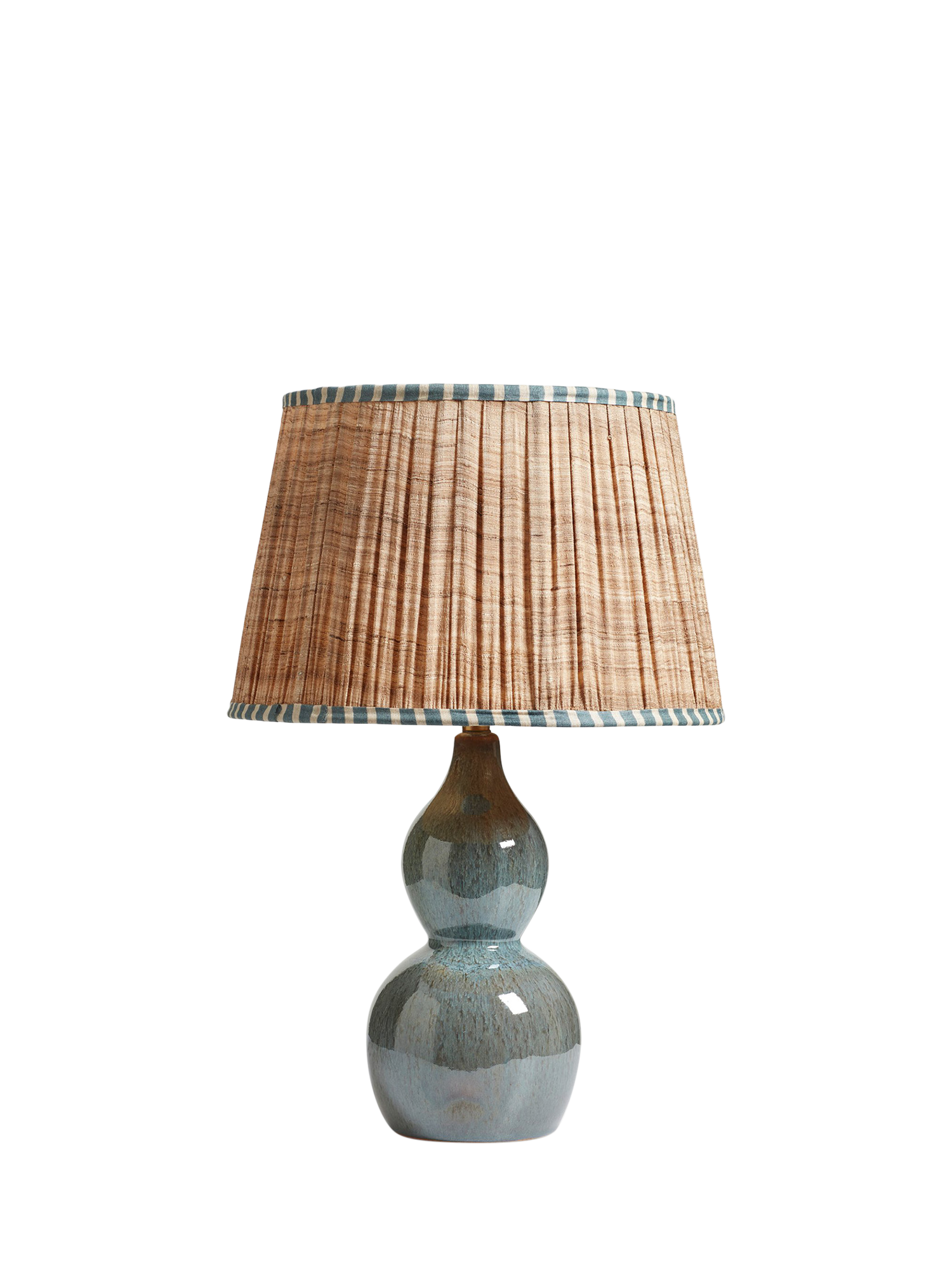 The ceramic lamp base is handmade and finished in a beautiful reactive glaze, which will result in each piece having individual characteristics.