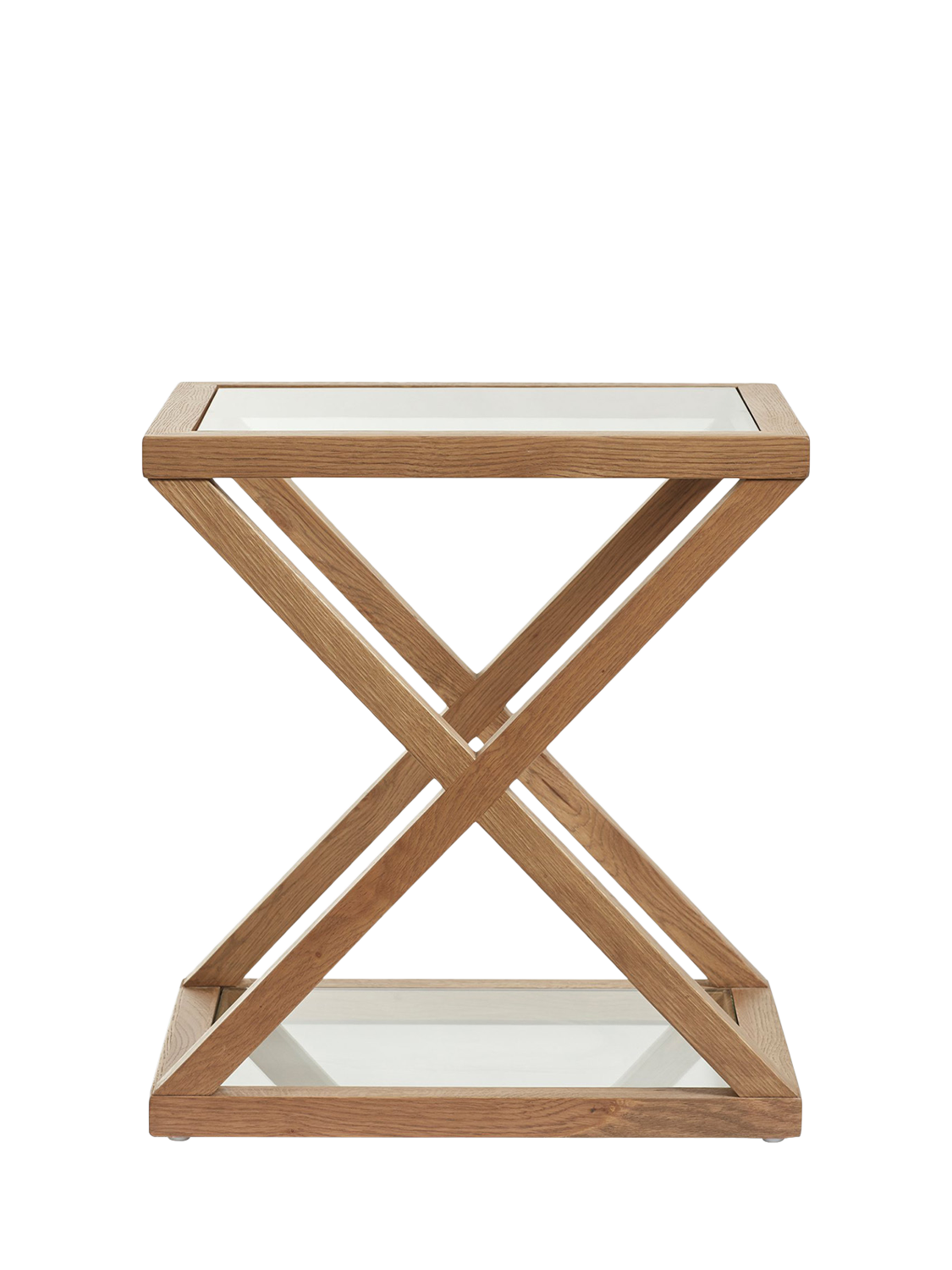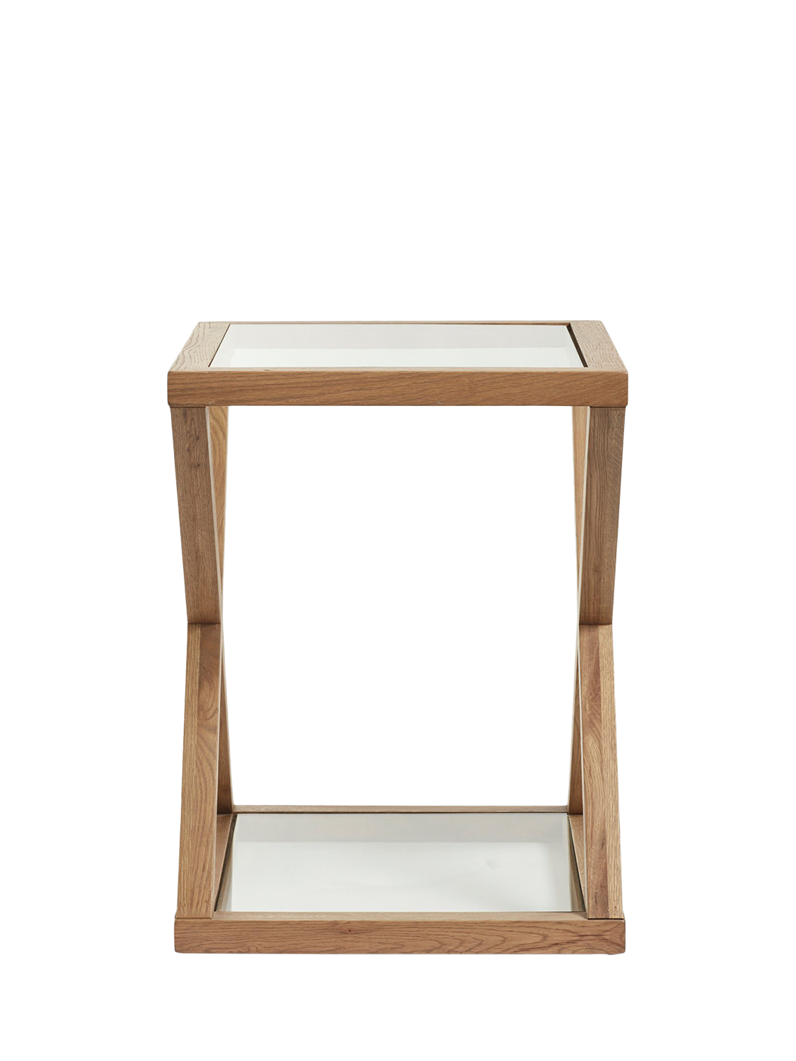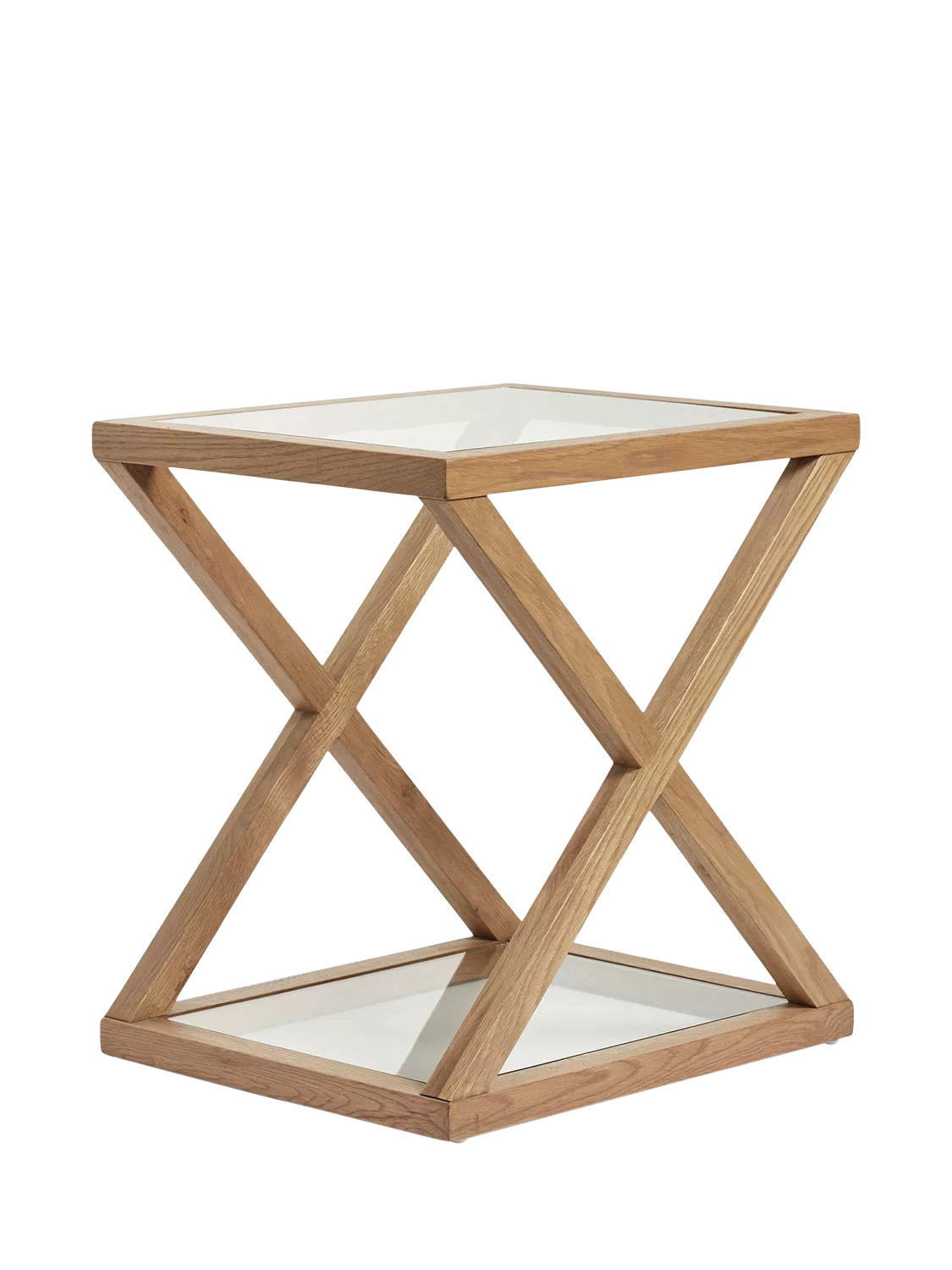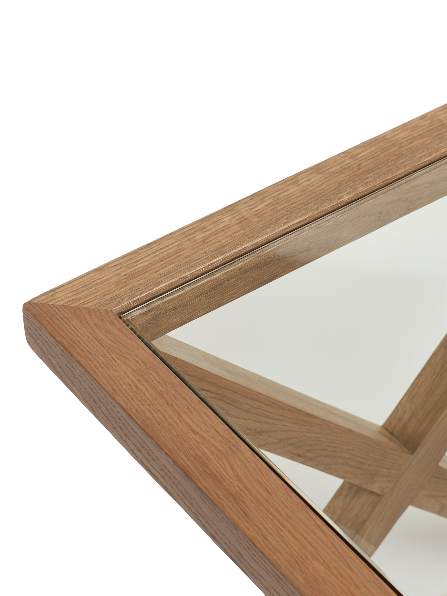 OKA's ever-popular Marylebone Range has received another update; you can now enjoy its geometric solid weathered oak frame as a side table, complete with glass surfaces on its top and bottom.