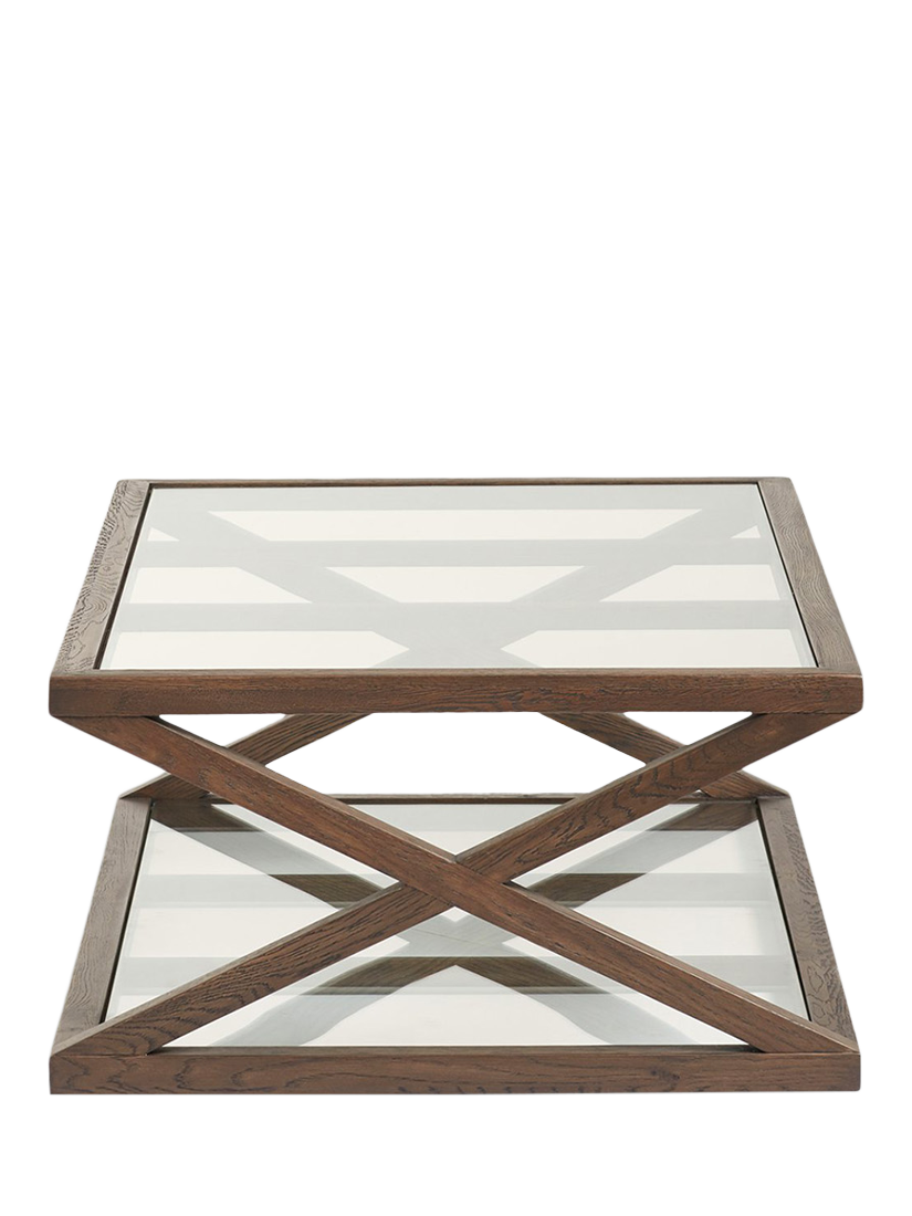 Half the size of the large Marylebone Coffee Table, the essentials remain the same: this petite coffee table is crafted from solid oak, finished in a dark Espresso brown and topped with glass surfaces.