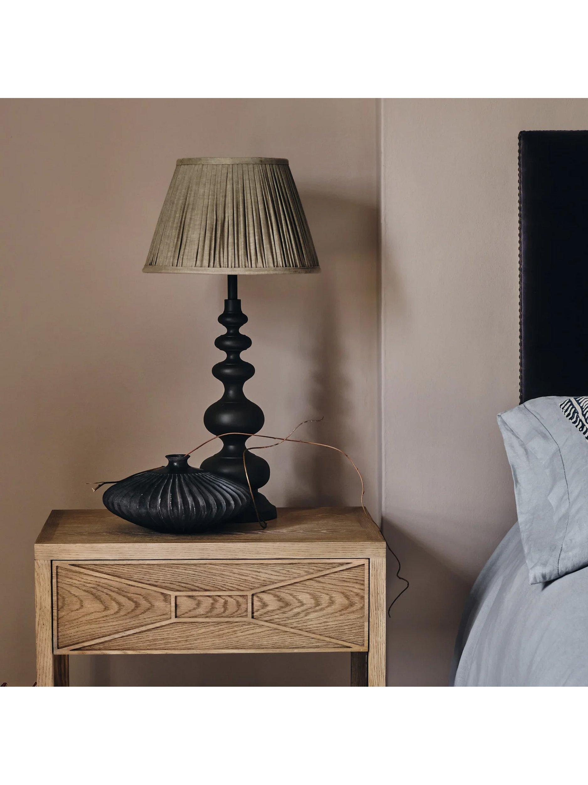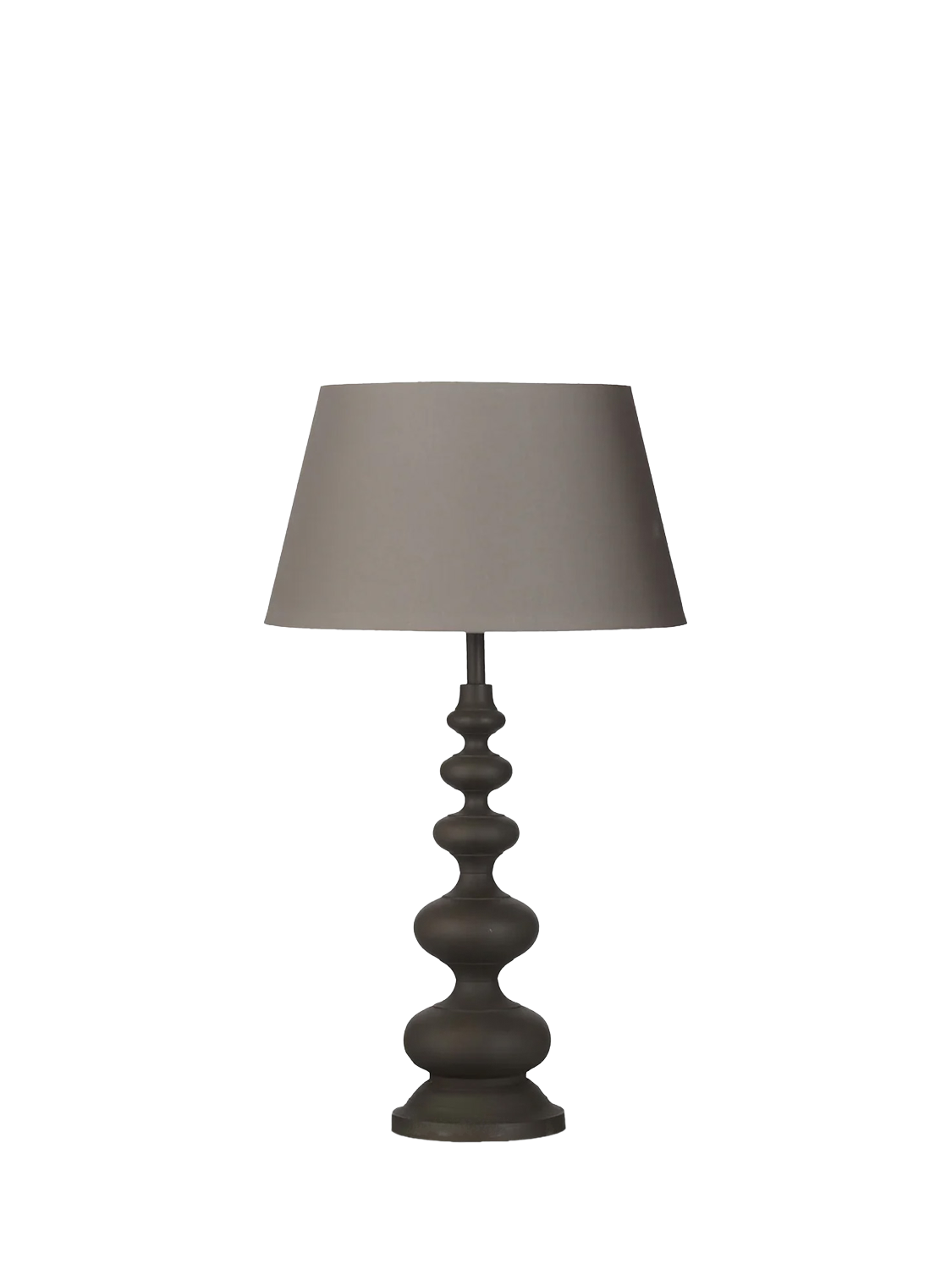 Pleasingly curvaceous, OKA's solid aluminium Persephone lamp base will, by virtue of its neutral gunmetal finish, fit smoothly into almost any scheme. It's large, so it will work beautifully as a feature lamp on a side table, console table or desk. We recommend a 40-45cm diameter shade for use with this lamp.