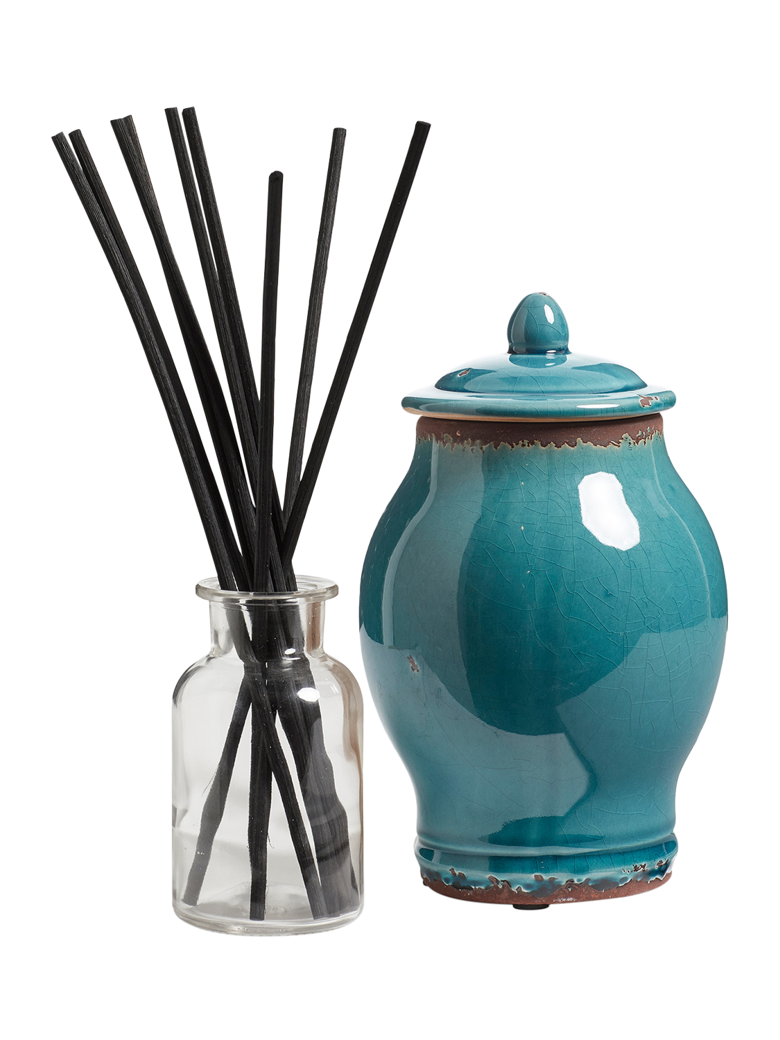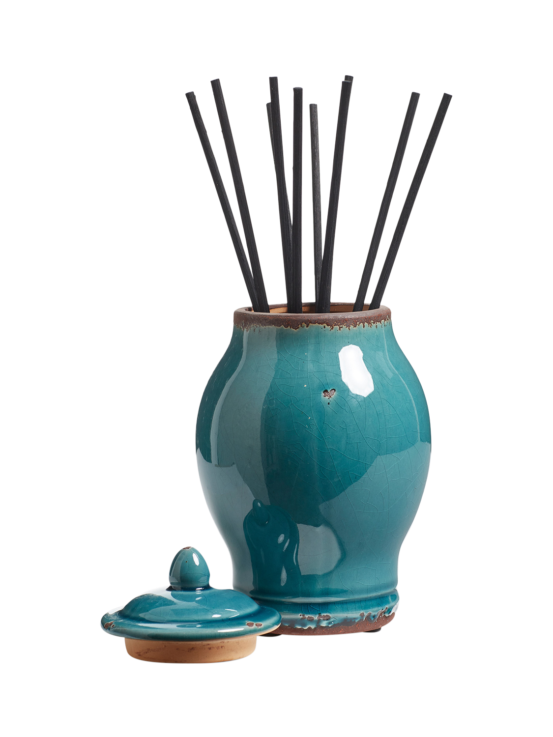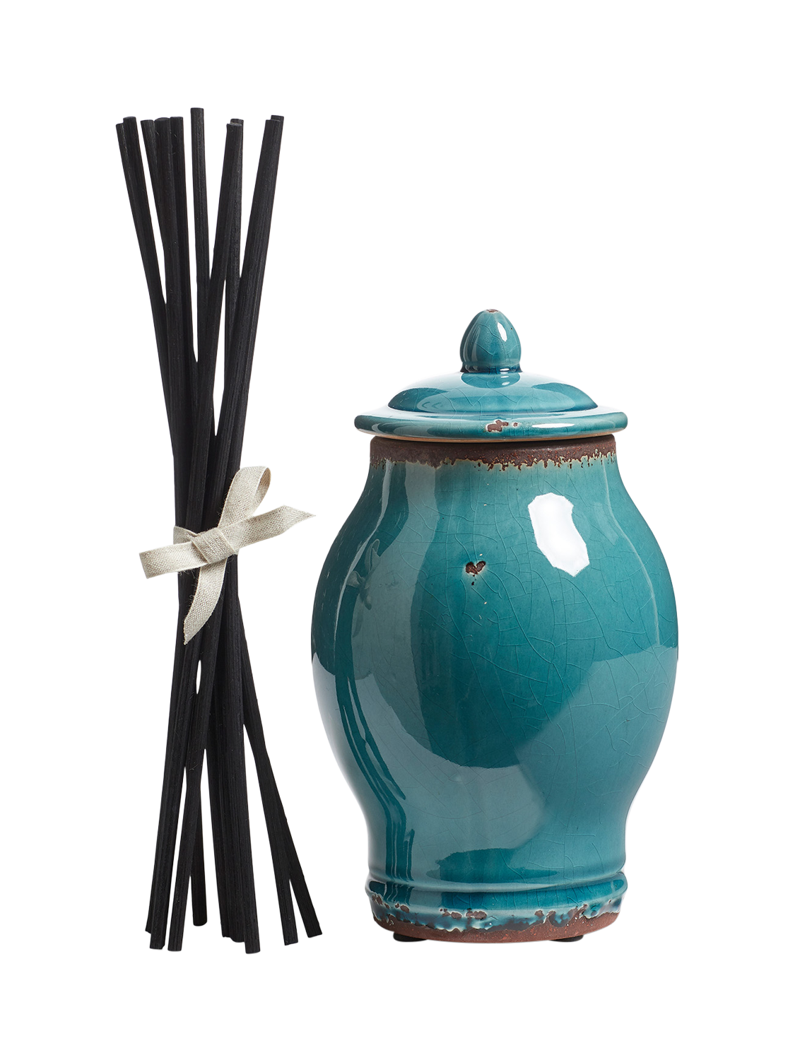 - ceramic hand glazed vessel; 250ml oil; 10 black reed sticks