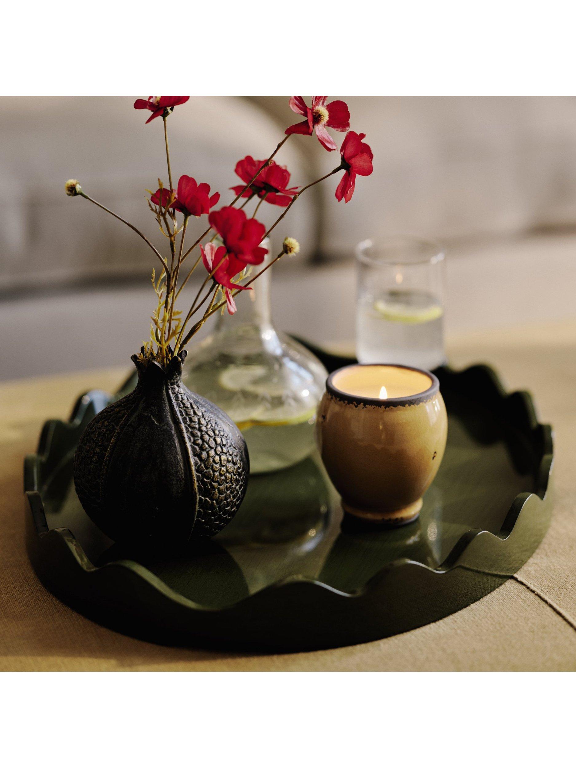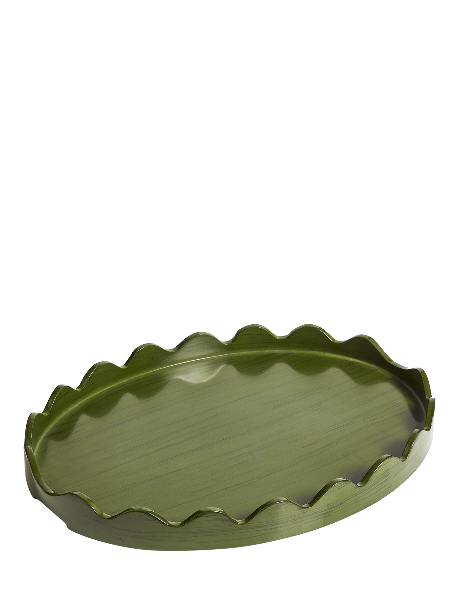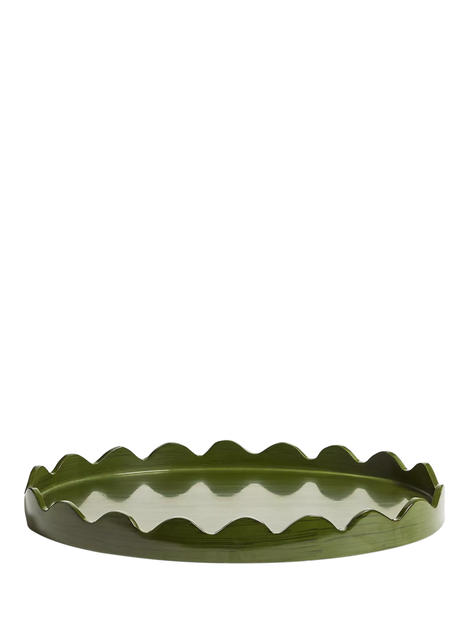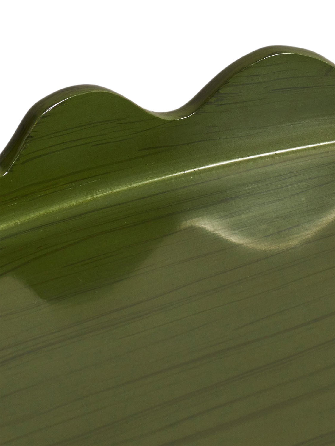 OKA's Talasa Tray is named after the Greek word for 'sea', in homage to its hand-carved undulating edge that resembles a wave. The shape is based on an antique tray and made using mango wood, which is then hand-painted a deep green with a high-shine gloss that brings out the grain of the wood.