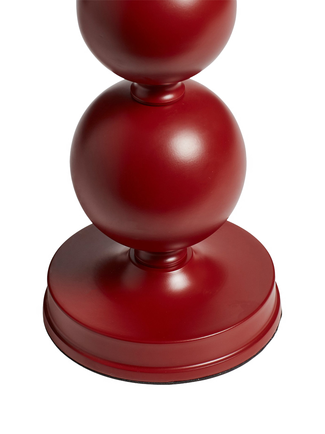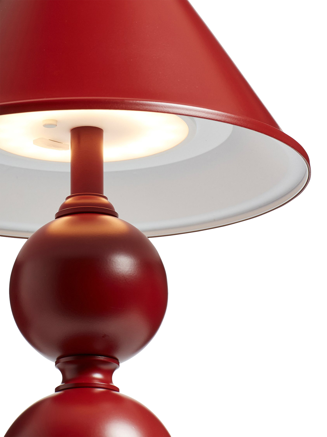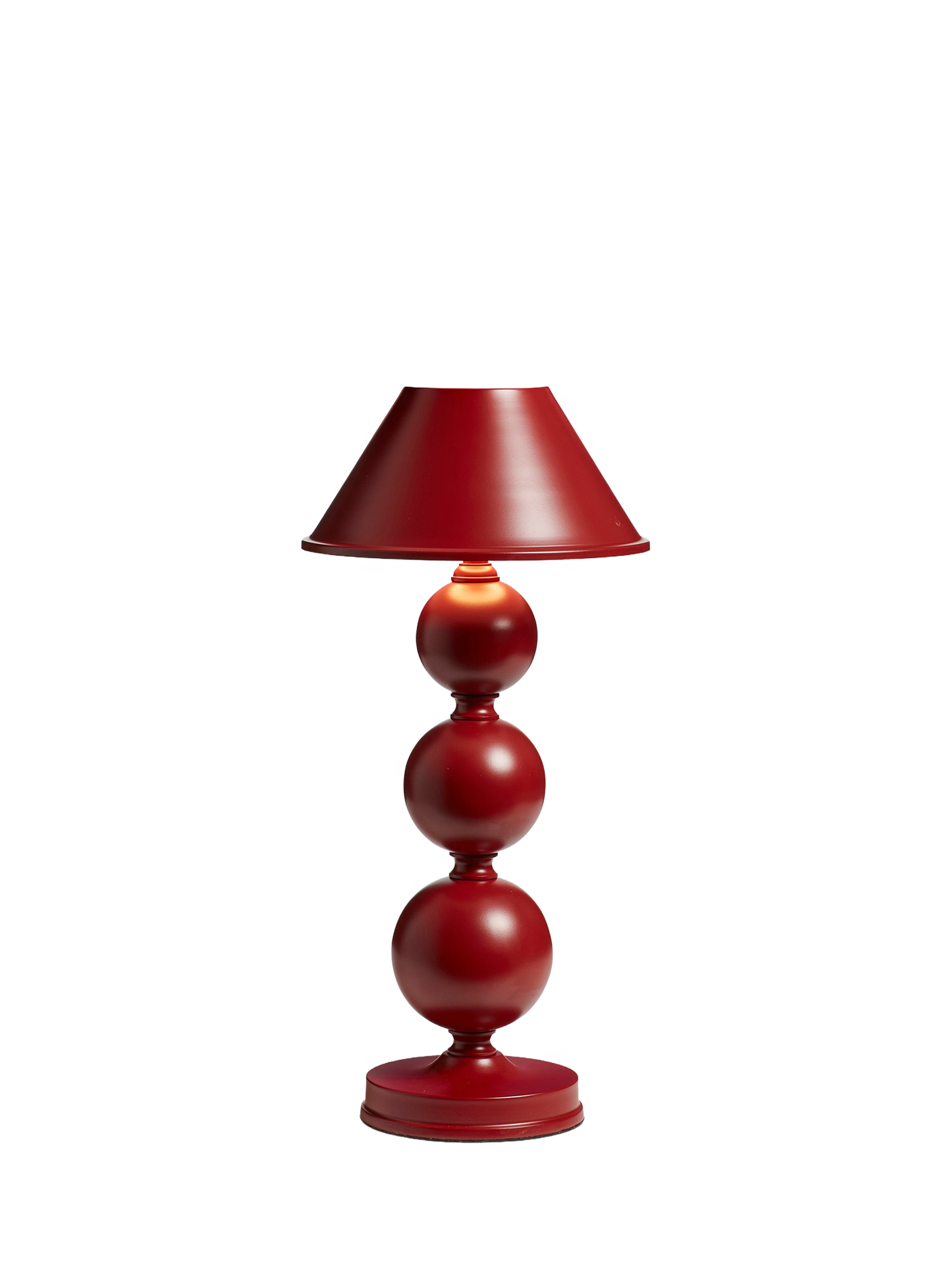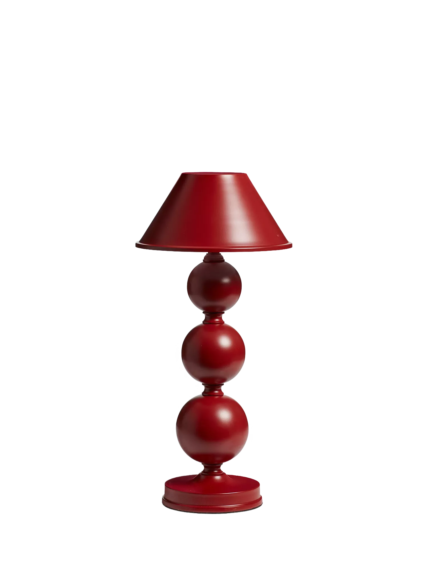 It doesn't get more playful than the Triya's spherical stem. Crafted from iron and steel, the three orbs are hand-painted a deep red, polished and finished with a matching metal shade. Its wireless nature means that you can transport this table lamp around the house wherever you please.
