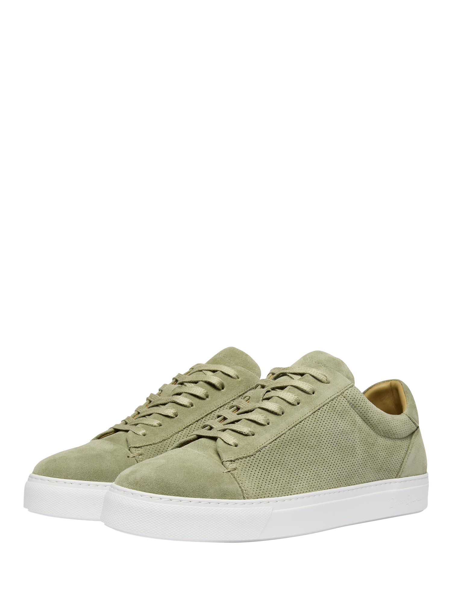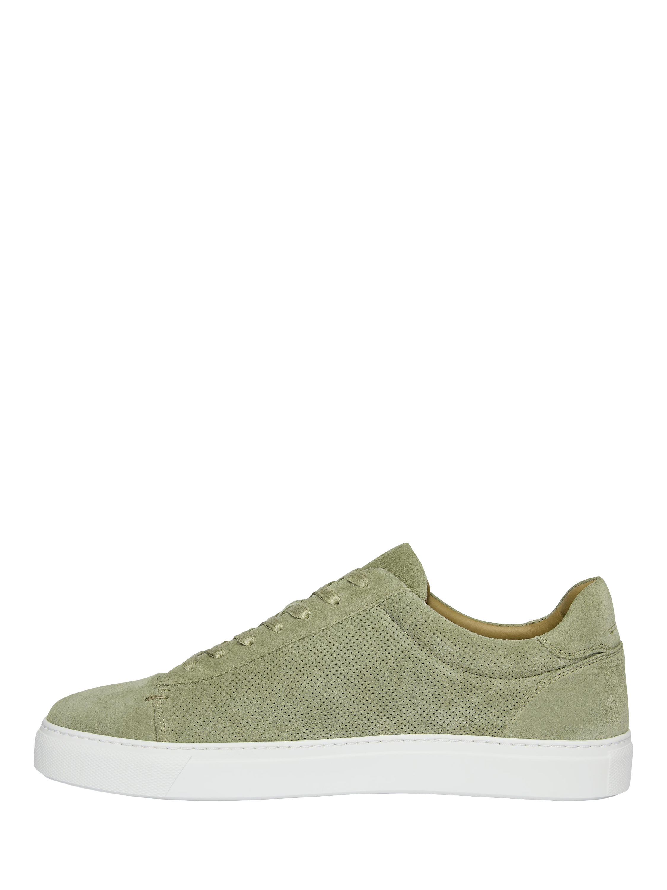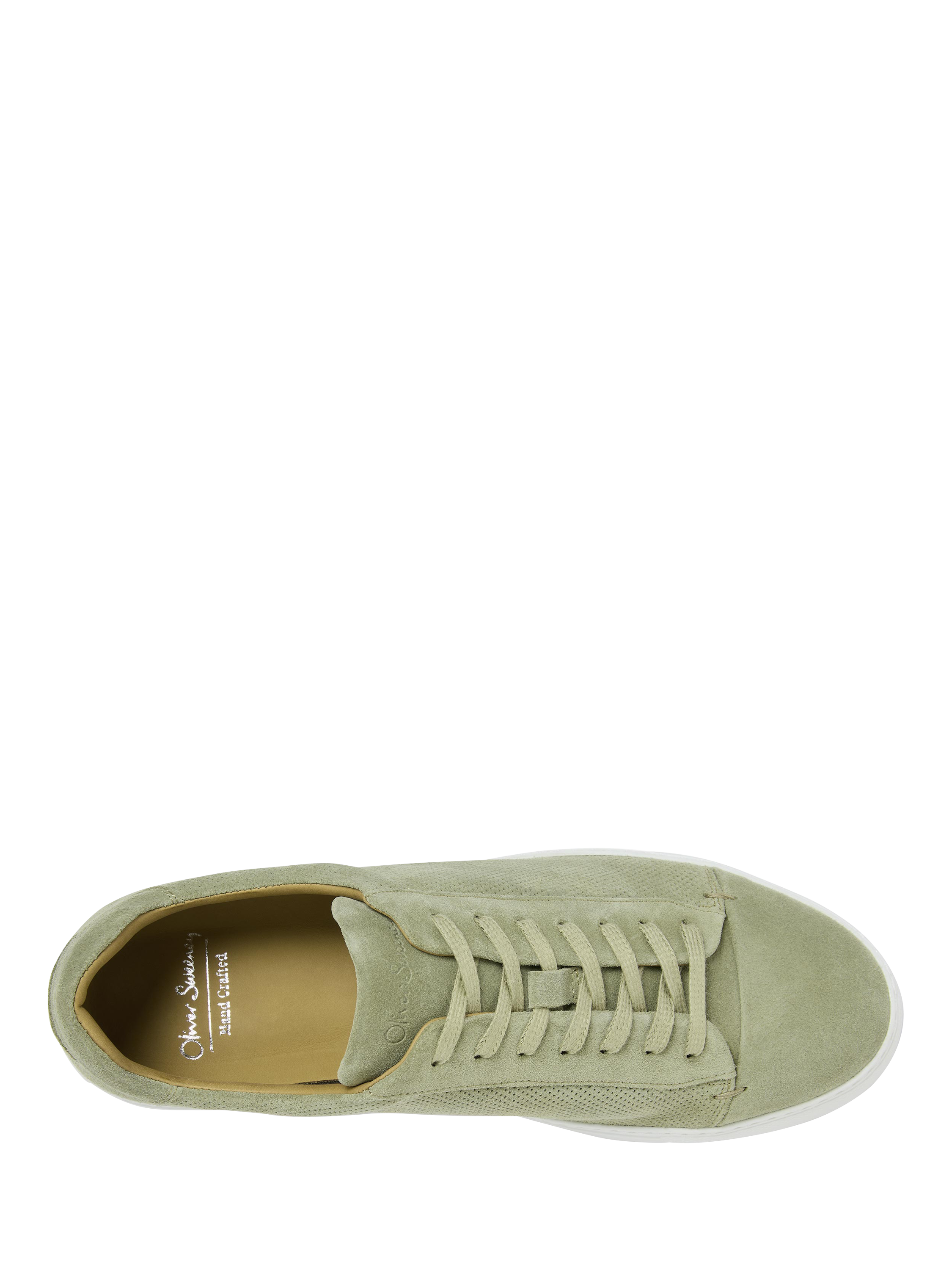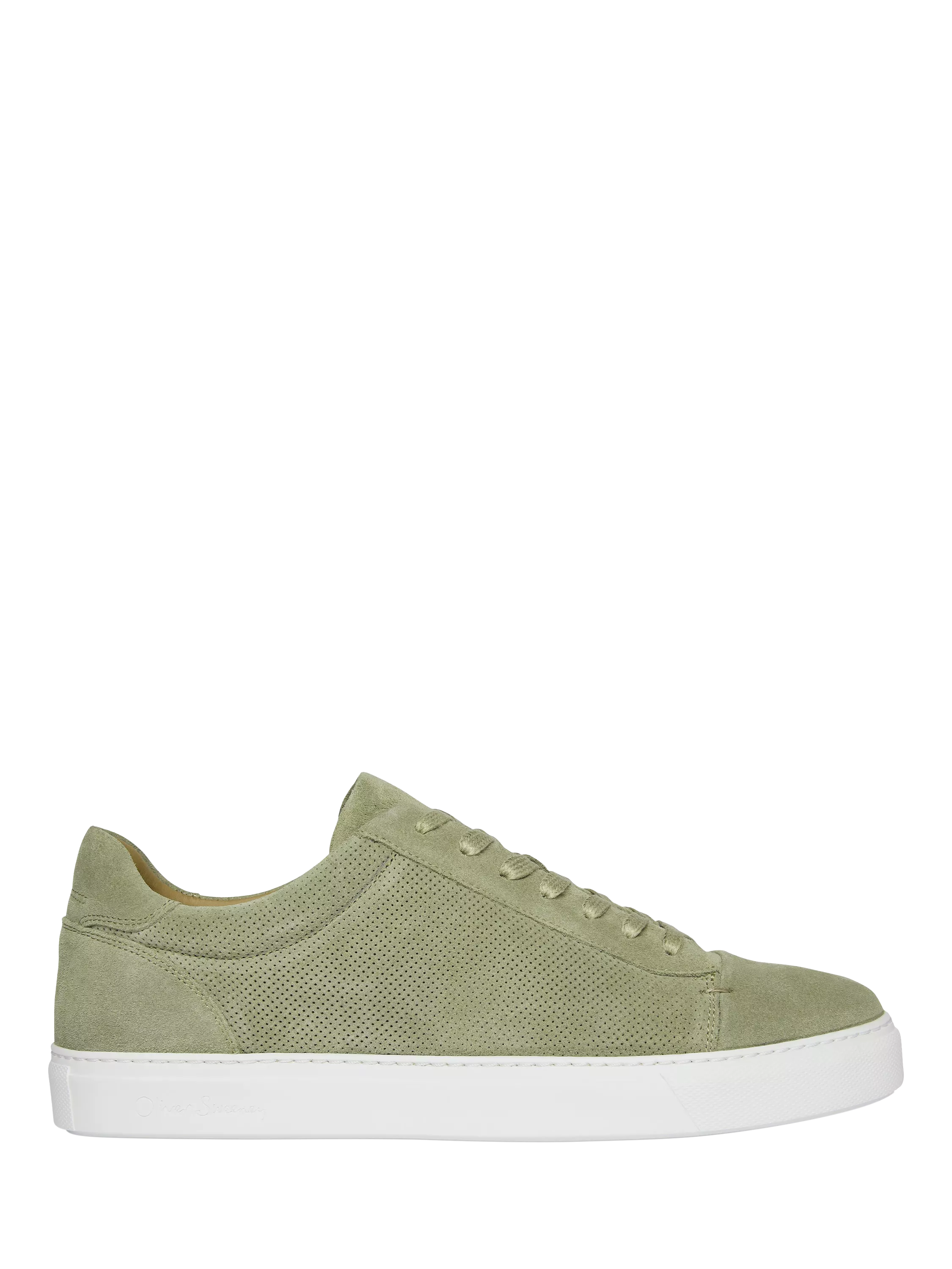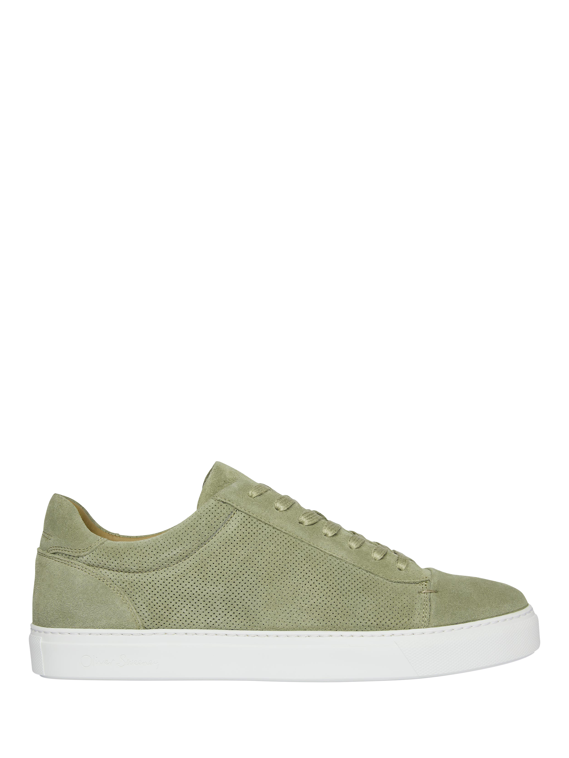 These perforated trainers from Oliver Sweeney are a combination of smooth and punched calf leather with a matt finish. The upper pattern features a toe cap with a neatly folded seam, punched quarter panels, a padded collar and a bagged topline and tongue. Inside, they've included a full calf leather lining and deep-cushioned leather insole. The trainers are made traditionally and cemented to a lightweight cupsole secured with a side stitch.