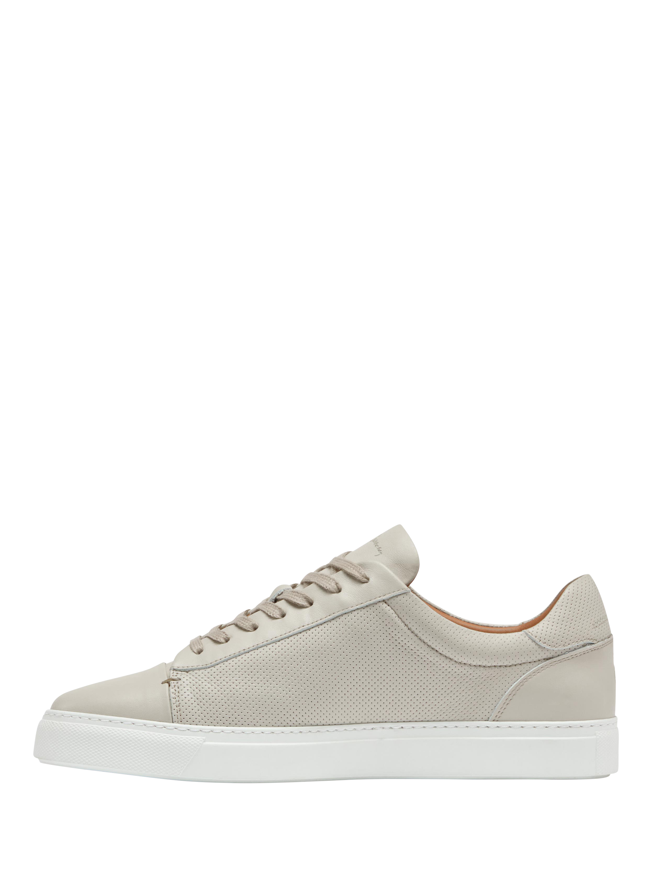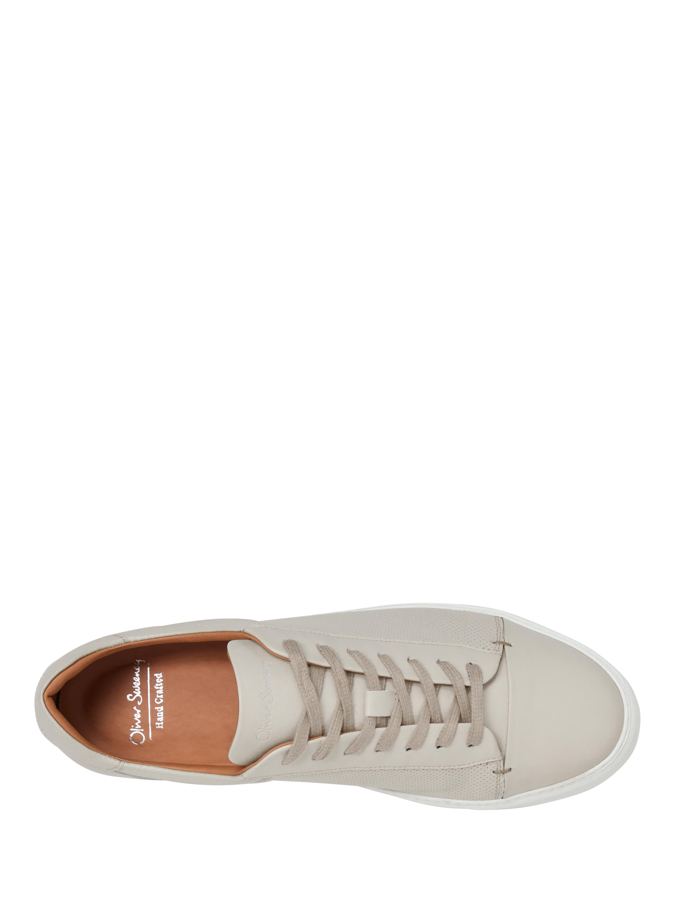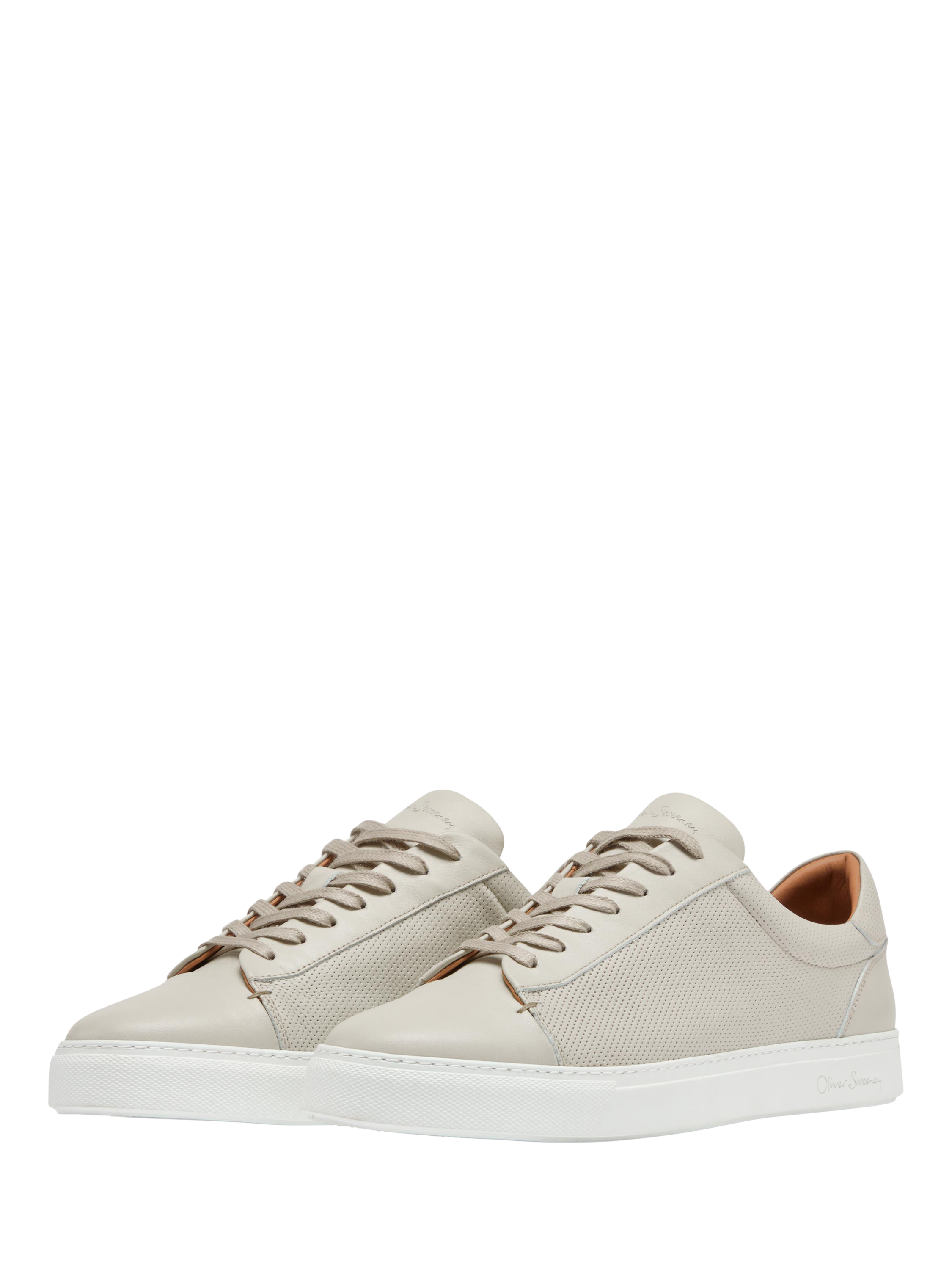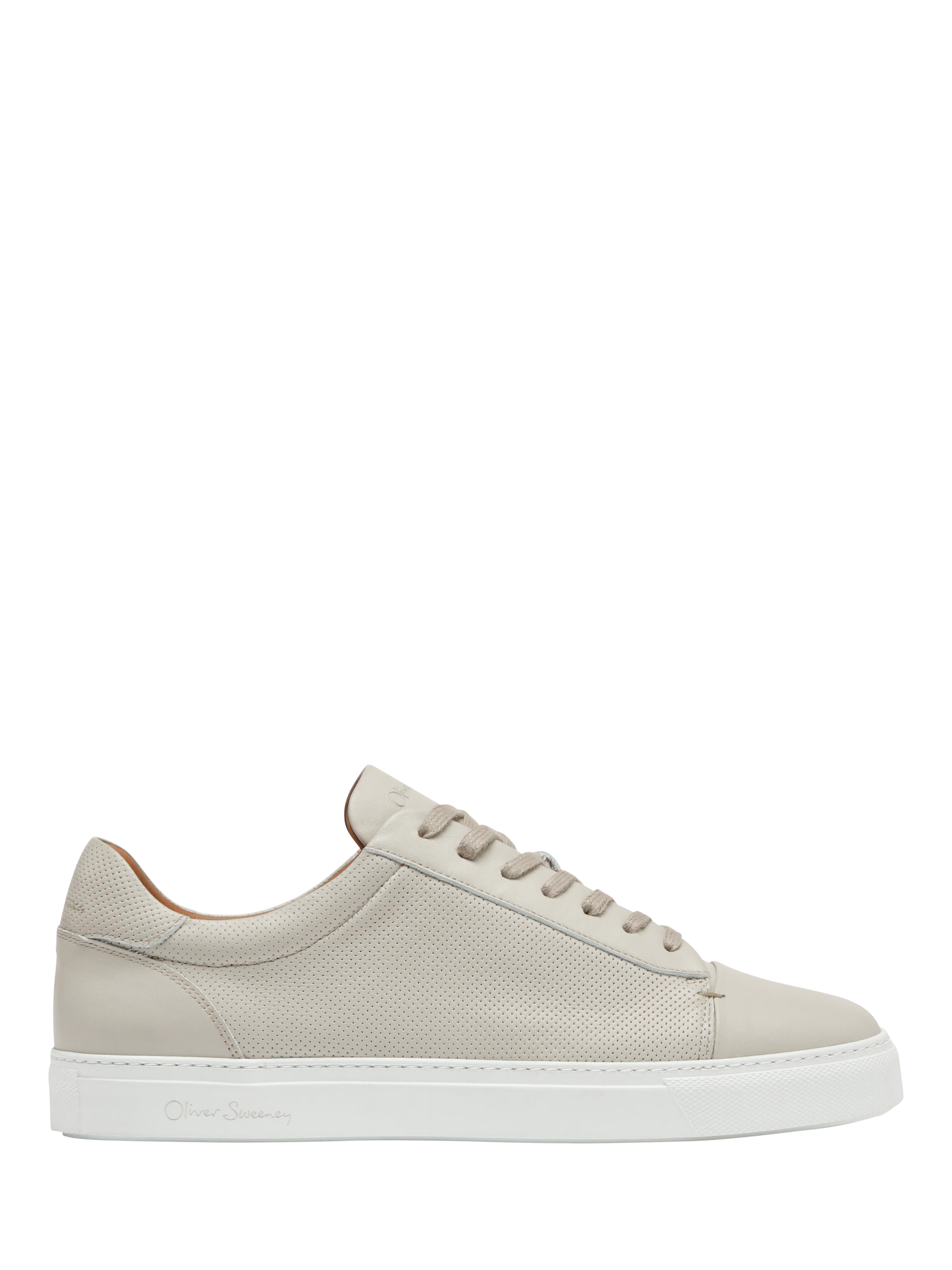 These perforated trainers from Oliver Sweeney are a combination of smooth and punched calf leather with a matt finish. The upper pattern features a toe cap with a neatly folded seam, punched quarter panels, a padded collar and a bagged topline and tongue. Inside they've included a full calf leather lining and deep-cushioned leather insole. The trainers are made traditionally and cemented to a lightweight cupsole secured with a side stitch.