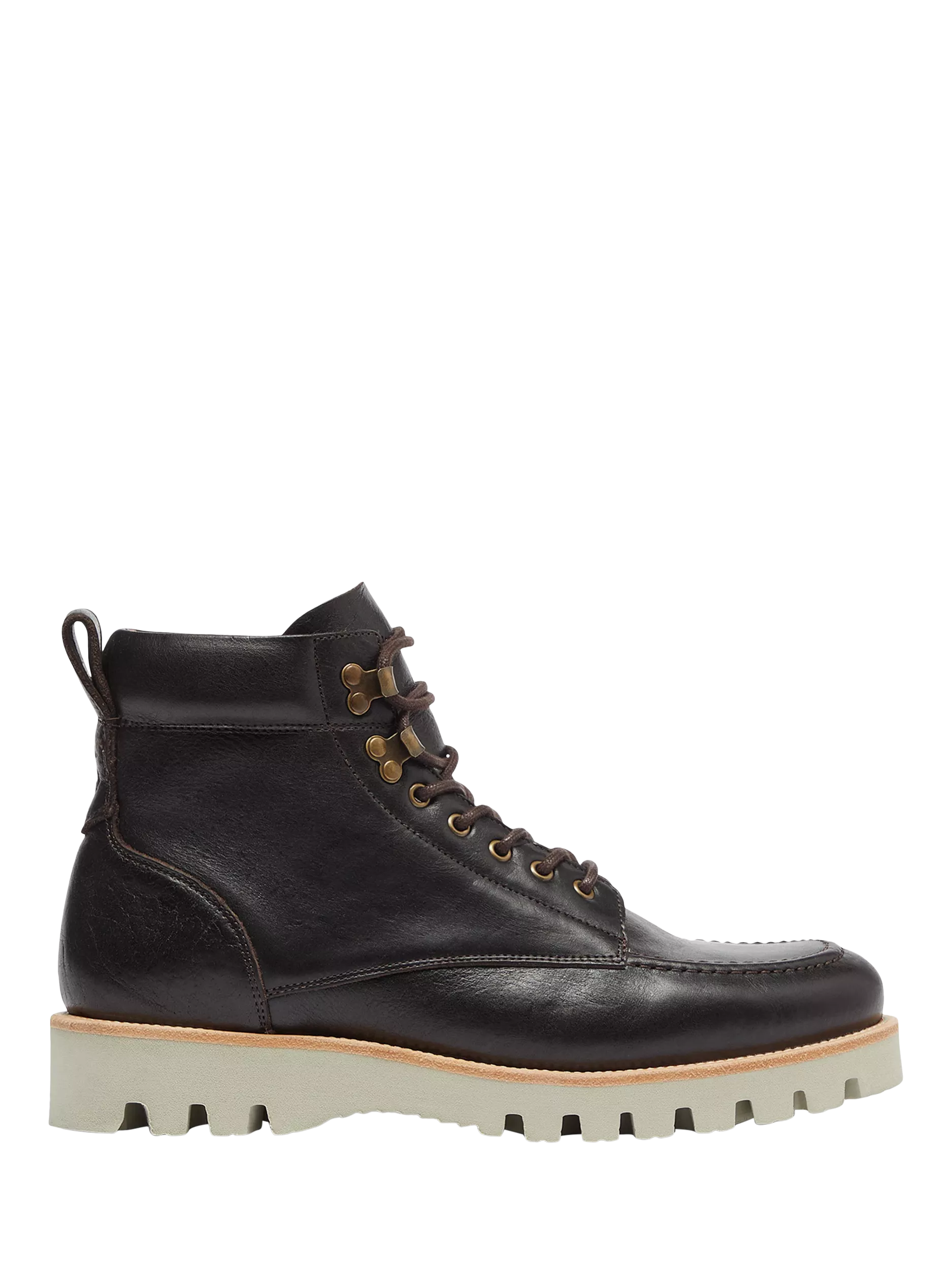 Robust and rugged, these Bolhas work boots from Oliver Sweeney are made from Pheonix Leather from the C F Stead tannery in Leeds. The leather has a unique tannage with a blend of oils to promote water resistance and the upper has an ‘air cord’ apron seam, whereby the leather is moulded over a cord and stitched. This gives the traditional apron detailing, whilst retaining all the benefits of a whole piece of leather – the apron then extends to a bellows tongue, sealing the facings. Inside there is a full leather lining and insock and a padded collar, and they've chosen a neutral coloured lightweight Live Tech sole with a deep profile and strong cleat.