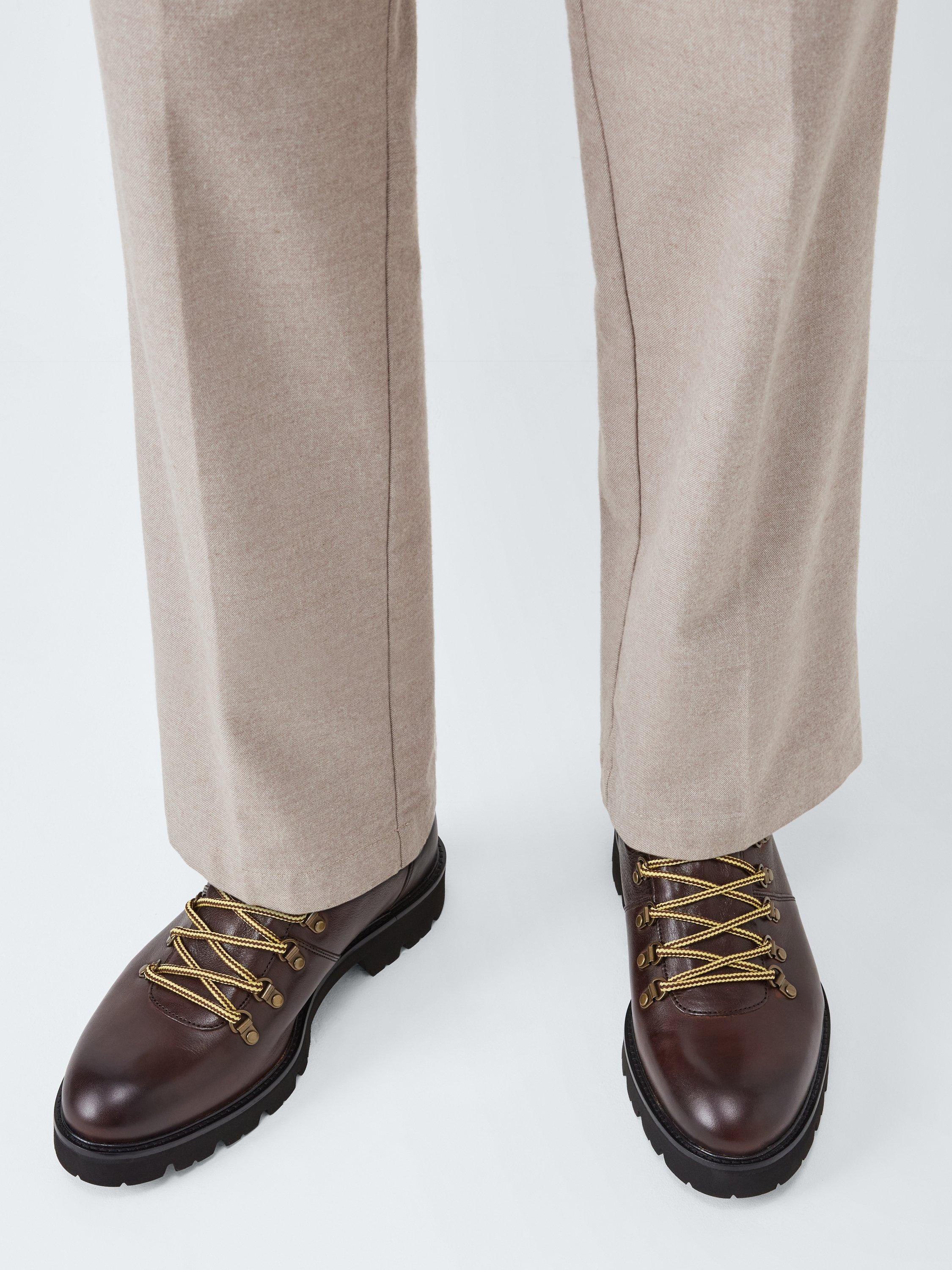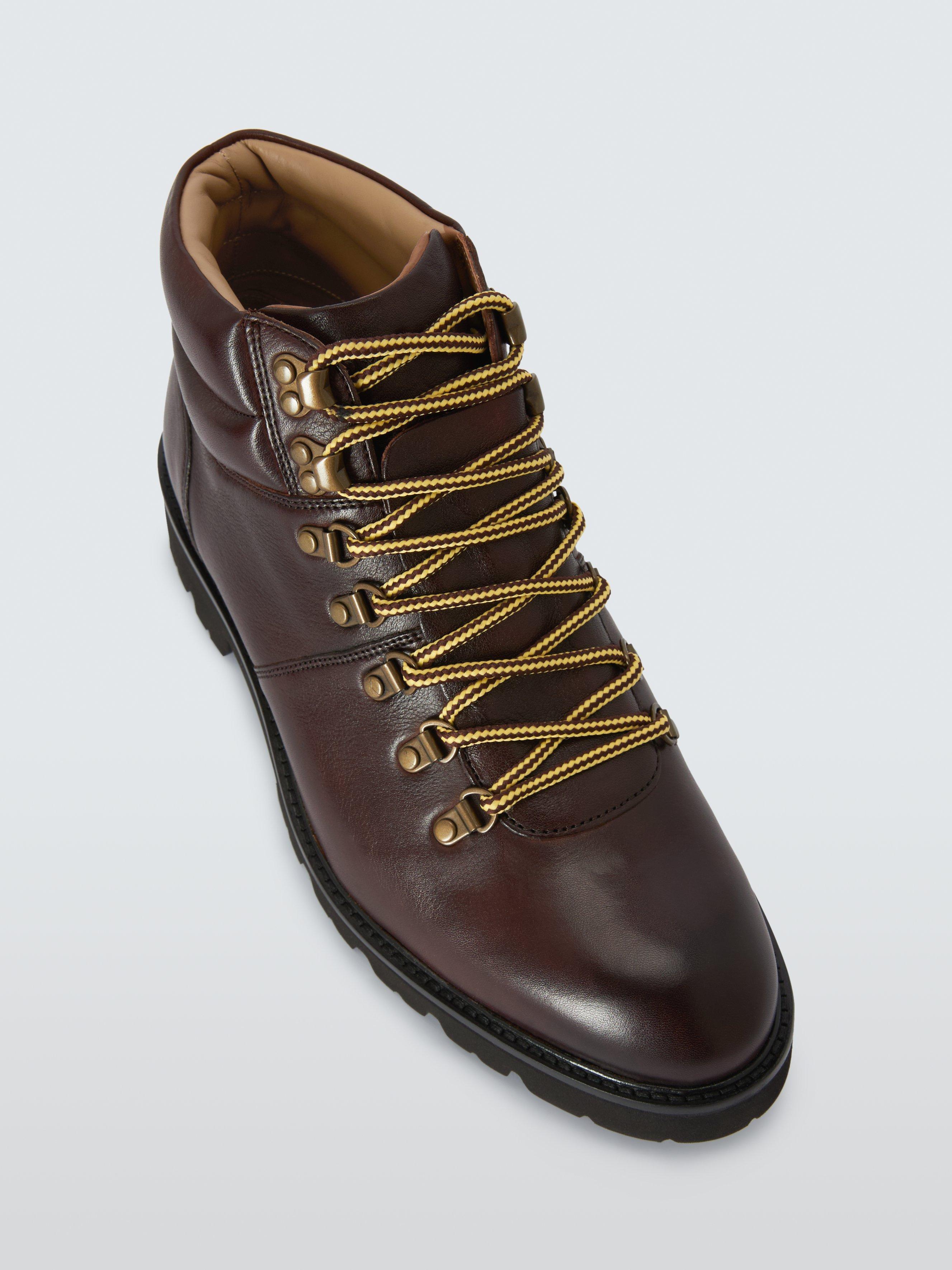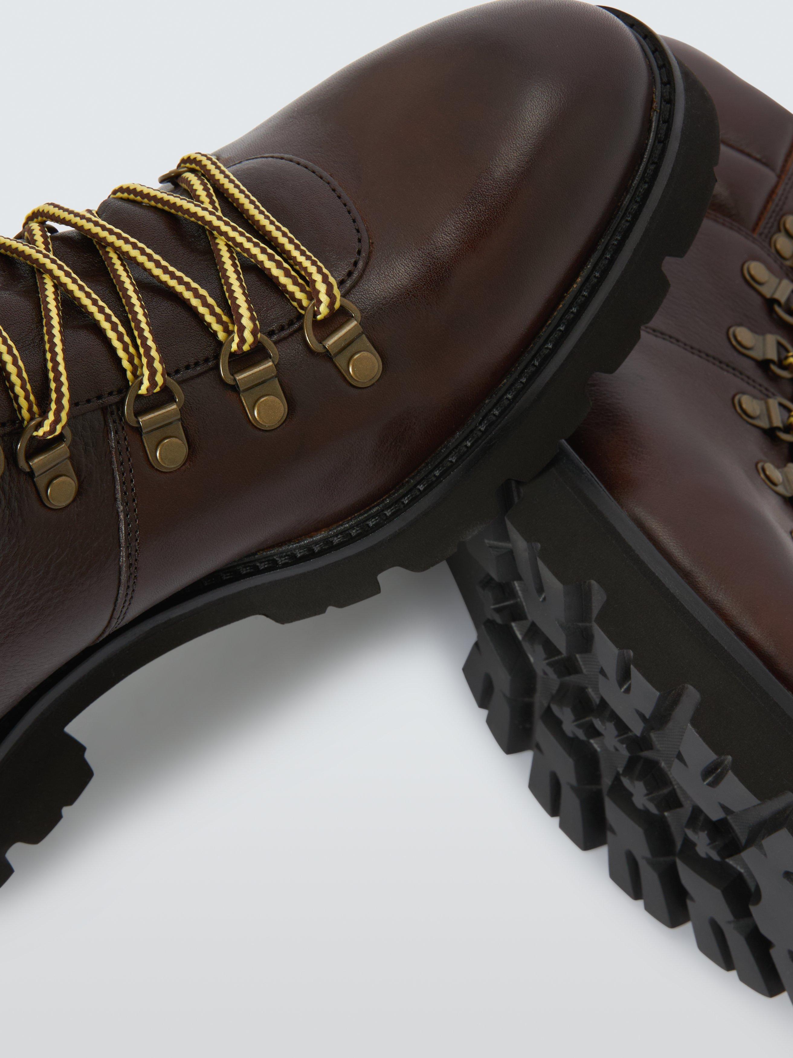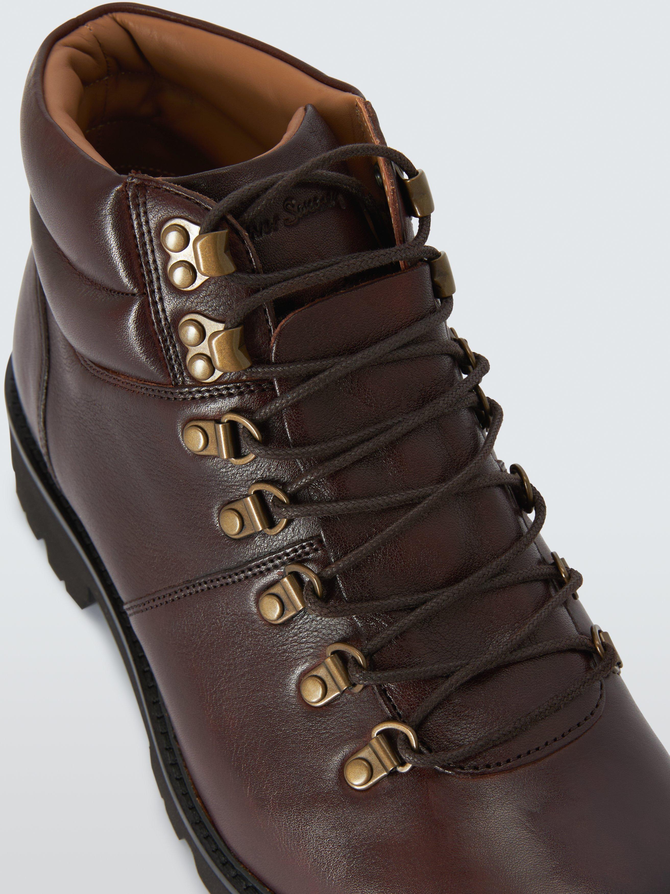This lightweight hiker is made from milled calf leather with a padded collar and tongue on the Finproject Extralight cleated sole, topped with a leather rand. Showcasing an external cover over the tongue for additional protection from inclement weather. A series of D rings and ski hooks provide a flexible fit. Inside, there is a calf leather cushioned in-sock.