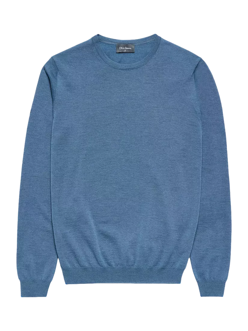Oliver Sweeney's 100% merino wool crew neck jumper from the acclaimed Zegna Baruffa Mill in Italy, is a year round staple. Using a super fine 27 gauge, fully fashioned with a dropped back shoulder seam, to create a clean profile.
