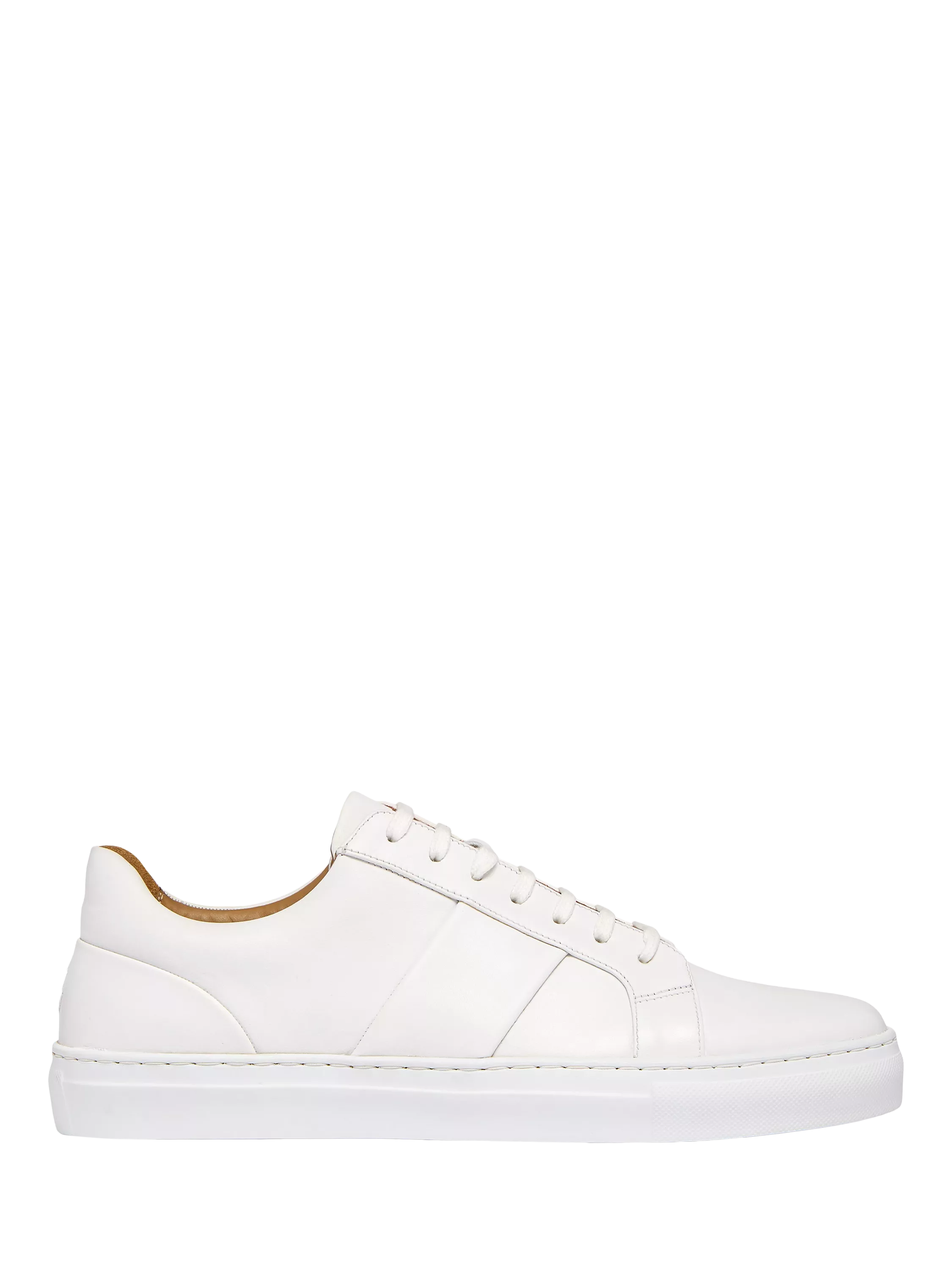 Oliver Sweeney's new cupsole trainer is made from milled leather, a tumbled, grainy textured leather with a soft feel. The upper pattern has clean lines with neatly folded seams and side panels and a cushioned collar.