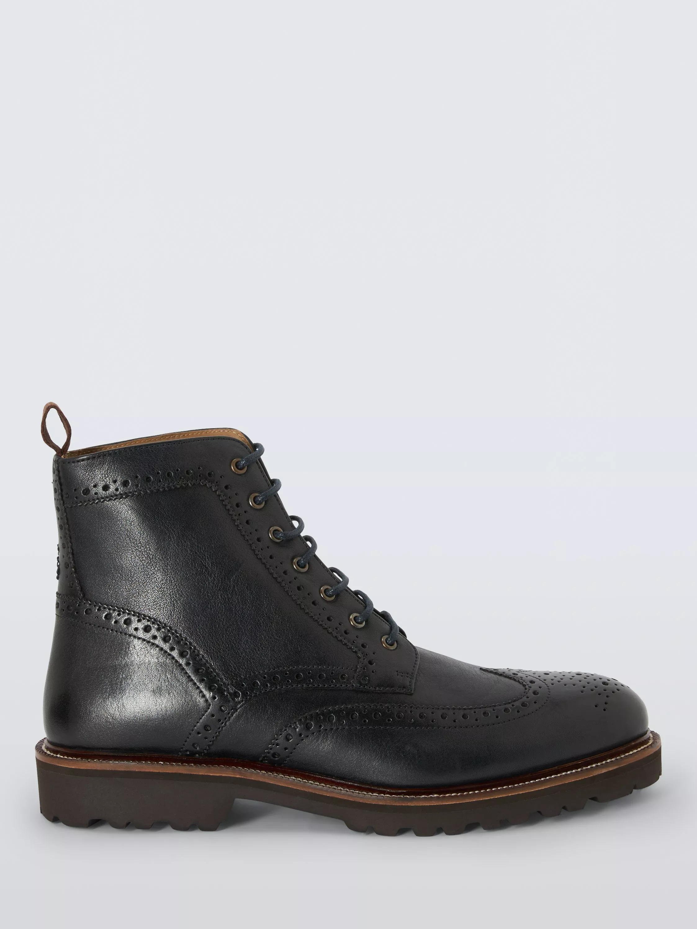 A classic Derby wingtip brogue boot on a super lightweight Finproject sole. The upper is made from milled calf leather and features classic brogue detail, antique brass eyelets and a handy back pull tab. The durable Finproject Extralight cleated sole has a solid sturdy appearance, with a fraction of the weight and is topped with a stitched leather rand. Inside, there is a half calf leather lining and cushioned heel pad.