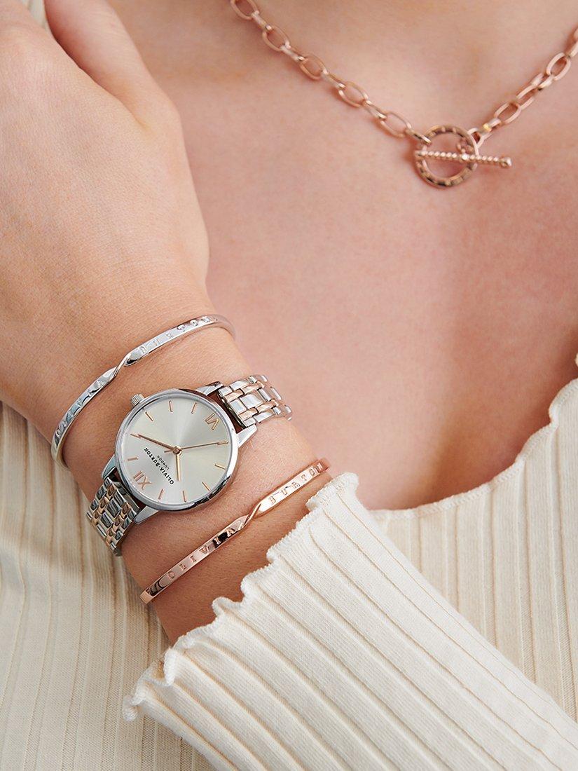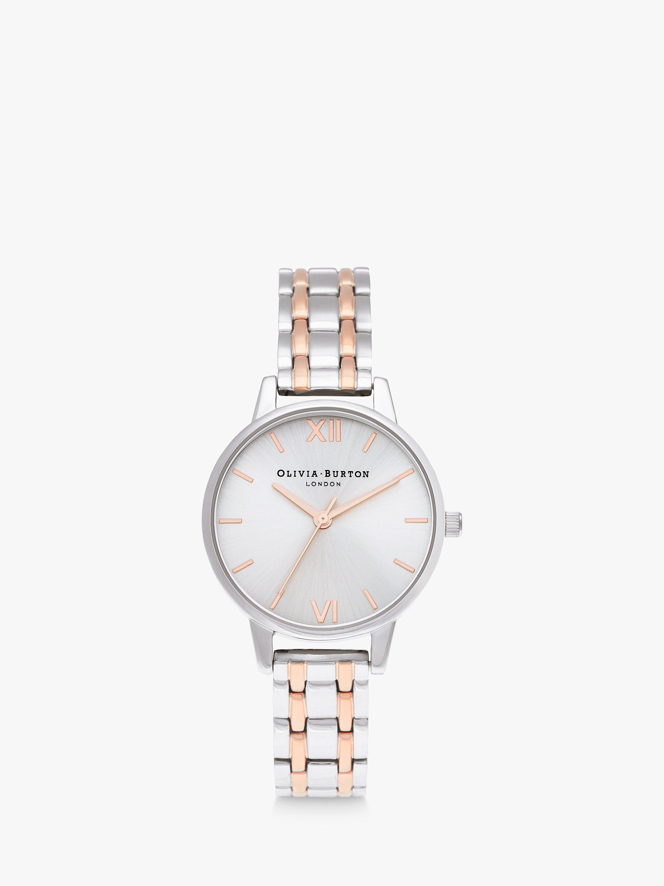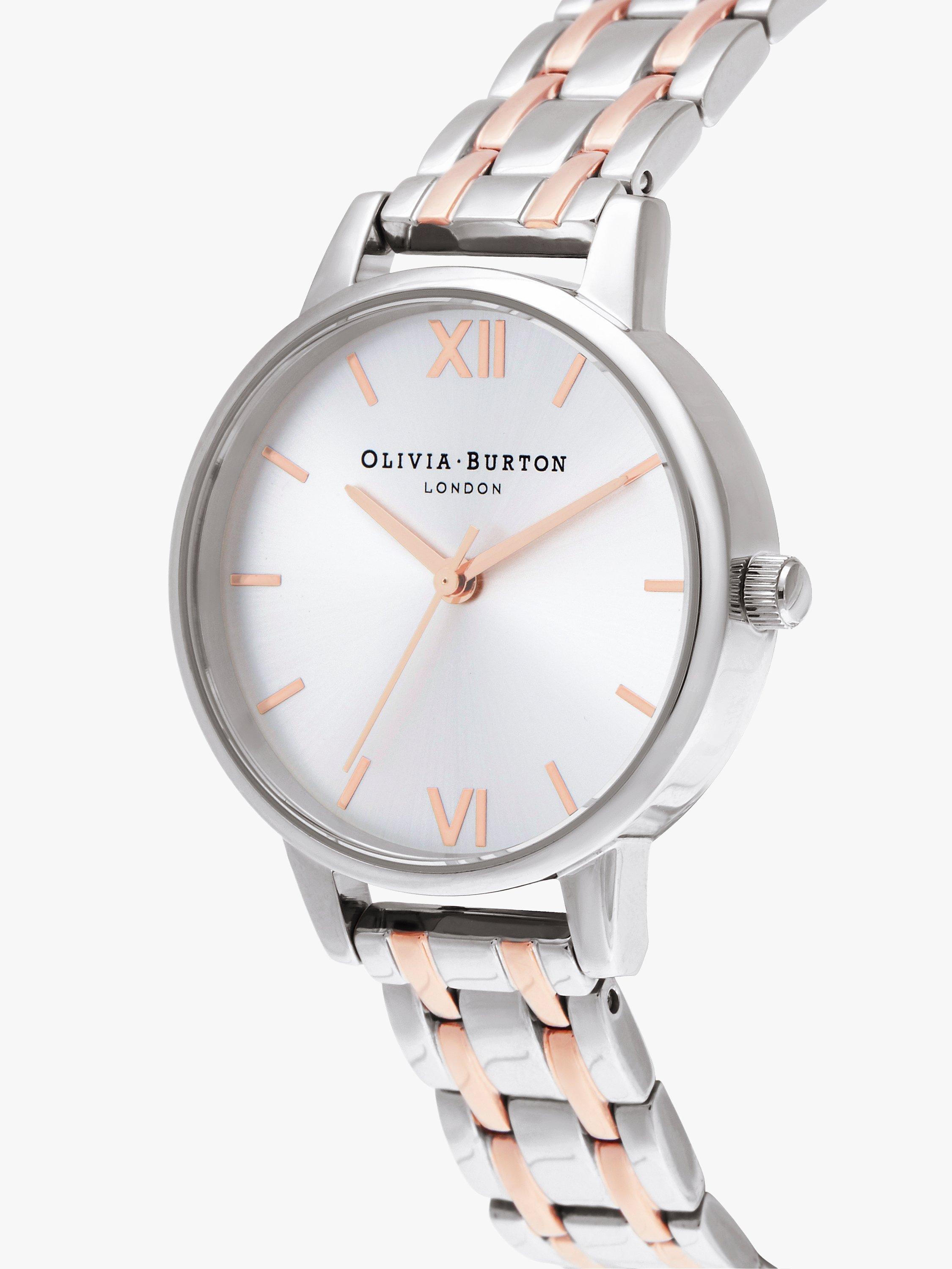 Part of the England collection and referring to Olivia Burton's birthplace, this beautiful watch takes on a two-tone bracelet design. The dial is recognisable with its clean aesthetic and high legibility. The watch fastens with a folding clasp.