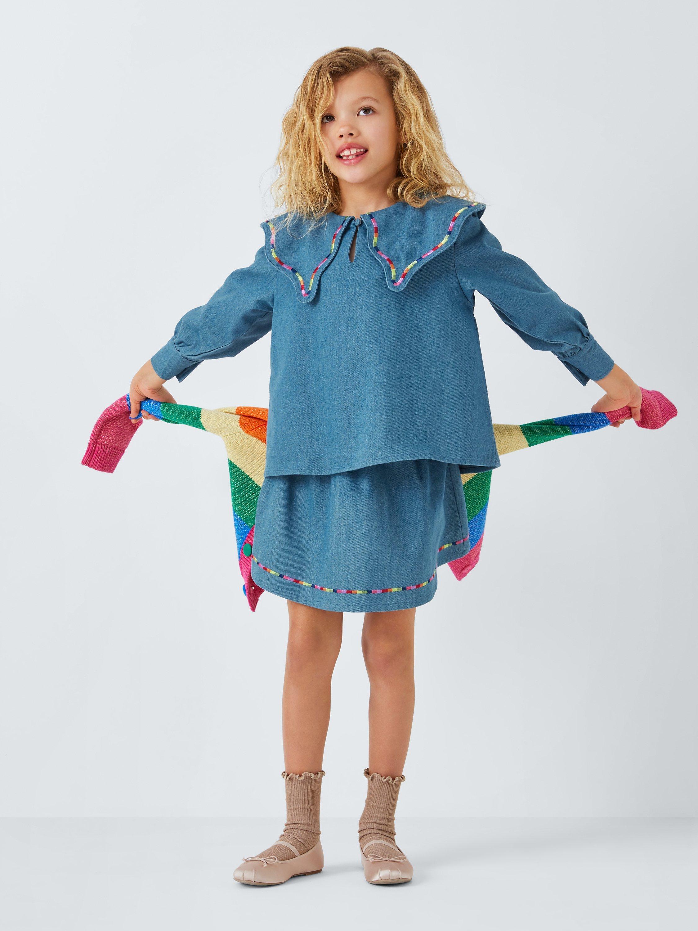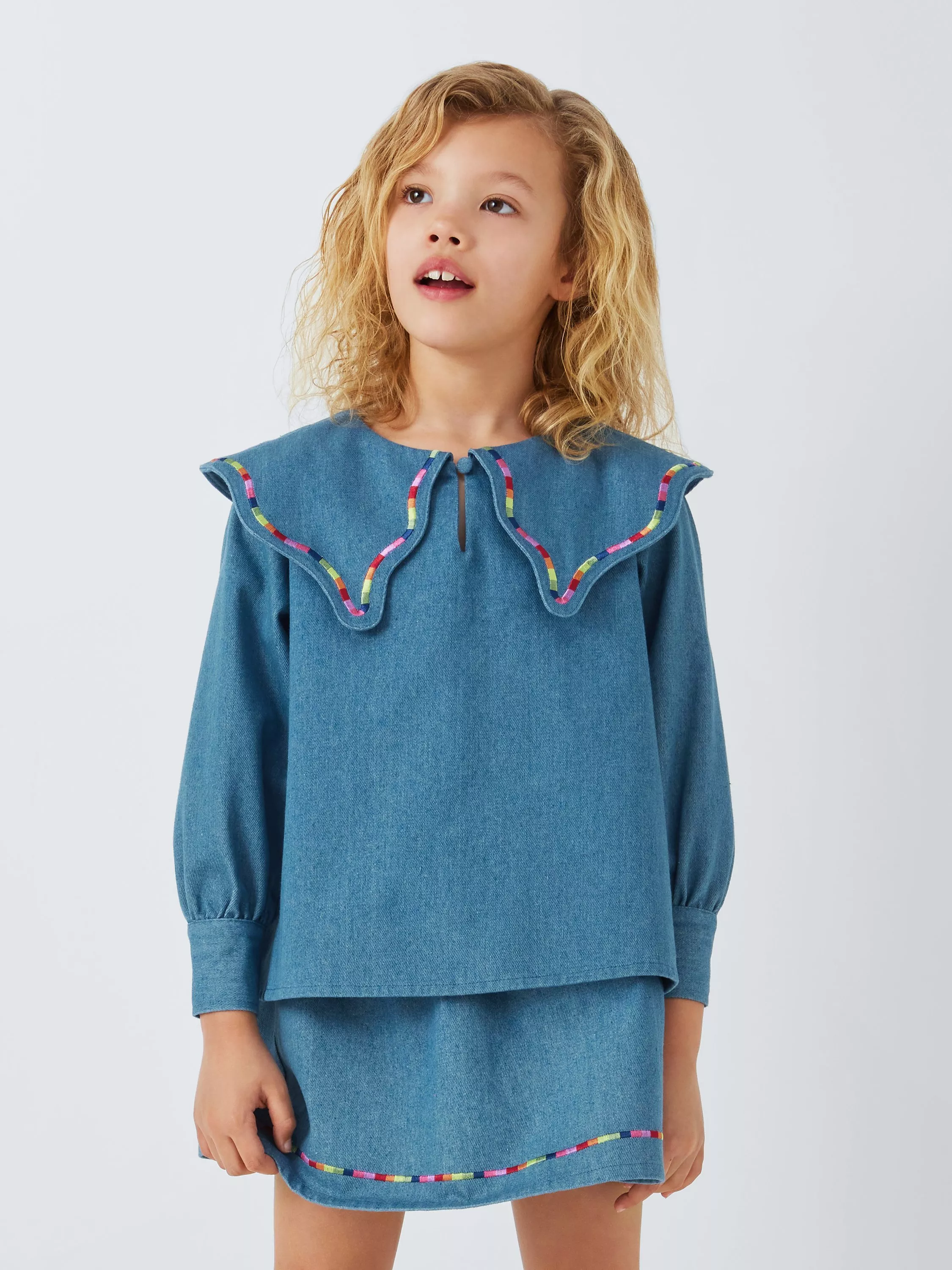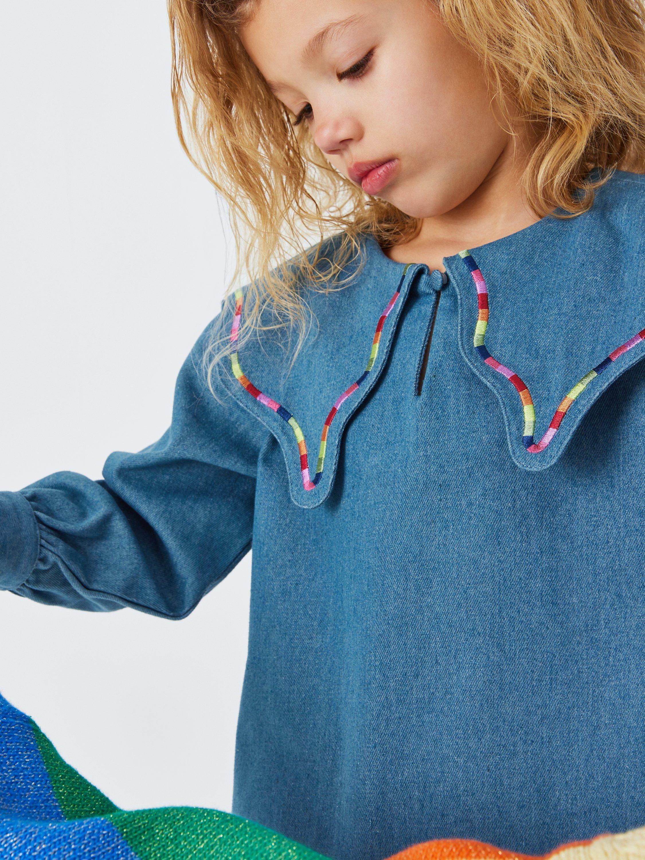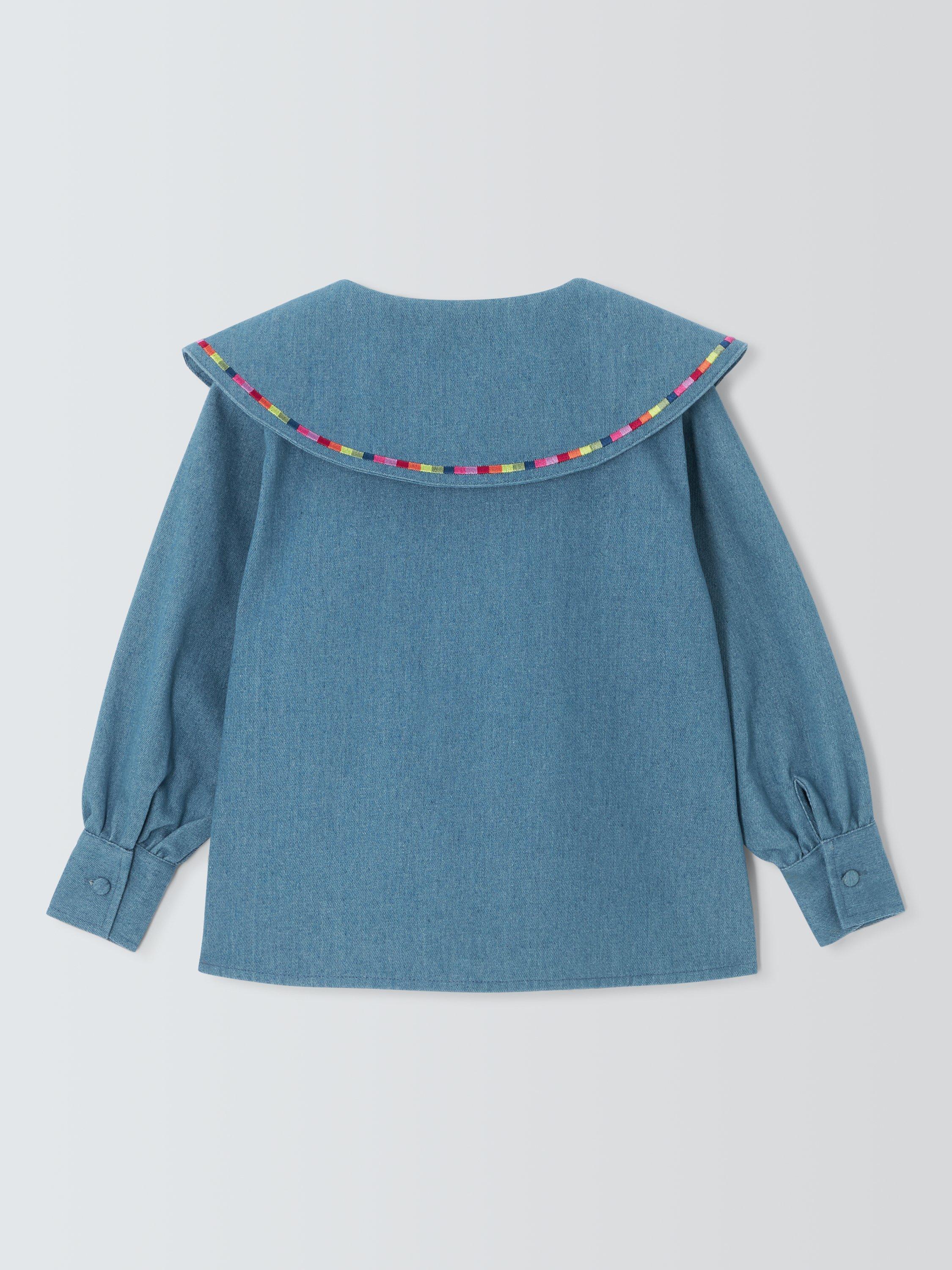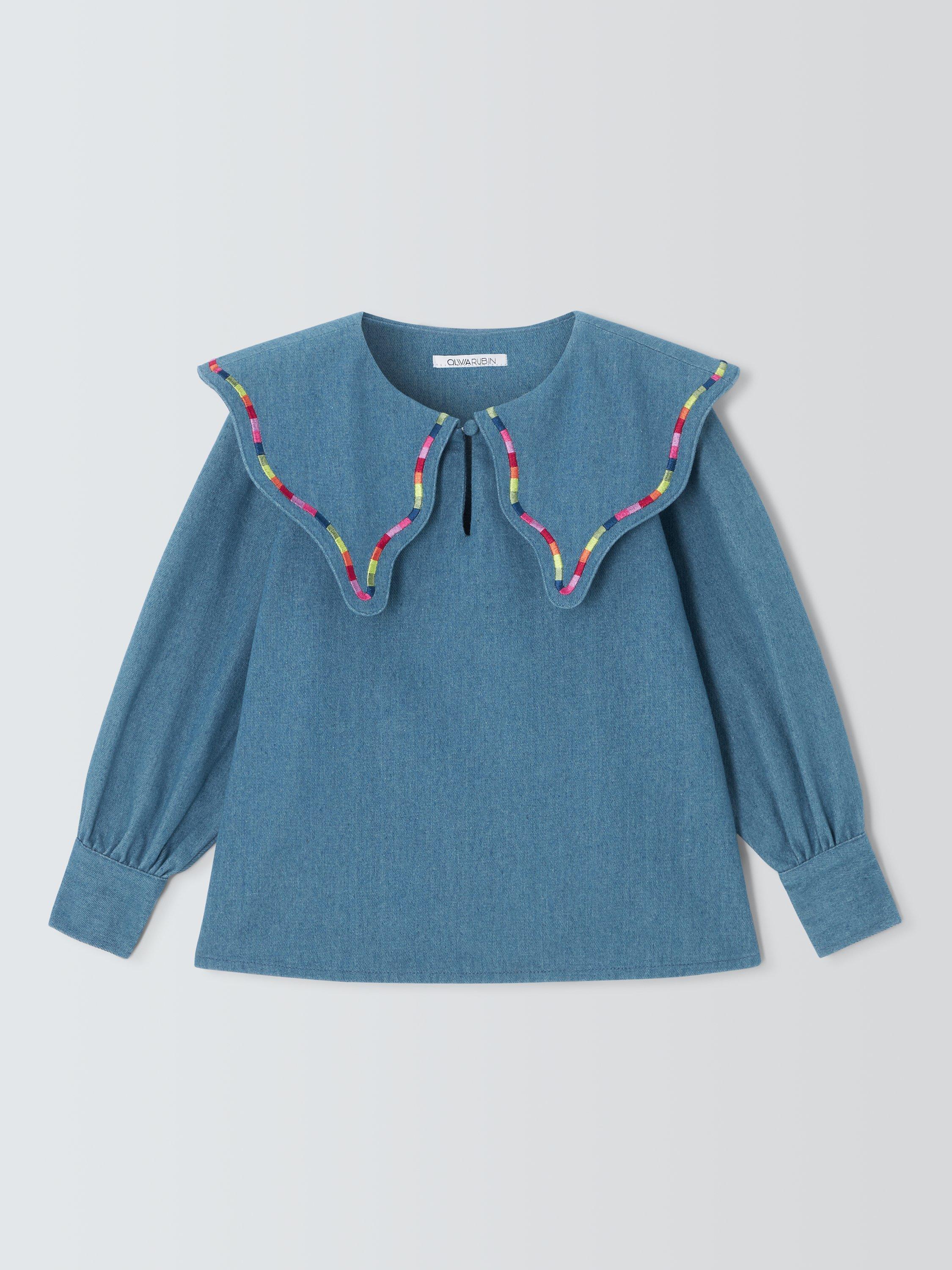 Olivia RubinKids' Bryony Rainbow Embroidered Oversized Collar Blouse, Denim