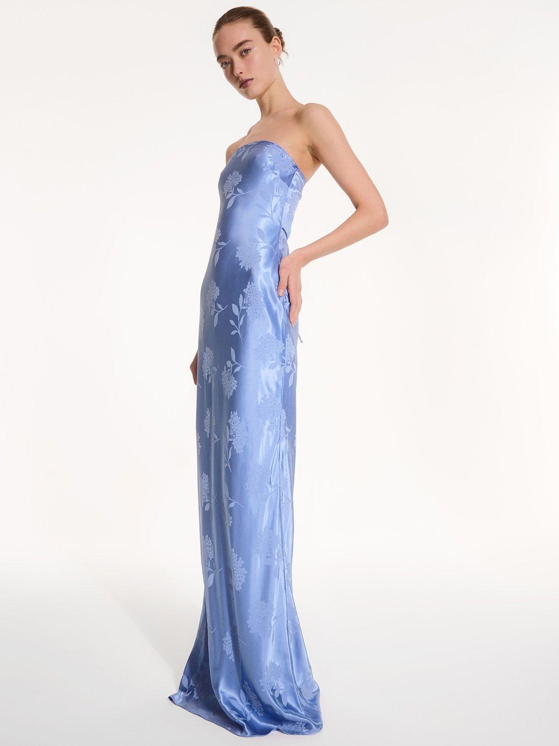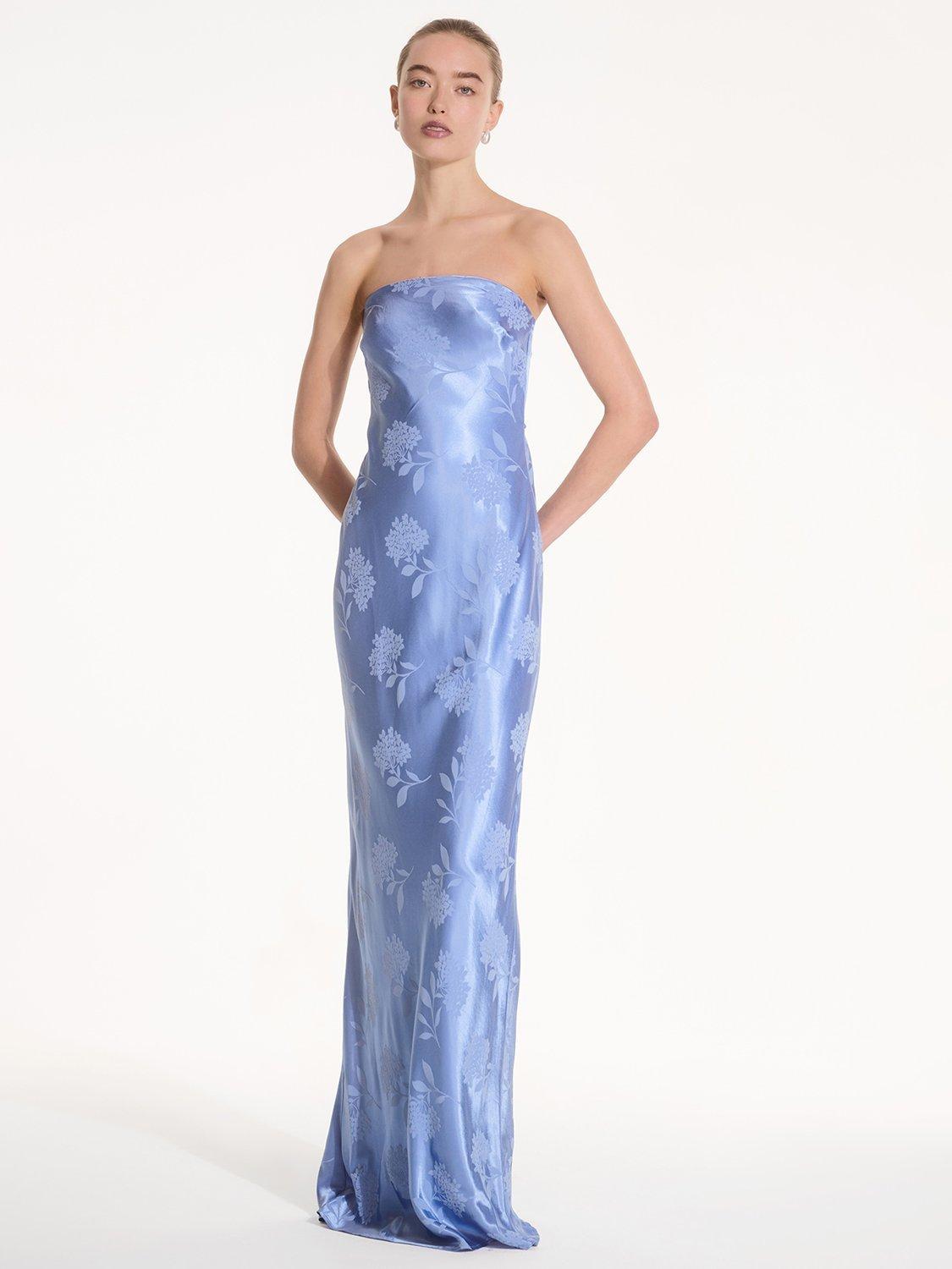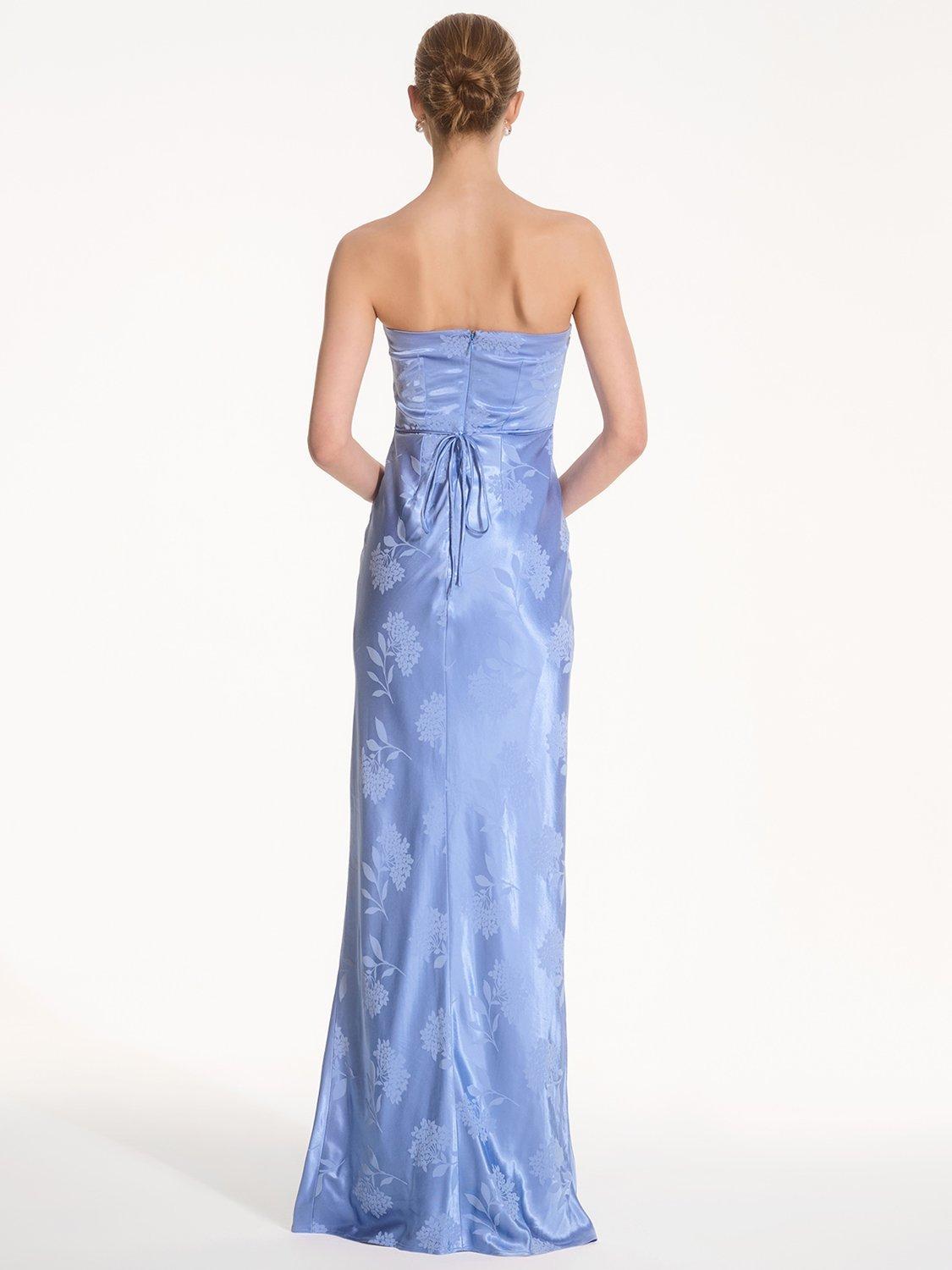 Simple, strapless, stunning; the Amdra is all that and more. Crafted from slinky 100% recycled polyester in a gorgeous floral jacquard, she's fitted throughout to enhance the elegance of your figure. She would make a great bridesmaid dress whether you're sticking to a theme or mixing and matching across colours and silhouettes.