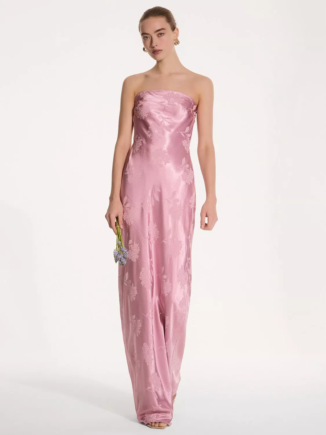 Simple, strapless, stunning; the Amdra is all that and more. Crafted from slinky 100% recycled polyester in a gorgeous floral jacquard, she's fitted throughout to enhance the elegance of your figure. She would make a great bridesmaid dress whether you're sticking to a theme or mixing and matching across colours and silhouettes.