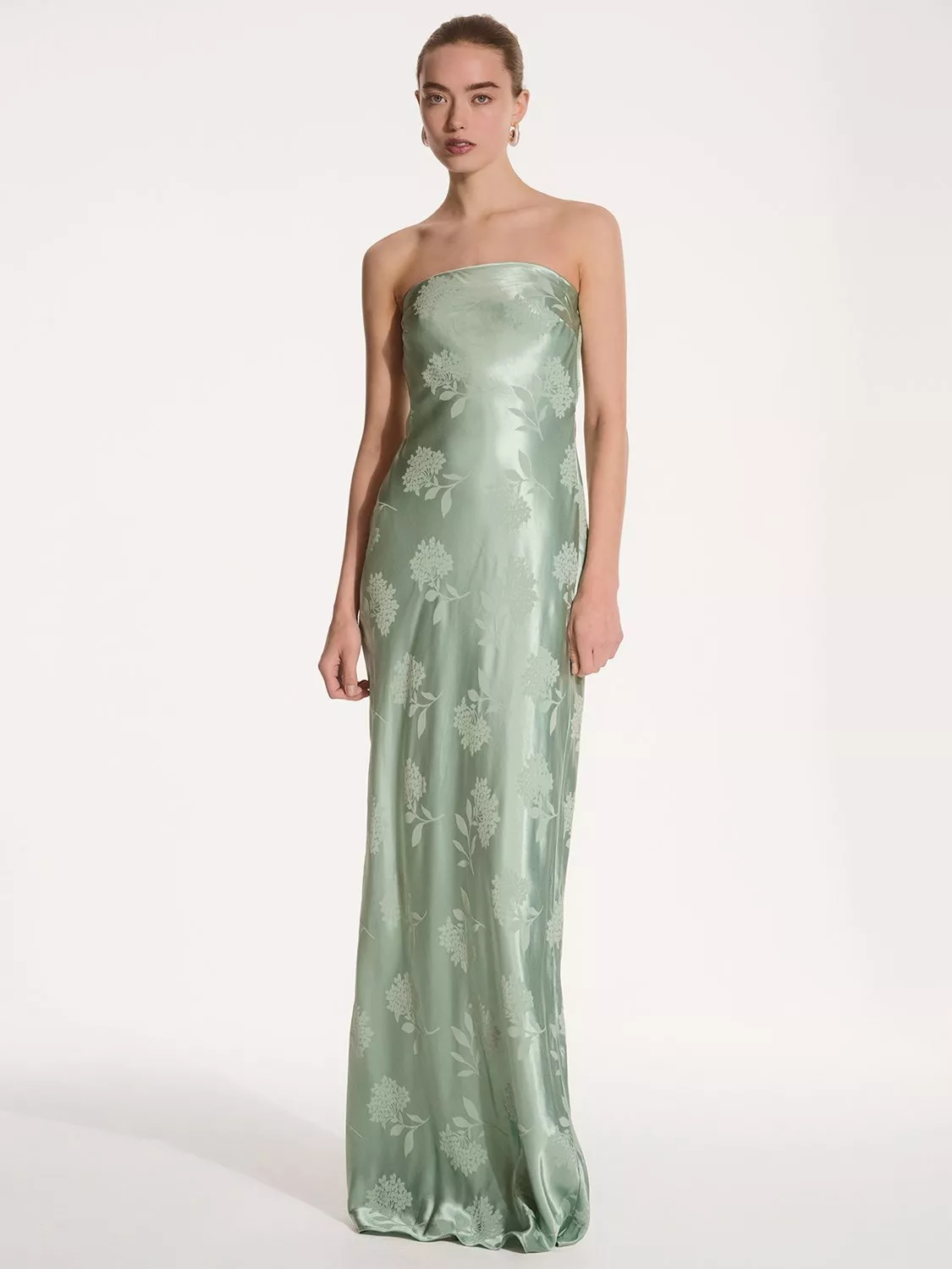 Simple, strapless, stunning; the Amdra is all that and more. Crafted from slinky 100% recycled polyester in a gorgeous floral jacquard, she's fitted throughout to enhance the elegance of your figure. She would make a great bridesmaid dress whether you're sticking to a theme or mixing and matching across colours and silhouettes.