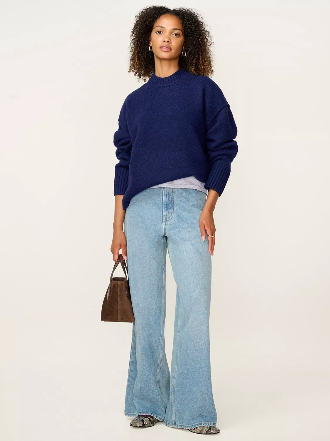 Cosy up with Clementine, the slouchy jumper you’ll turn to again and again. Crafted from soft yarns with a crew neck and ribbed cuffs, she’s designed with an oversized fit.