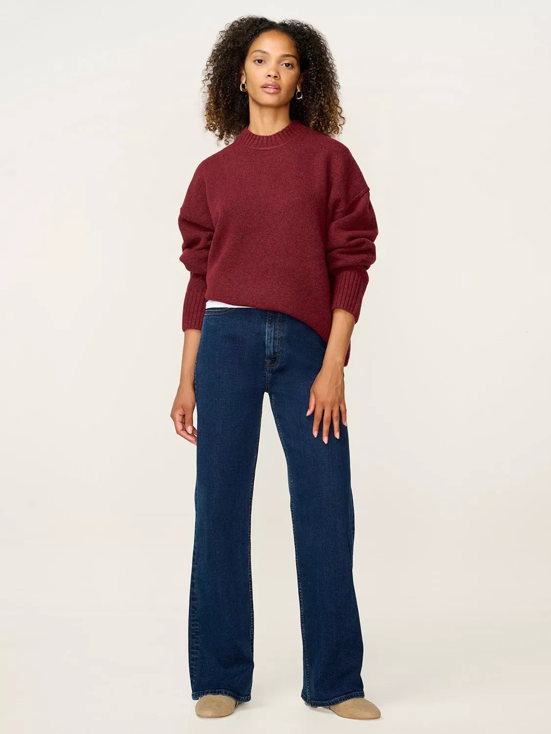 Cosy up with Clementine, the slouchy jumper you’ll turn to again and again. Crafted from soft yarns with a crew neck and ribbed cuffs, she’s designed with an oversized fit.