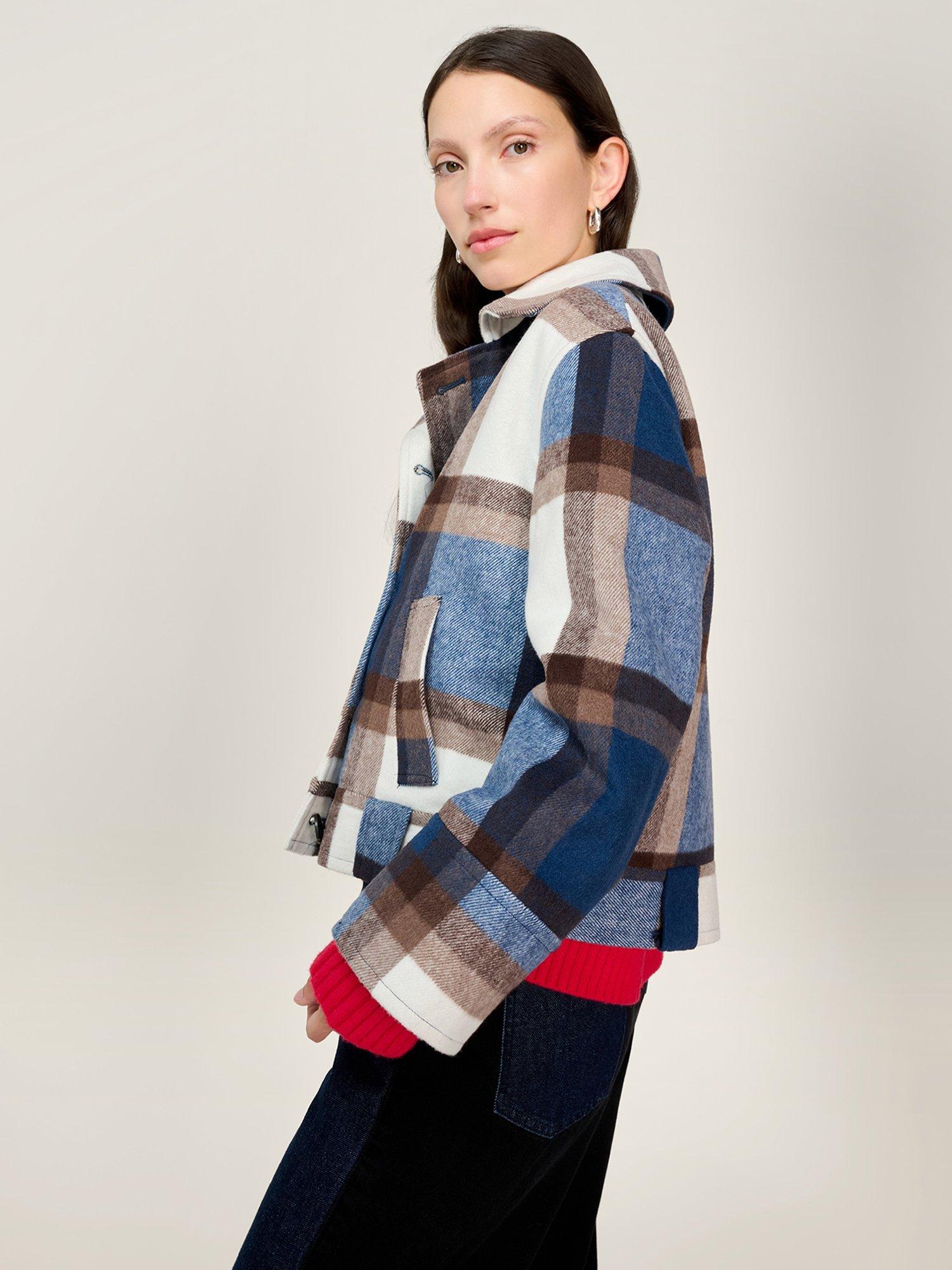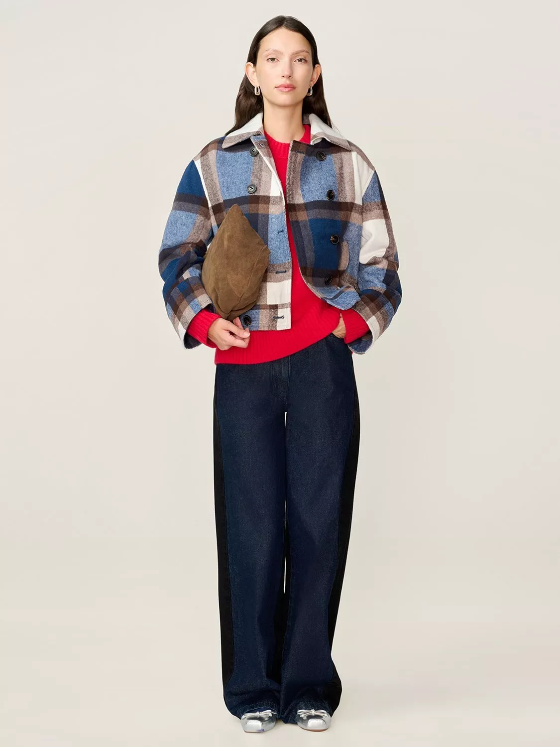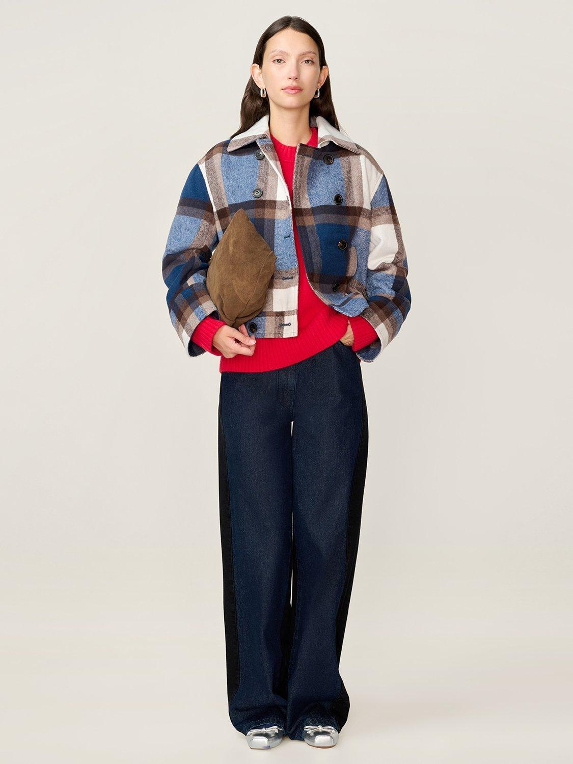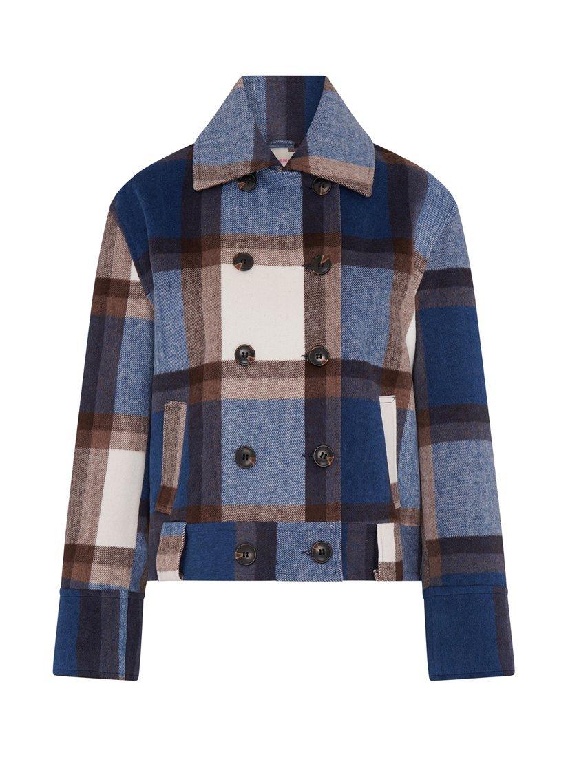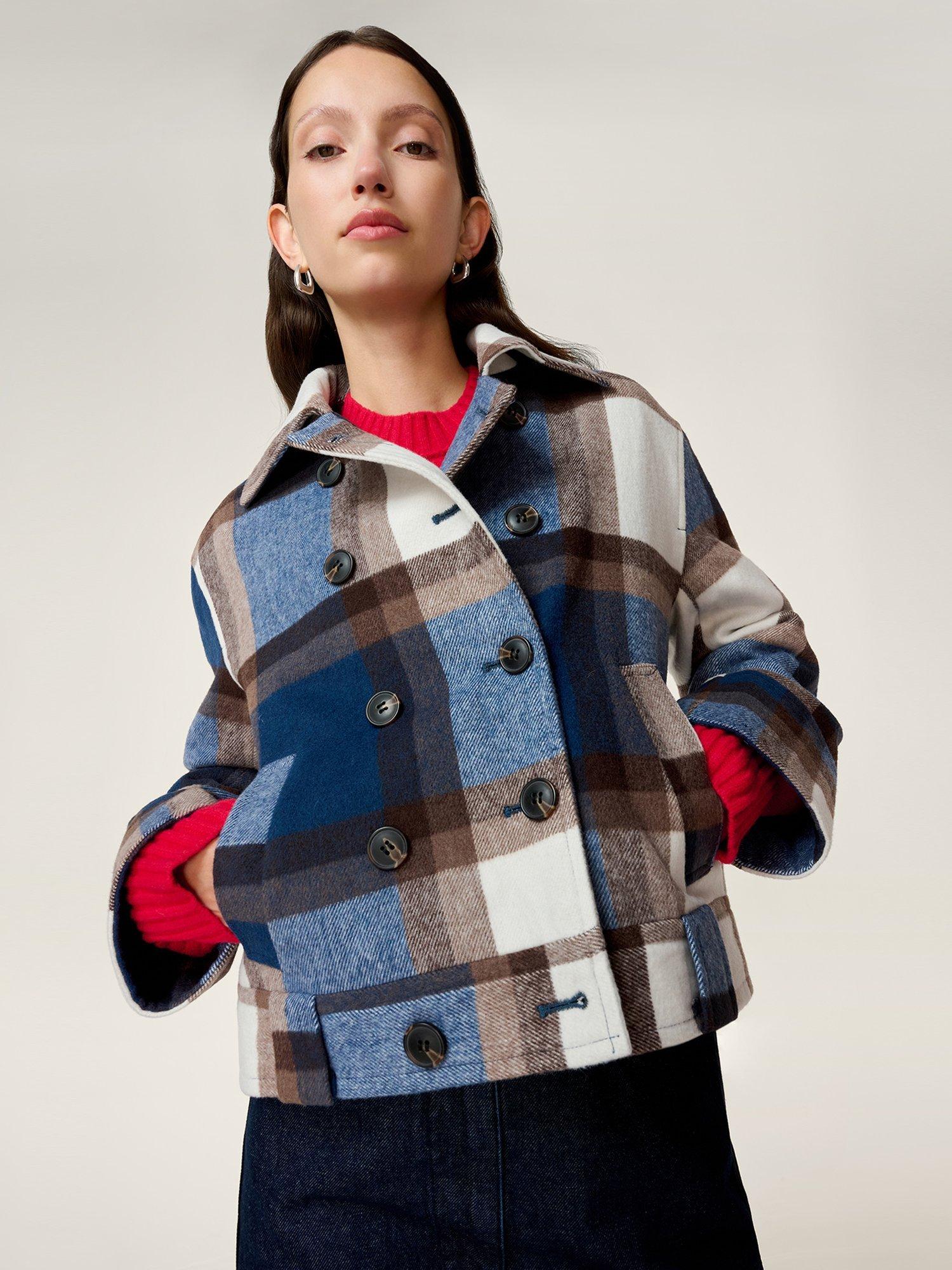 This cropped coat features a timeless check print that brings subtle texture and depth. Designed with a structured collar and double row of buttons, its boxy silhouette keeps things modern while still feeling polished. Whether layered over denim or styled with tailoring, Clyde is your answer to effortless outerwear with character.