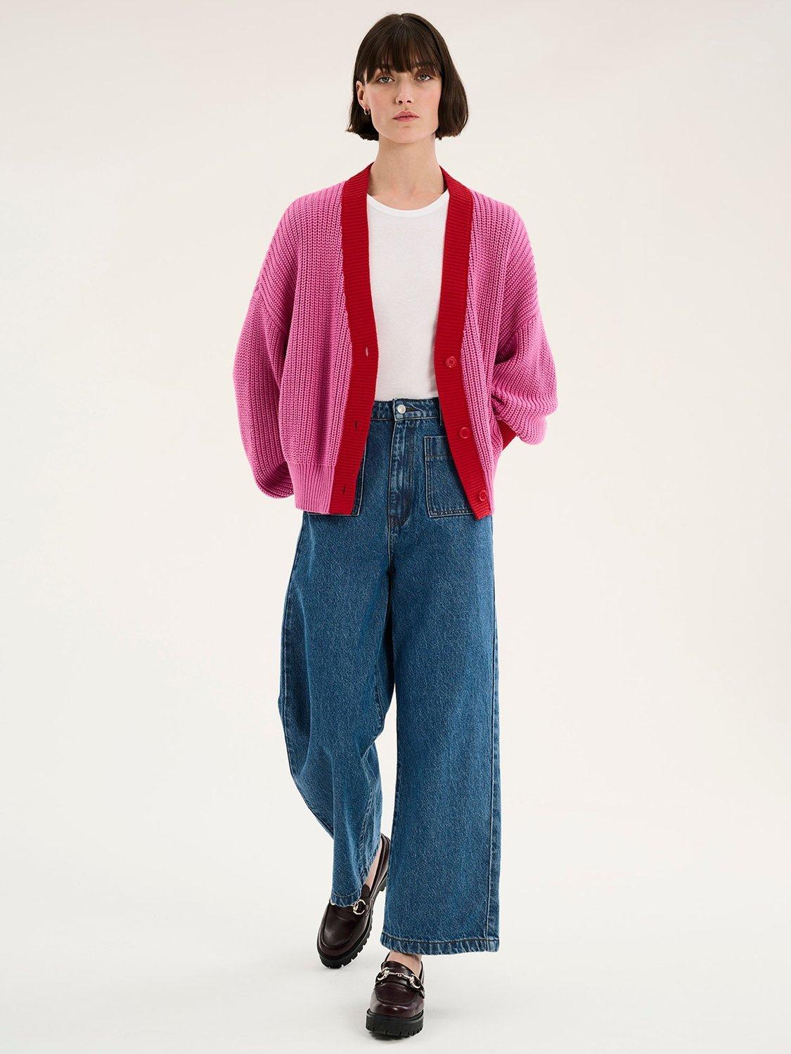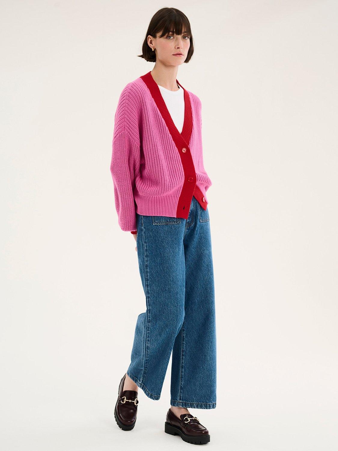 With a contrast trim, the Hopper cardigan from OMNES is versatile enough to be styled with just about anything. It is knitted from soft cotton for a slouchy fit, with flattering balloon sleeves, and a cropped hem that will look great with high-waisted skirts. The contrast placket and cuffs lend this classic piece a pop of personality.