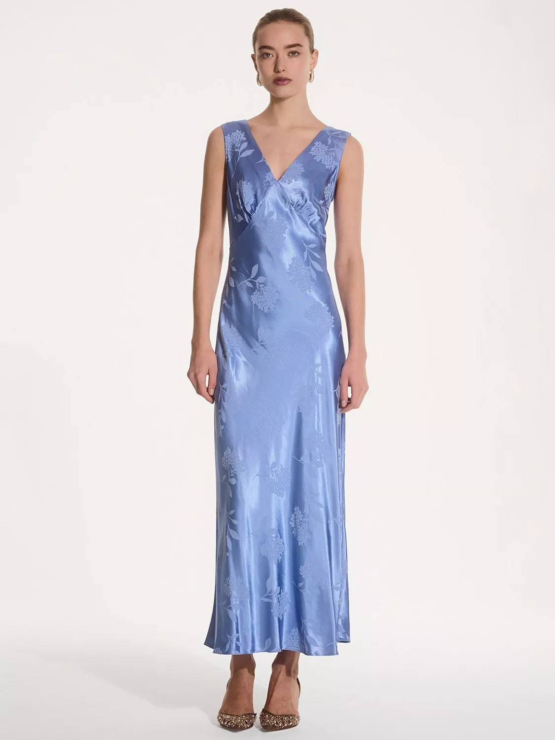 Introducing the ultimate slip dress, Iris, who is ready and waiting to take you to weddings or any special occasions. With its floral jacquard print and thick strap slip silhouette, it's a must-have. We love its Empire Line cut that makes it oh-so flattering, and its soft and slinky fabric. Iris would make a great bridesmaid dress whether you're sticking to a theme or mixing and matching across colours and silhouettes.
