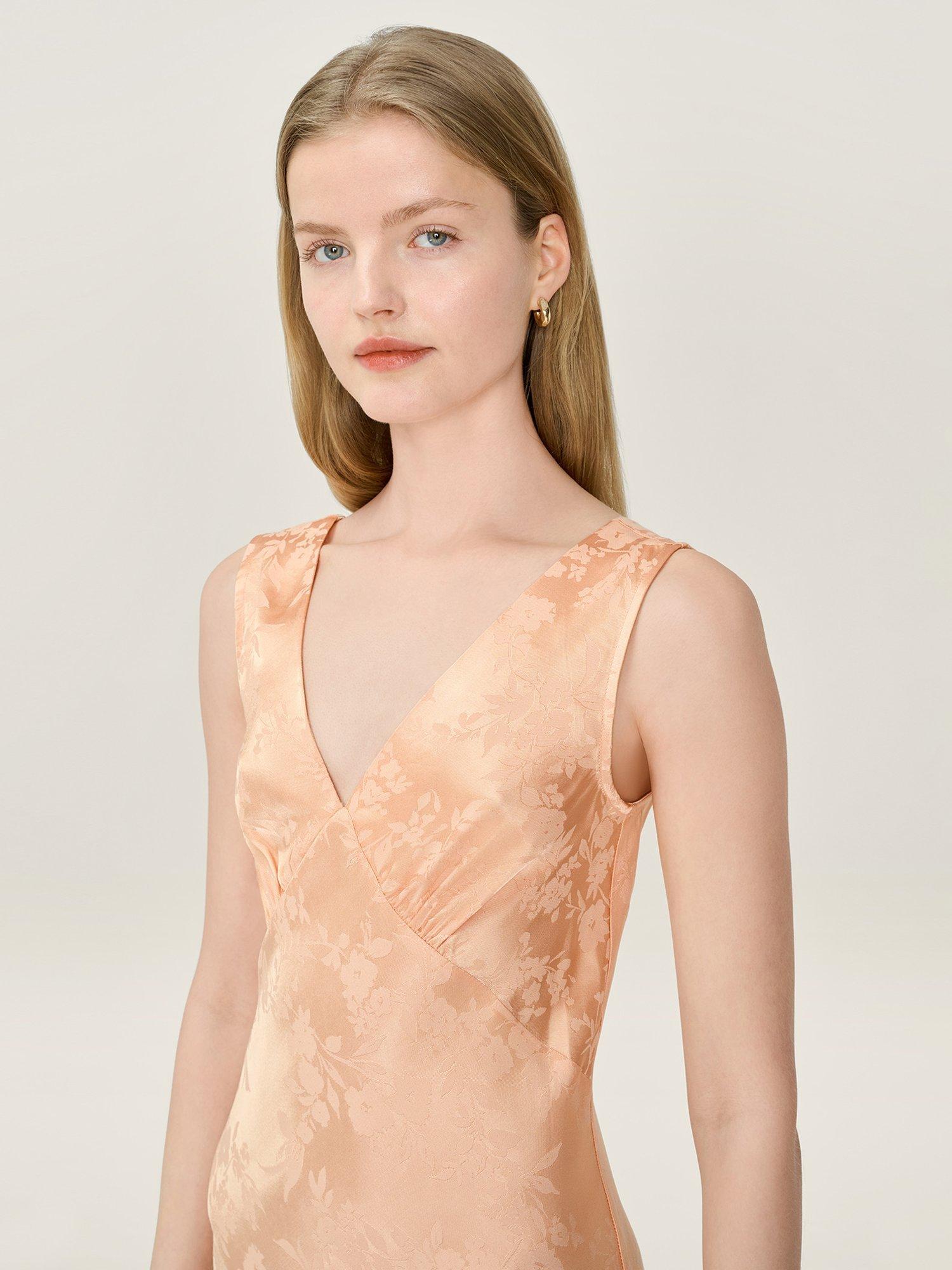 OMNESIris Jacquard Slip Maxi Dress, Peach