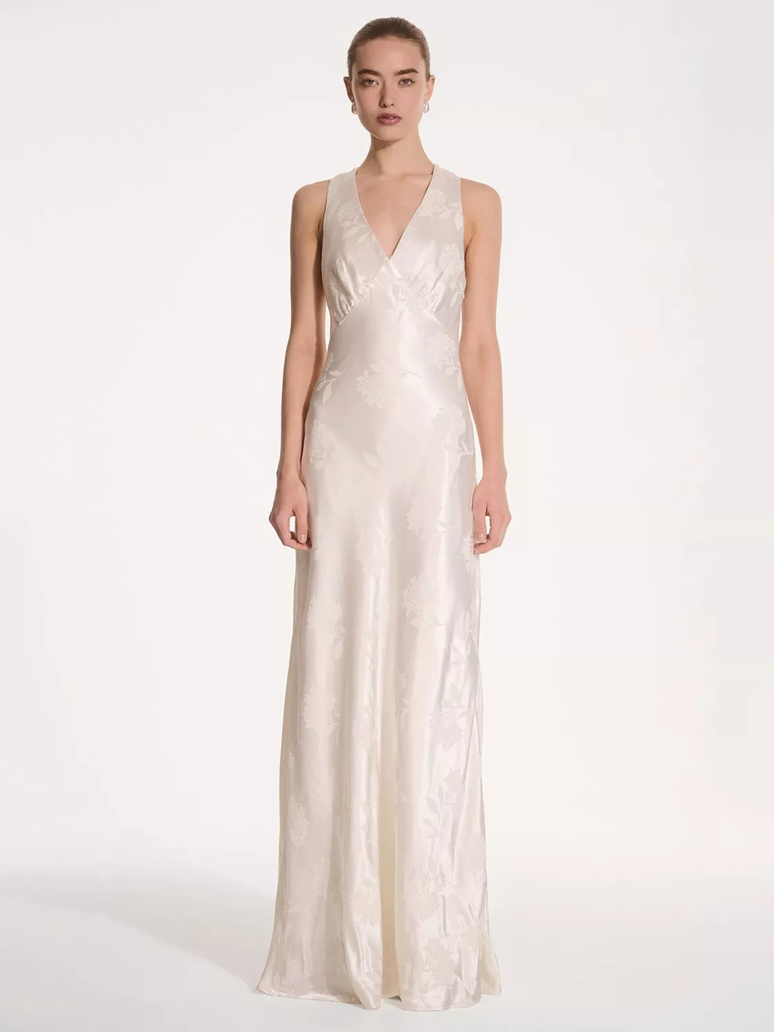 OMNESKew Satin Cross Back Maxi Dress, Ivory