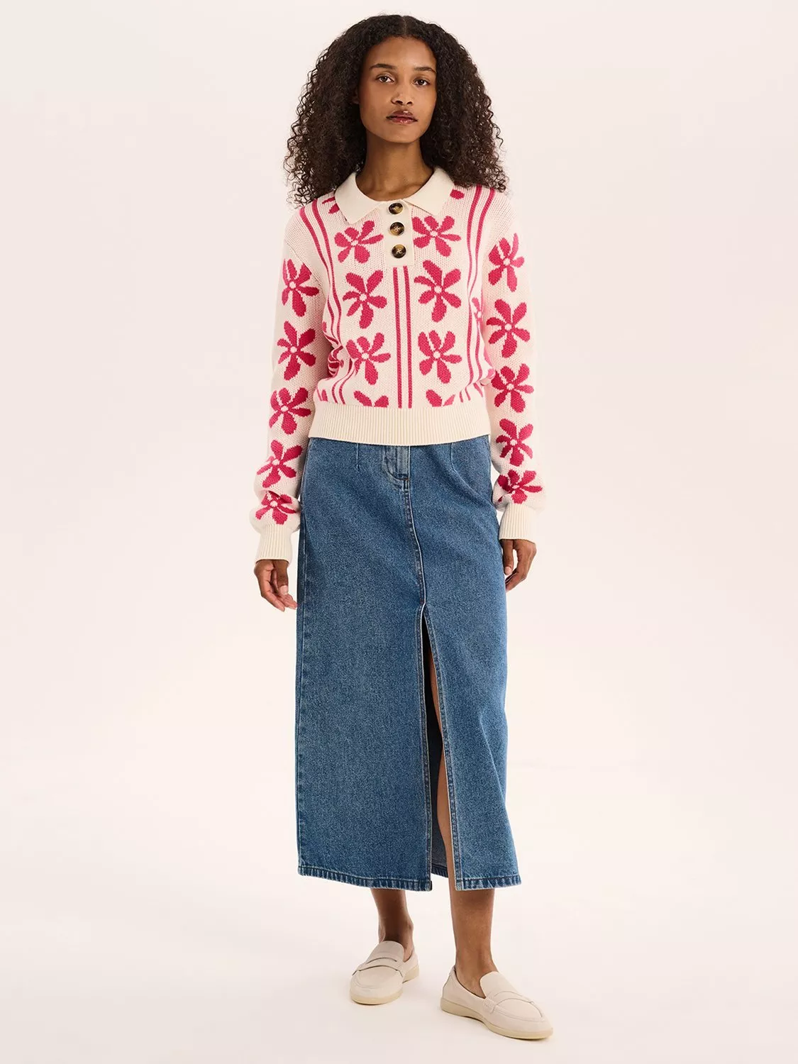 Loren has all the right details. A polo-inspired collar and button detail are cheekily contrasted by an illustrated flower motif.