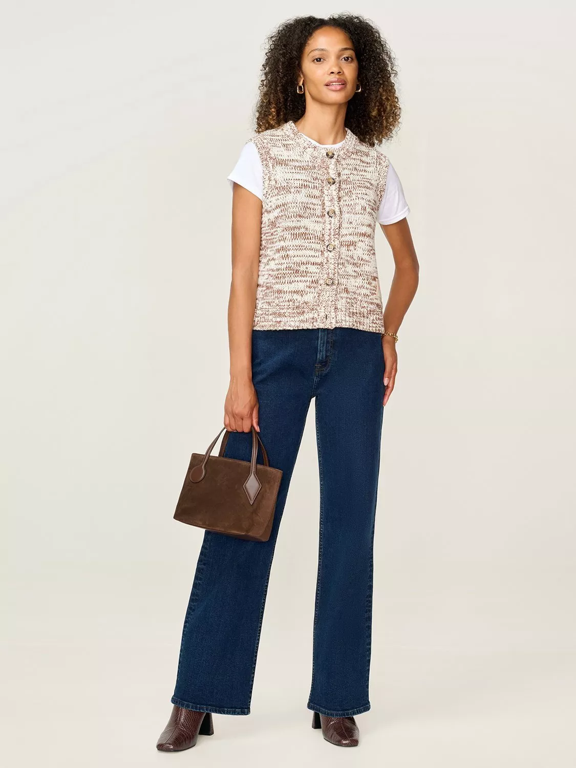 The Matilda vest is a modern layering staple with a timeless feel. Knitted in a thick, weighty yarn, it features a relaxed fit and button-down front for effortless styling. The soft texture and muted tones give it depth, while the easy silhouette makes it endlessly wearable. Part of the Studio OMNES collection, this piece is designed with a removable brand patch.