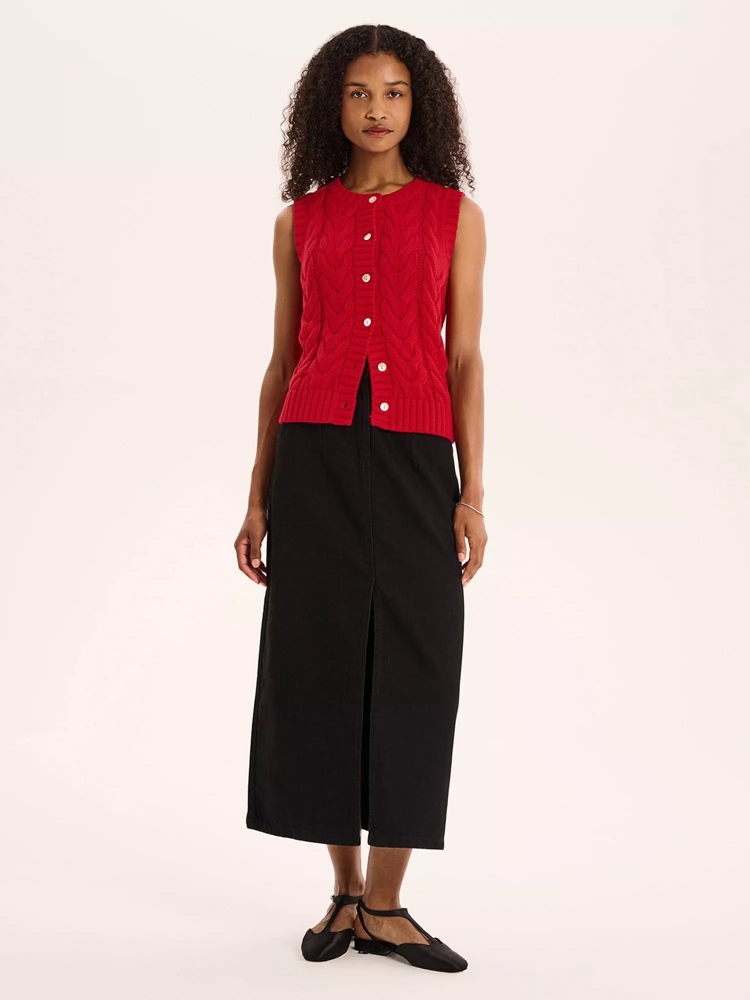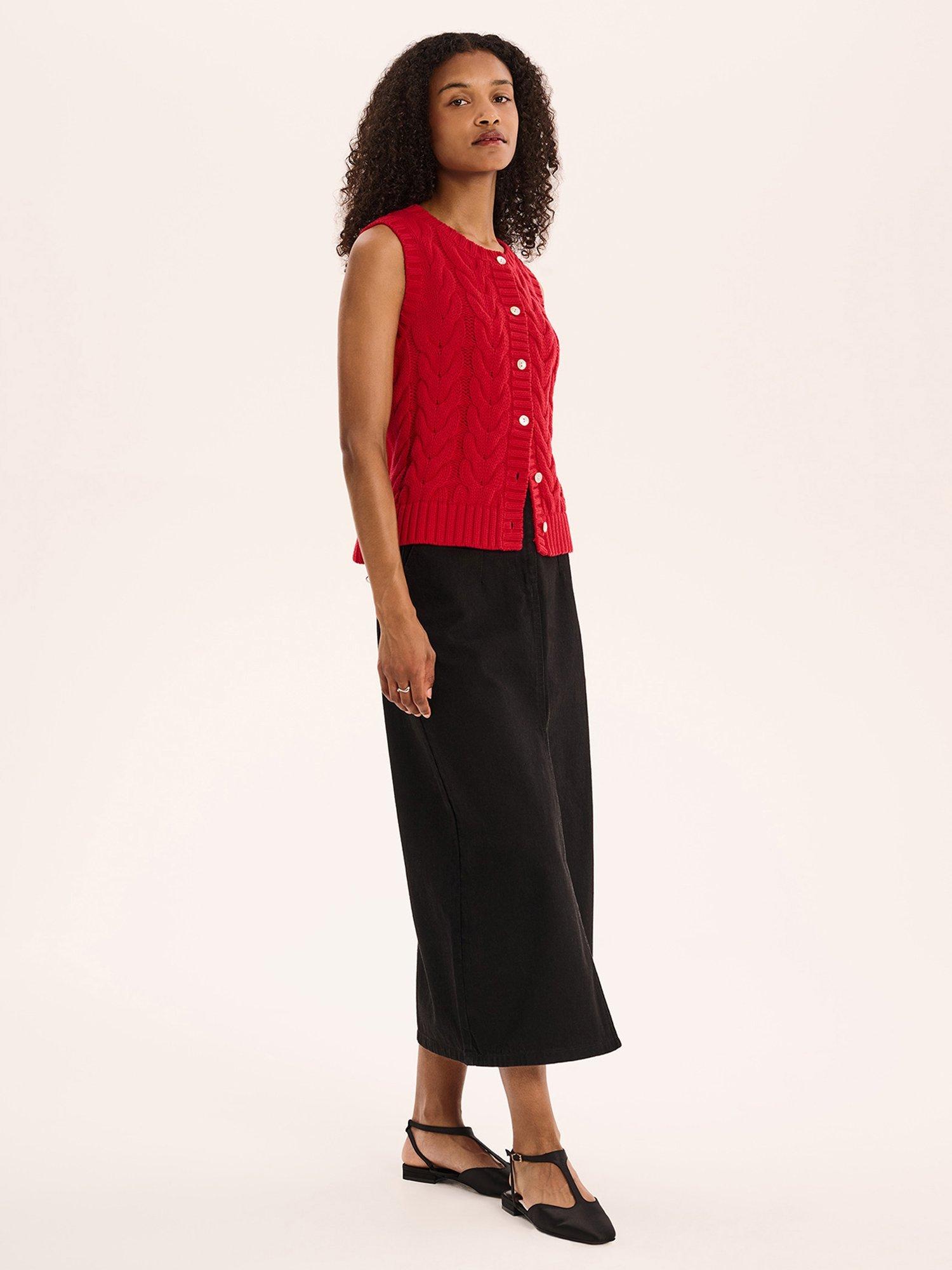 A timeless combo of responsible sourced cotton and a cable knit weave come together in the Matilda vest. Designed to be worn all year long, you can dress her up with a frilly blouse or down with a classic tee. Matilda does it all.