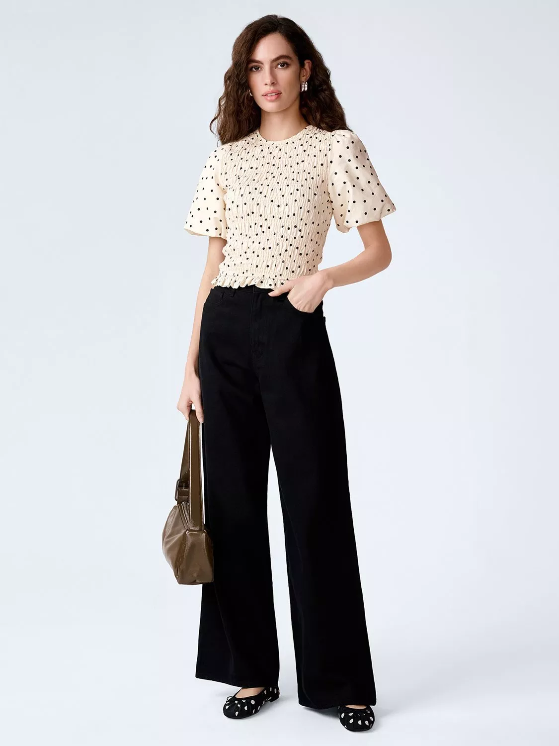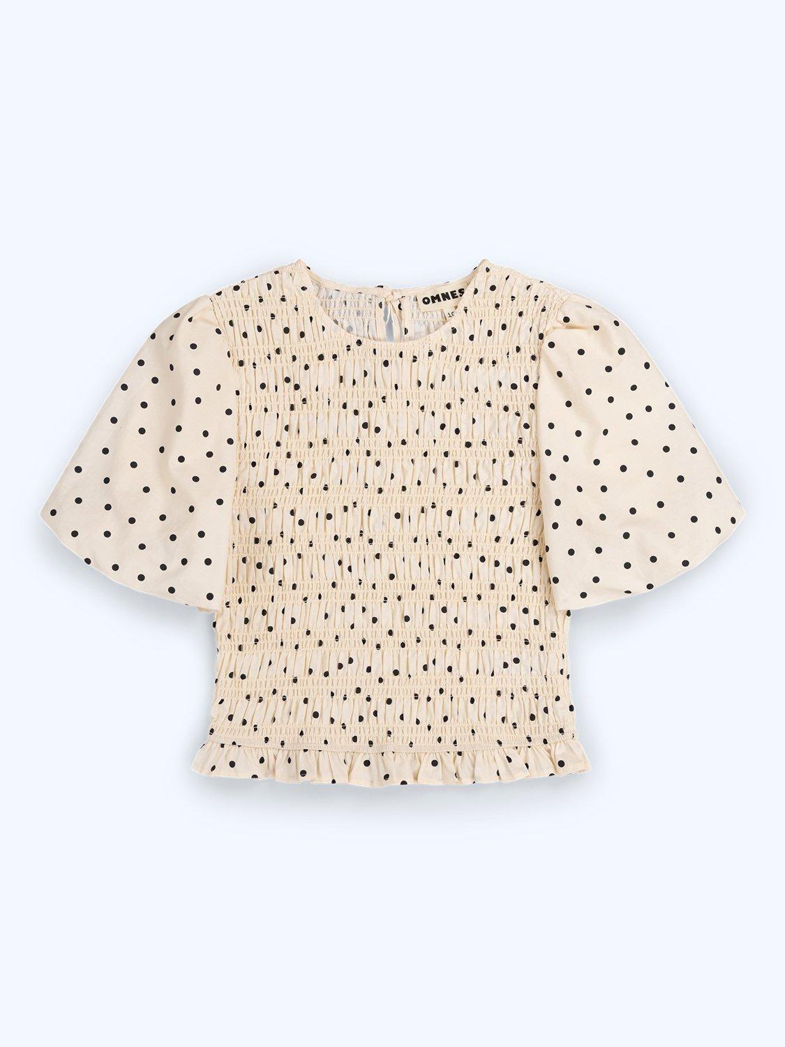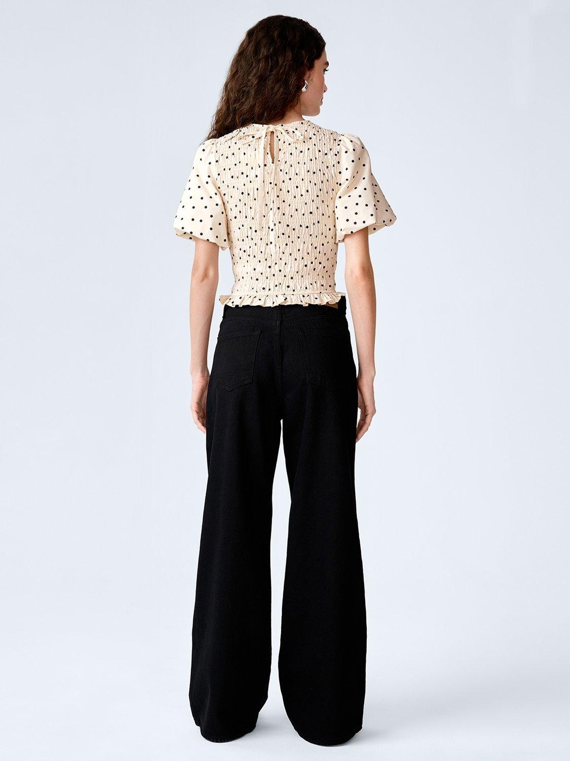 Pretty and playful, Nicolla will elevate your everyday basics. Crafted from soft cotton in a polka dot print, it features shirring throughout, a short puff sleeve and a soft peplum frill for an easy, feminine silhouette. Wear it, layer it, love it.