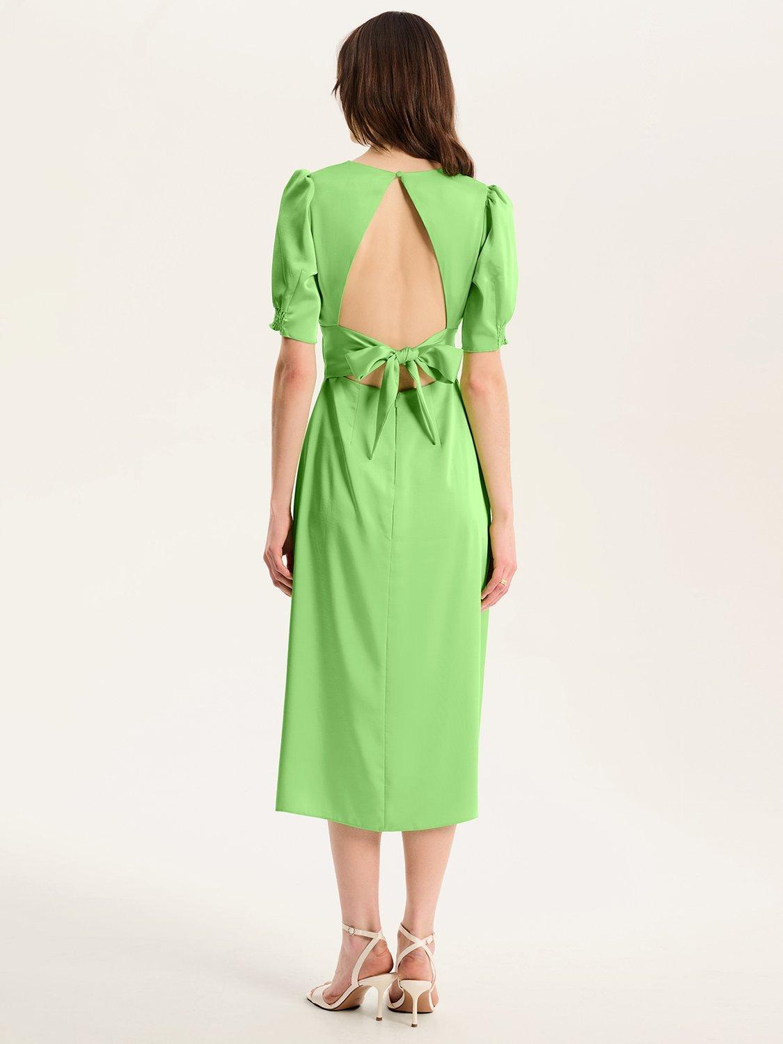 Odette is elegance with an edge. The 3/4 length sleeves are gathered at the bottom to create a feminine silhouette offset with a deep v-neckline. With an open back with sash detail, this dress in timeless black is a date night dream.