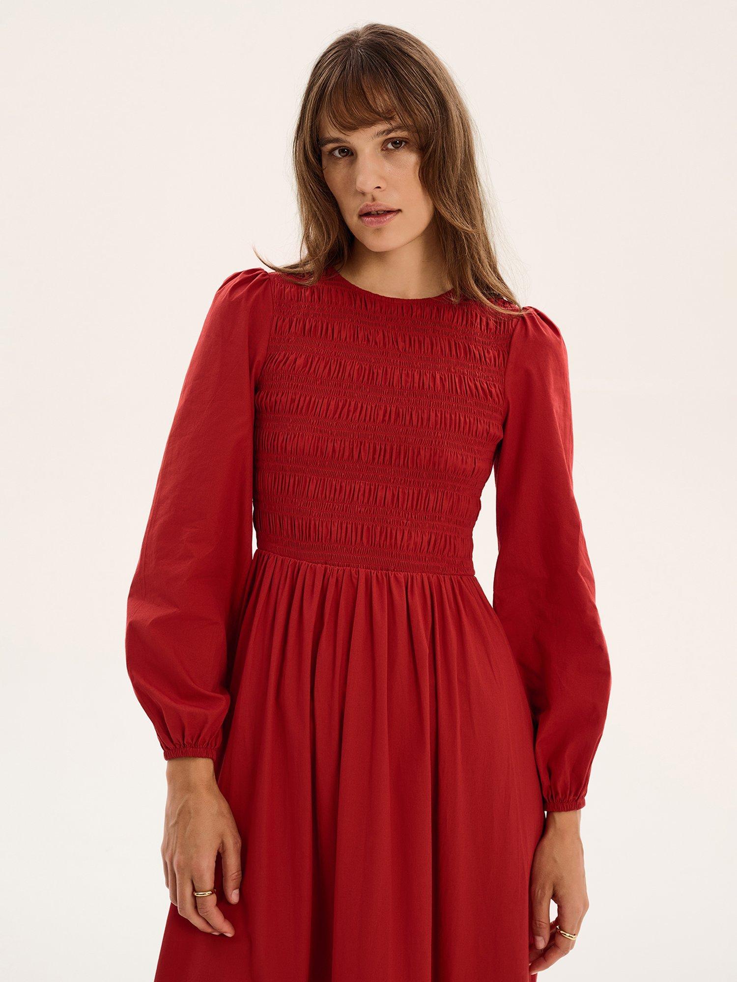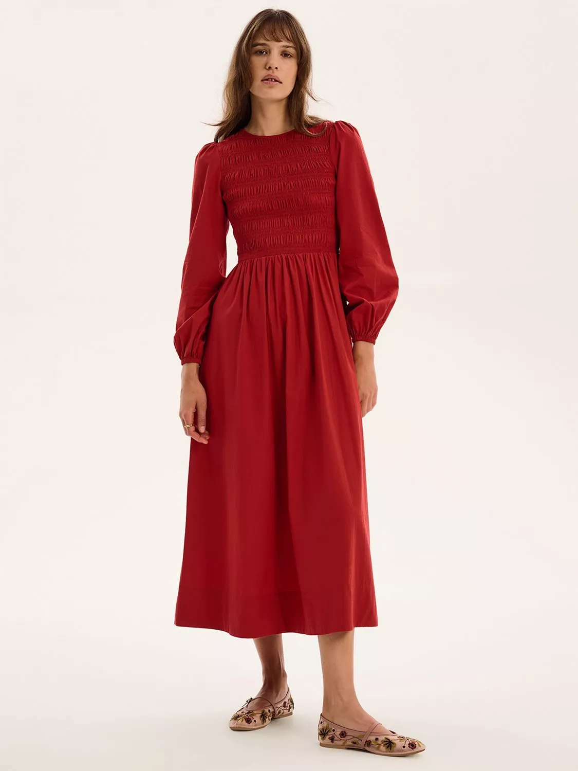 A maxi dress to take you from work to weekend, the Saint dress creates a striking silhouette without compromising on comfort. She's designed with a shirred bodice and long balloon sleeves in soft cotton.