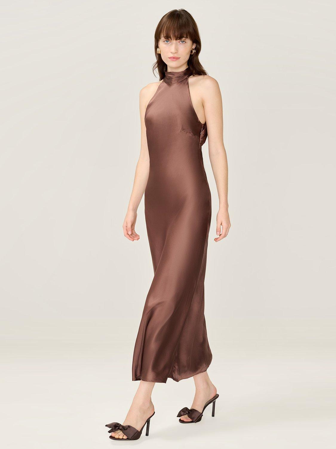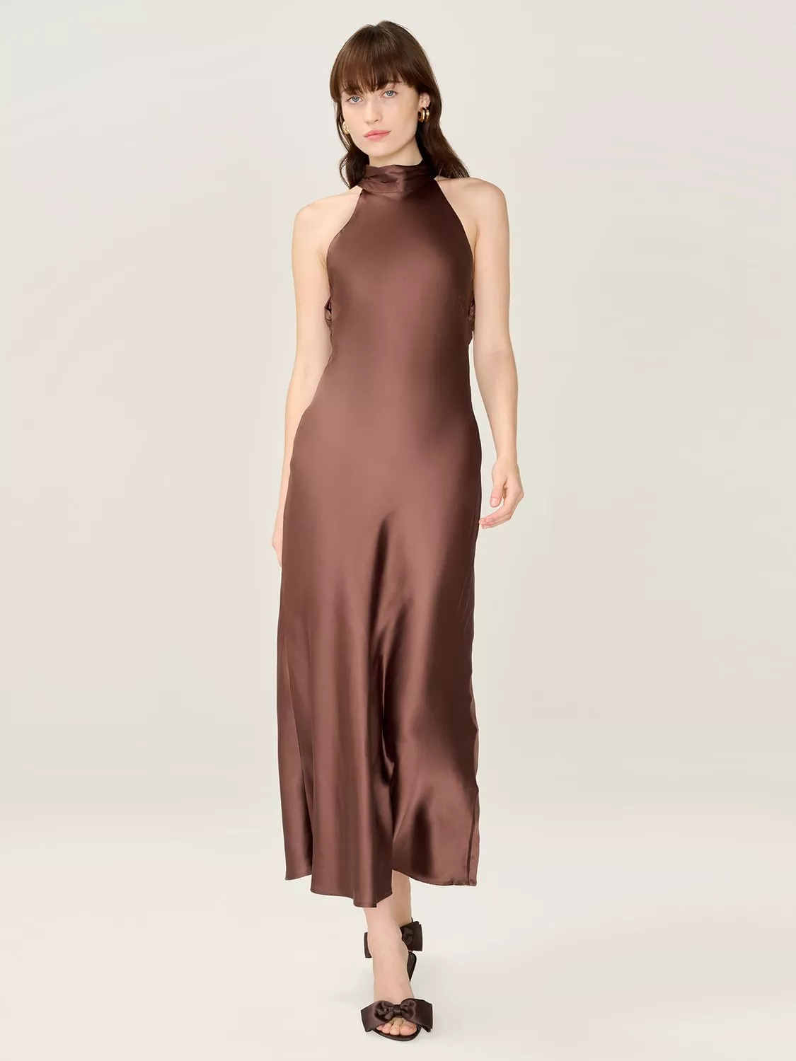 A halter neck meets a drape-framed exposed back in your new favourite party dress, Seychelles. Crafted from satin-like recycled polyester, she's got just the right amount of shimmer. Midaxi in length, Seychelles is strapless bra-friendly so you can dance the night away with all the support you need. Wear to your next celebration, shindig, holiday and more.