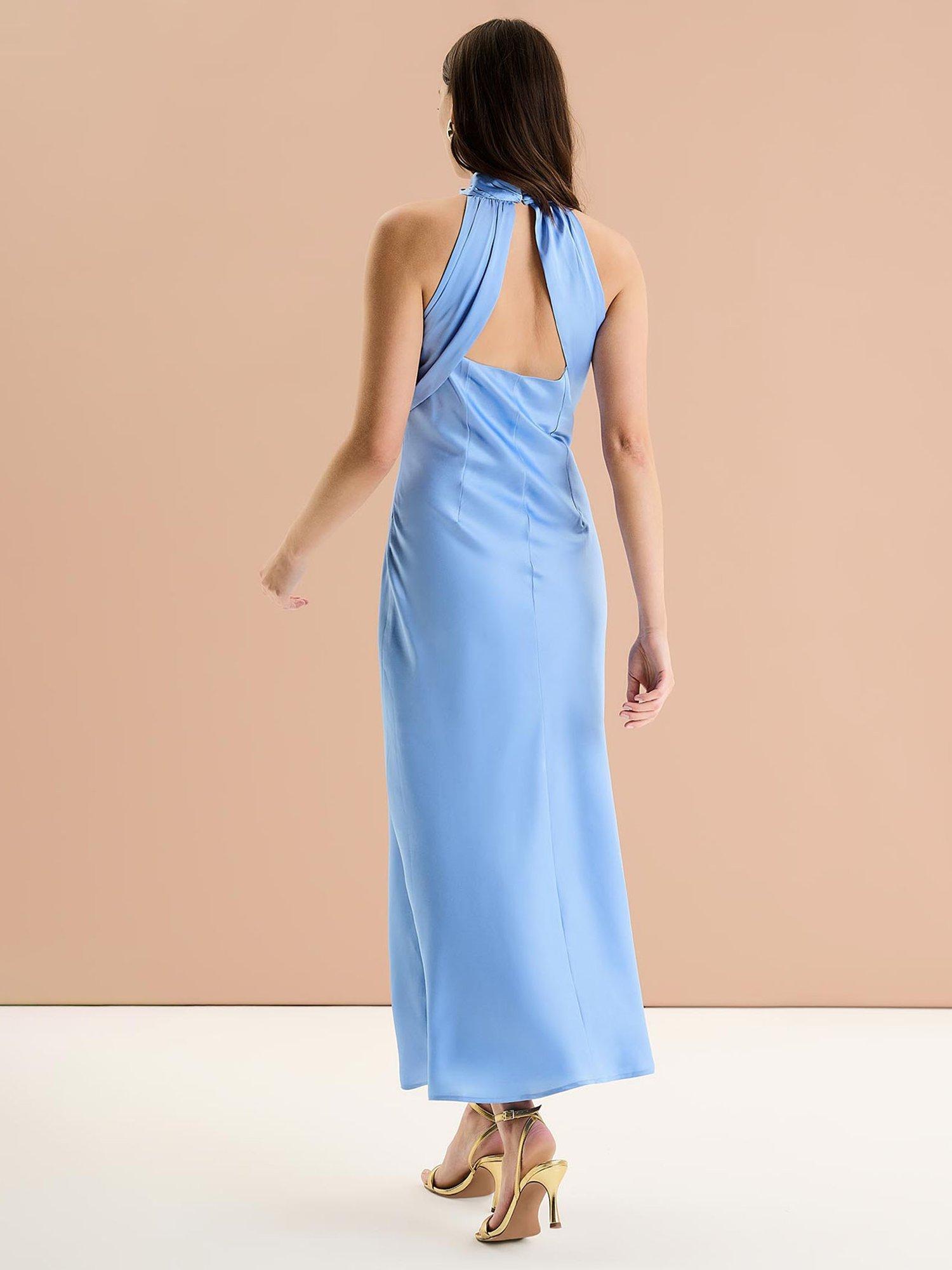A halter neck meets a drape-framed exposed back in your new favourite party dress, Seychelles. Crafted from satin-like recycled polyester, she's got just the right amount of shimmer. Midaxi in length, Seychelles is strapless bra-friendly so you can dance the night away with all the support you need. Wear to your next celebration, shindig, holiday and more.