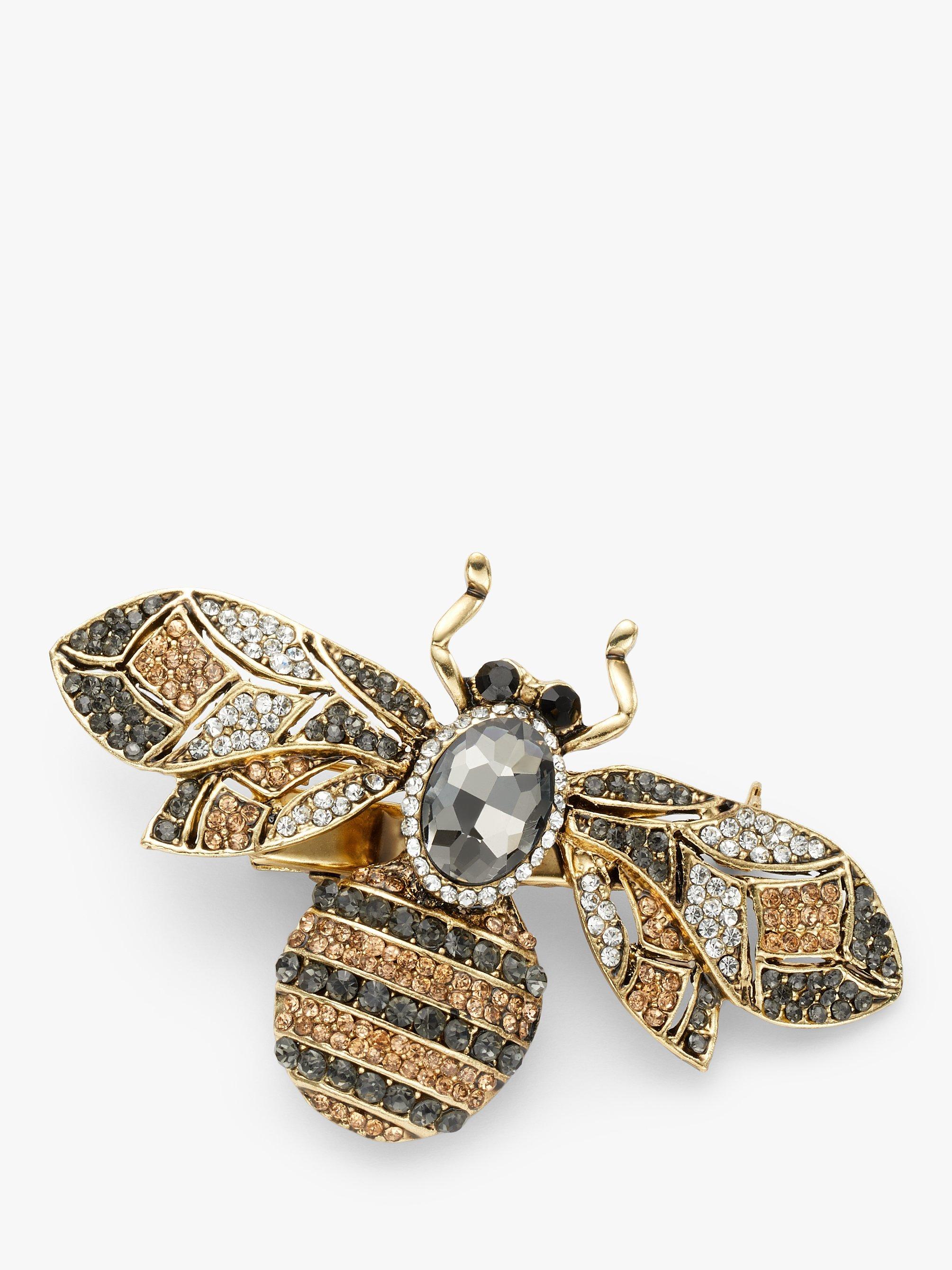 One ButtonCrystal Bee Brooch, Gold/Multi