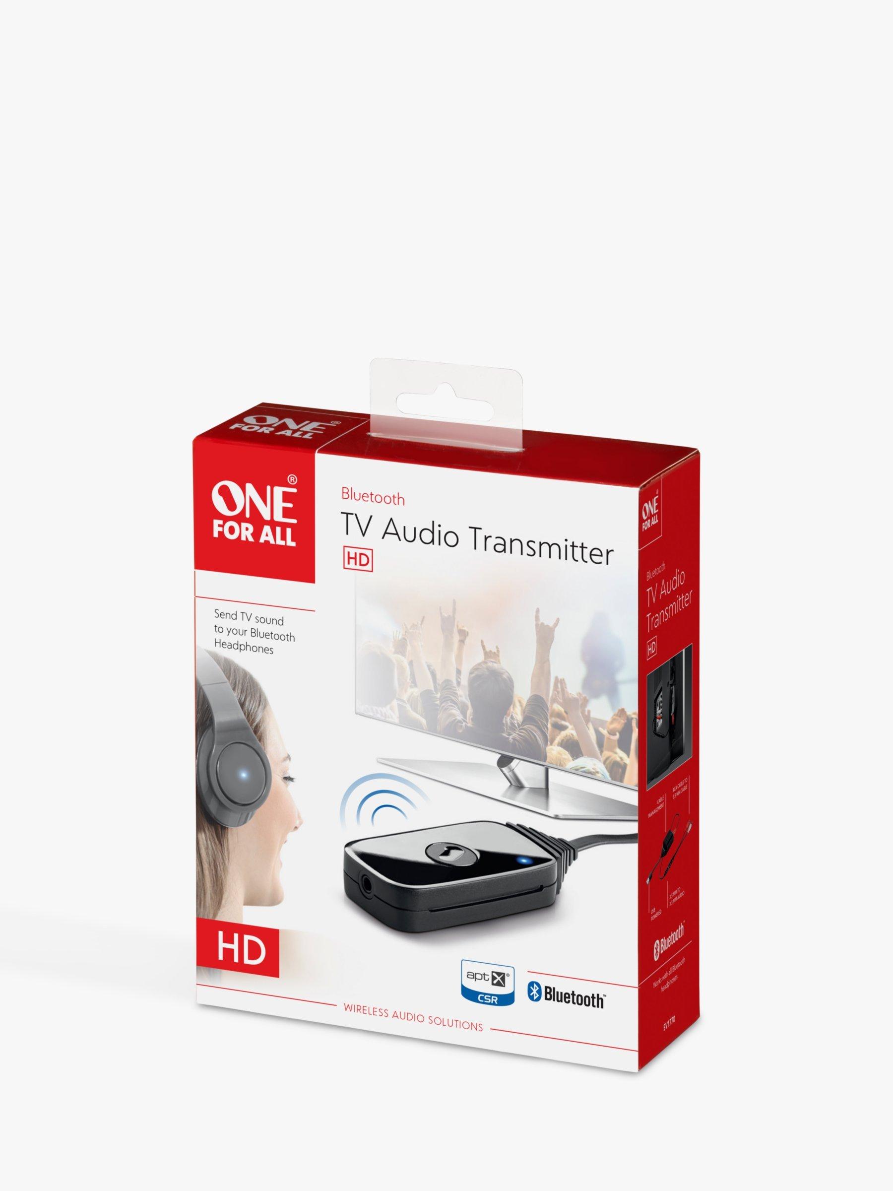 Connect this audio transmitter to send the sound of your TV to your Bluetooth headphones or other Bluetooth audio device. It allows you to listen to the TV without disturbing others, and you can connect two pairs of headphones at once.