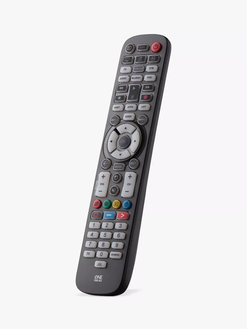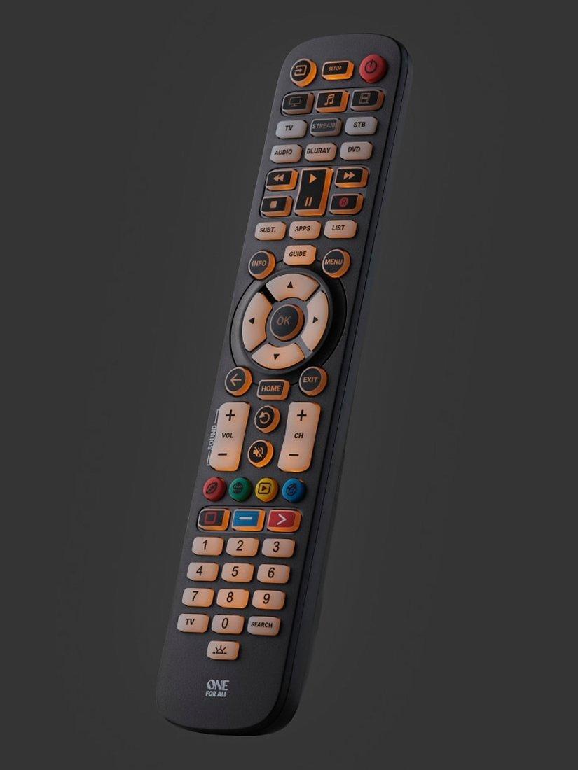 This antimicrobial remote control can control up to 6 devices. So you can easily control your TV, set top box, media player, soundbar and audio device. Fully backlit, this One For All remote is compatible with all brands.