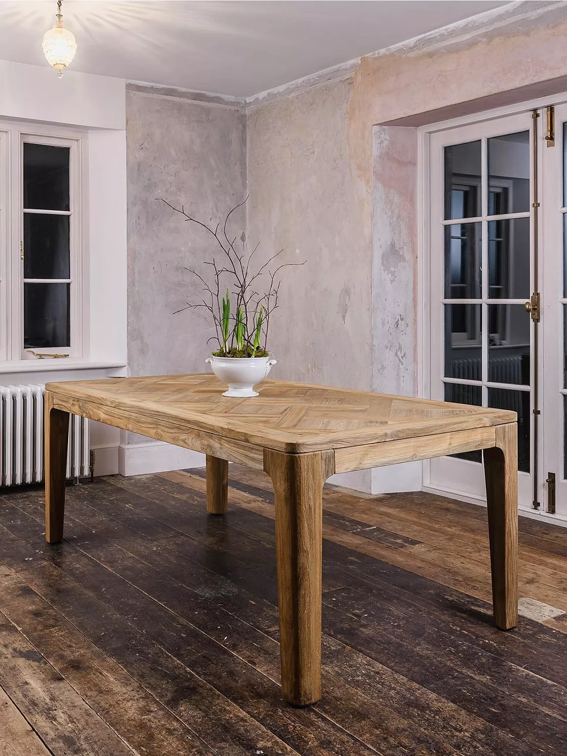 Crafted from reclaimed teak, this table's natural imperfections tell a story of authenticity and sustainability. The 200cm length offers ample space for gatherings, while the rustic finish adds character, making it a centrepiece for those who appreciate both style and environmental consciousness.