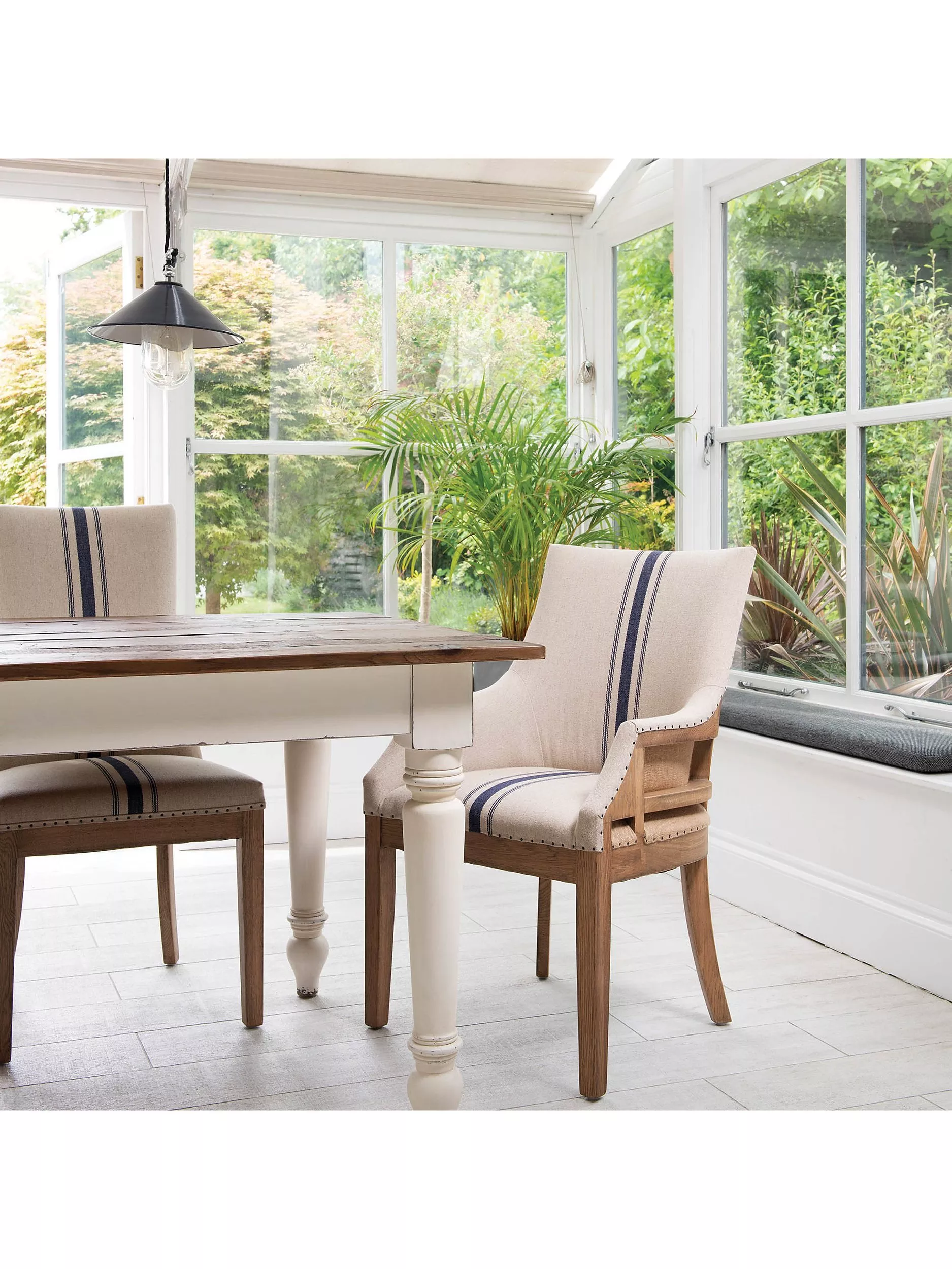 This St James carver chair from One.World has all the makings of a super chic chair with its beige linen, French-style stripe and serious comfort. The deconstructed style allows you to appreciate the craftsmanship of the exposed solid oak wood frame. Whether it's around a dining table or behind a desk, this is traditionally stylish in every way.