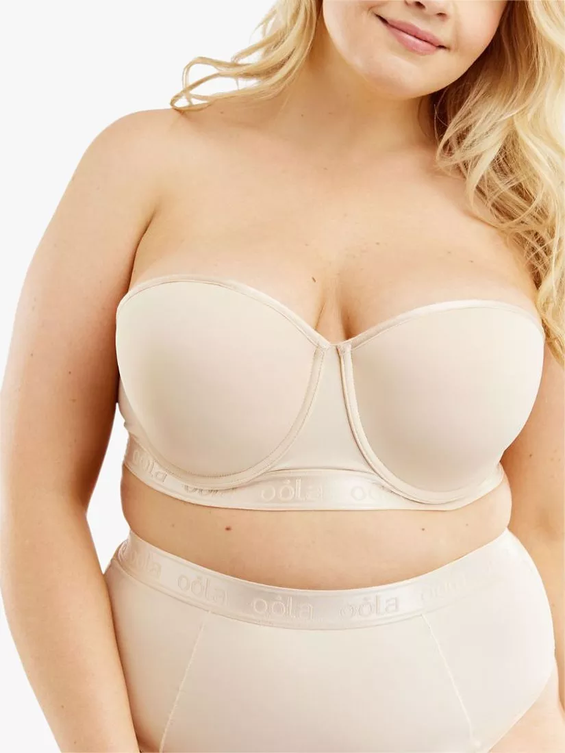 The ultra-smooth soft padded cups are underwired for extra support and designed with power mesh control so you will feel secure and supported with and without the straps. A stretchy soft-touch 4 hook and eye closure improves the fit and minimises irritation to the skin. With super soft brushed lined fully adjustable and detachable straps and no uncomfortable side boning, you're guaranteed all day comfort wearing this style. The brand have also added its signature 'oola' to the quality elastics and rose gold details to give a luxurious finish.