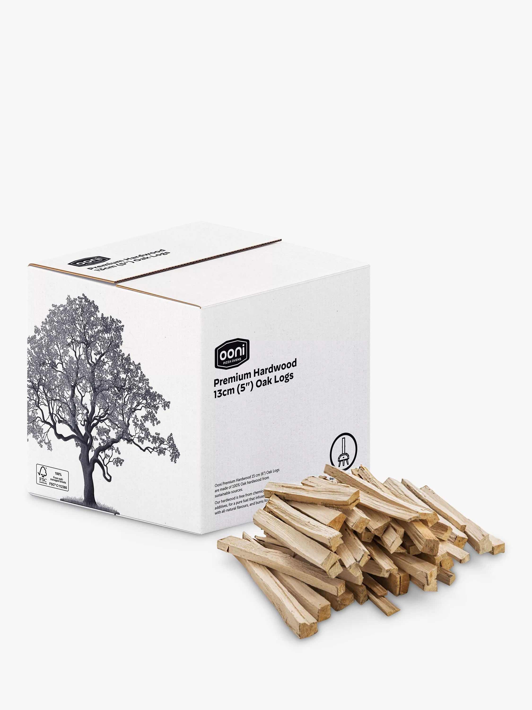 Ooni Premium Hardwood 13cm (5-inch) Oak Logs are made from 100% oak hardwood, sourced from sustainably managed forests. The hardwood kindling is free from chemicals, aromas or additives, for a pure fuel that infuses your dishes with all-natural flavours and burns for longer.
