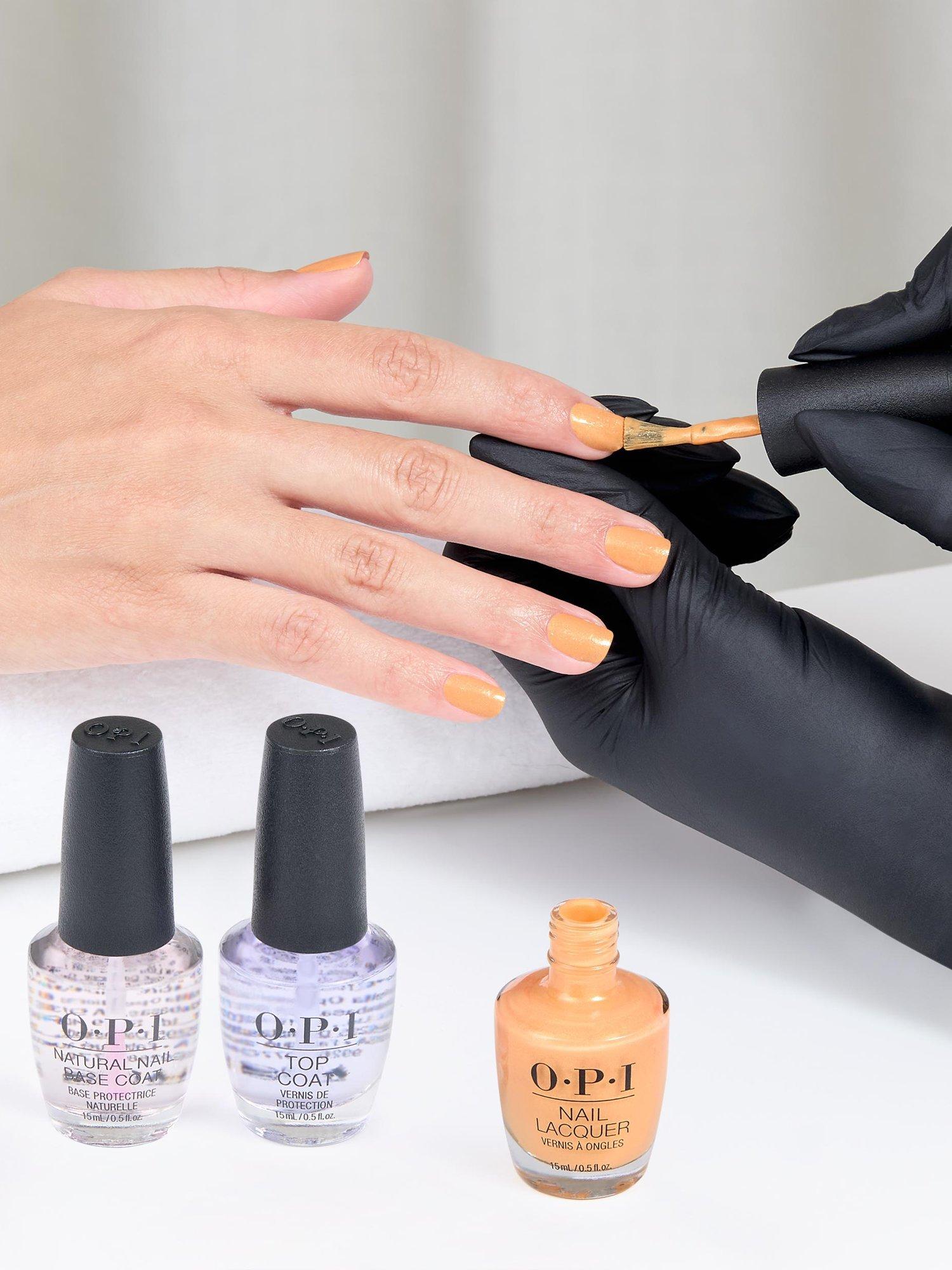 - After prepping nails, apply one coat of OPI Natural Nail Base Coat